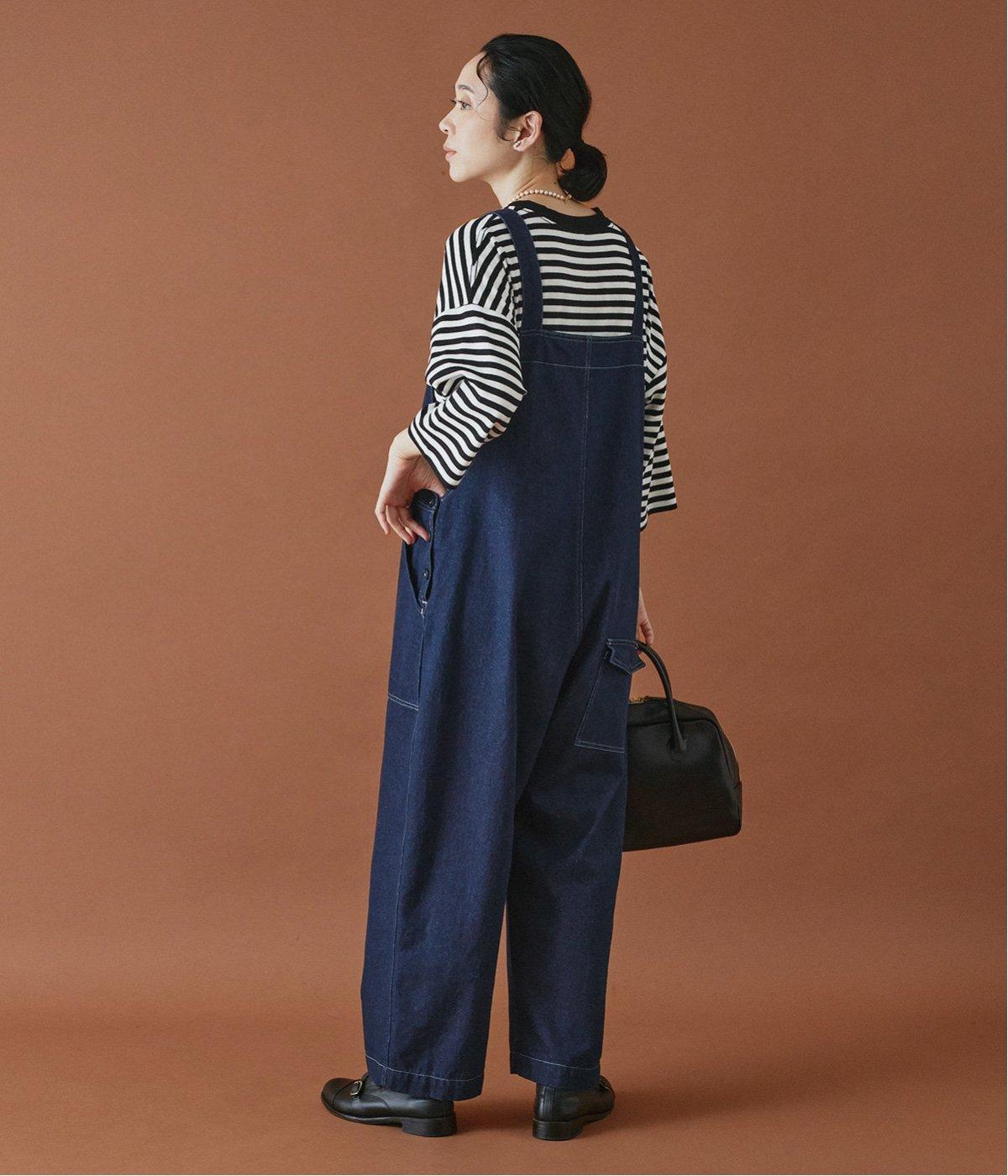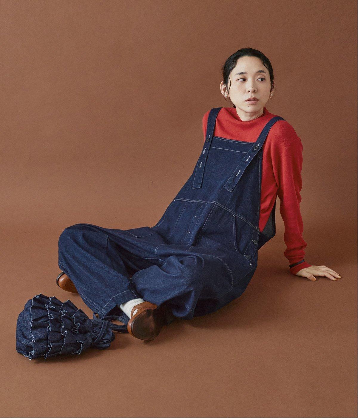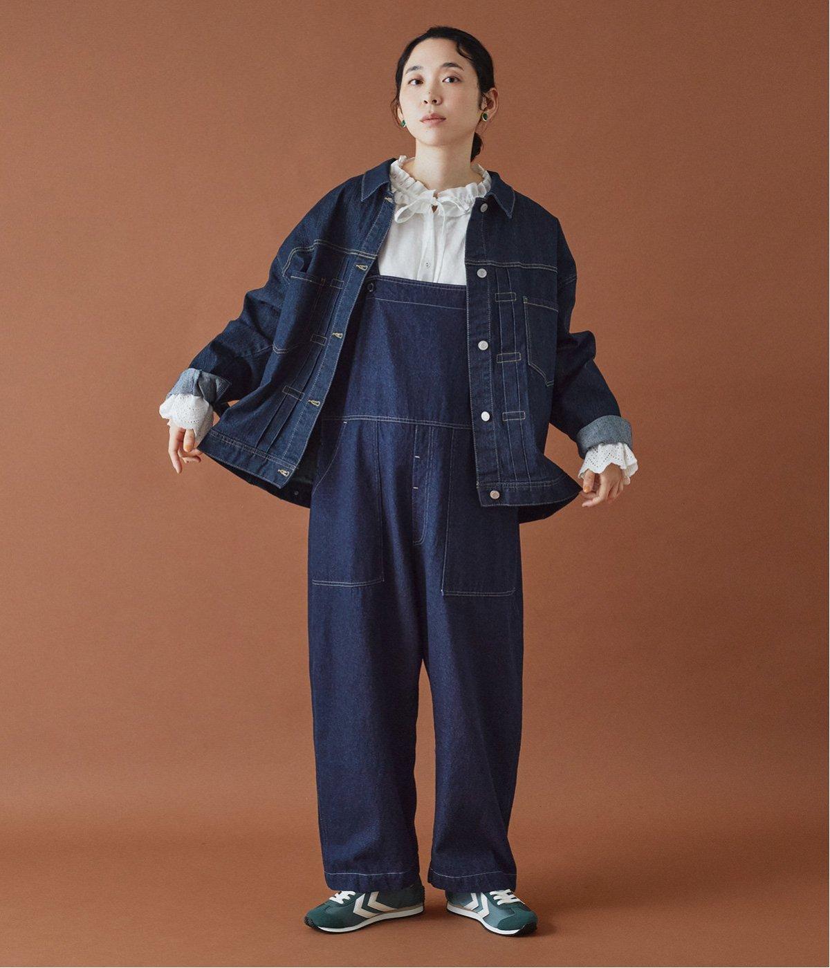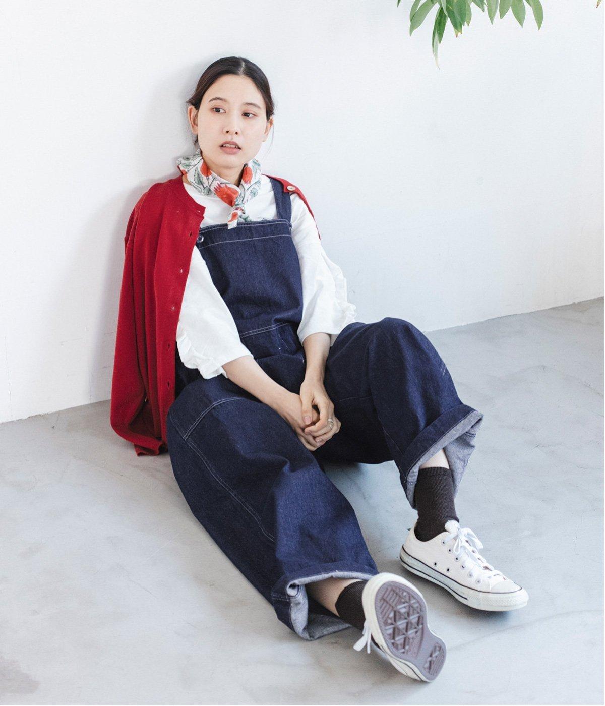 サロペットのワークテイストに、フリルブラウスの可愛げをひとさじ。ナチュラルな雰囲気とほどよい甘さのバランスが目を引く、洗練された着こなしです。