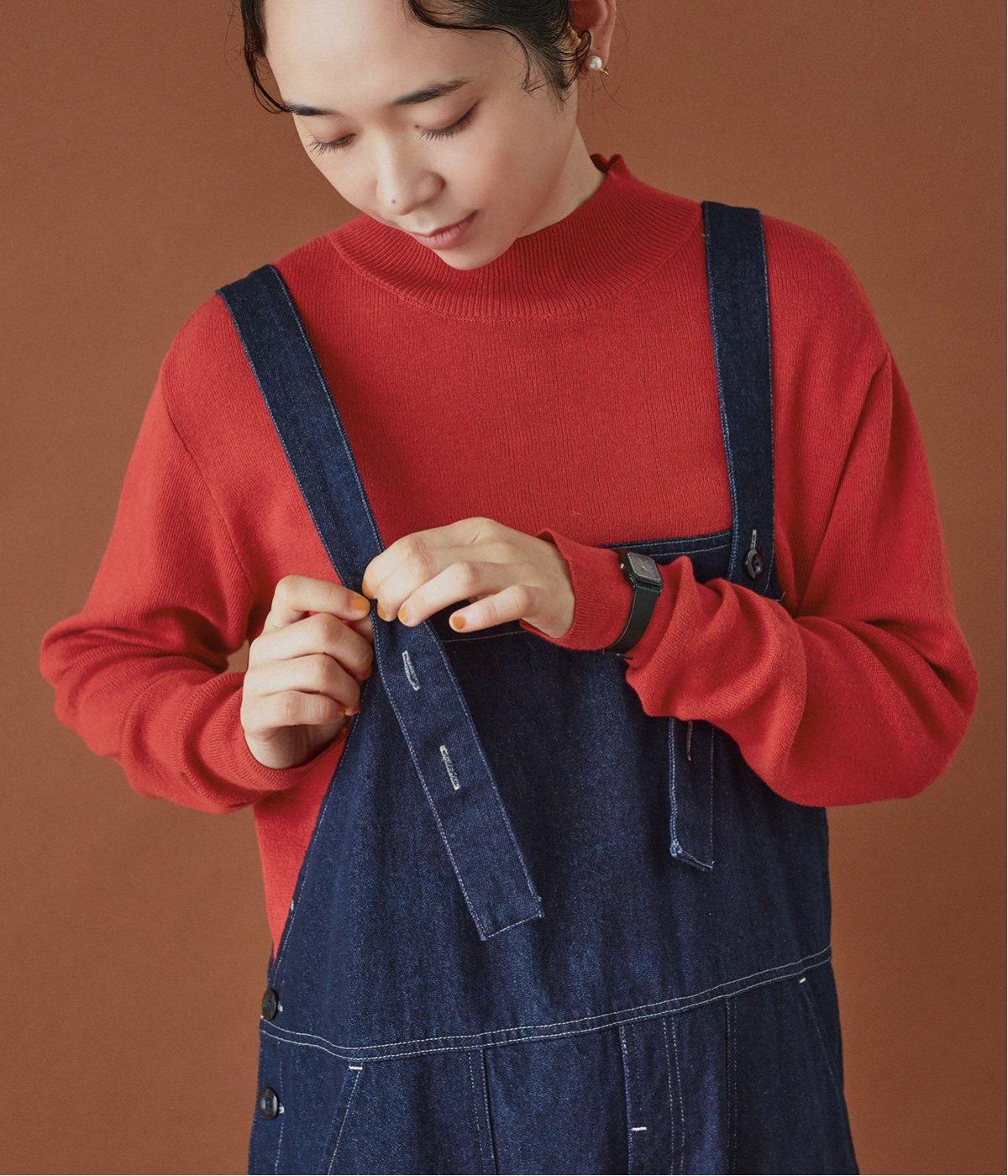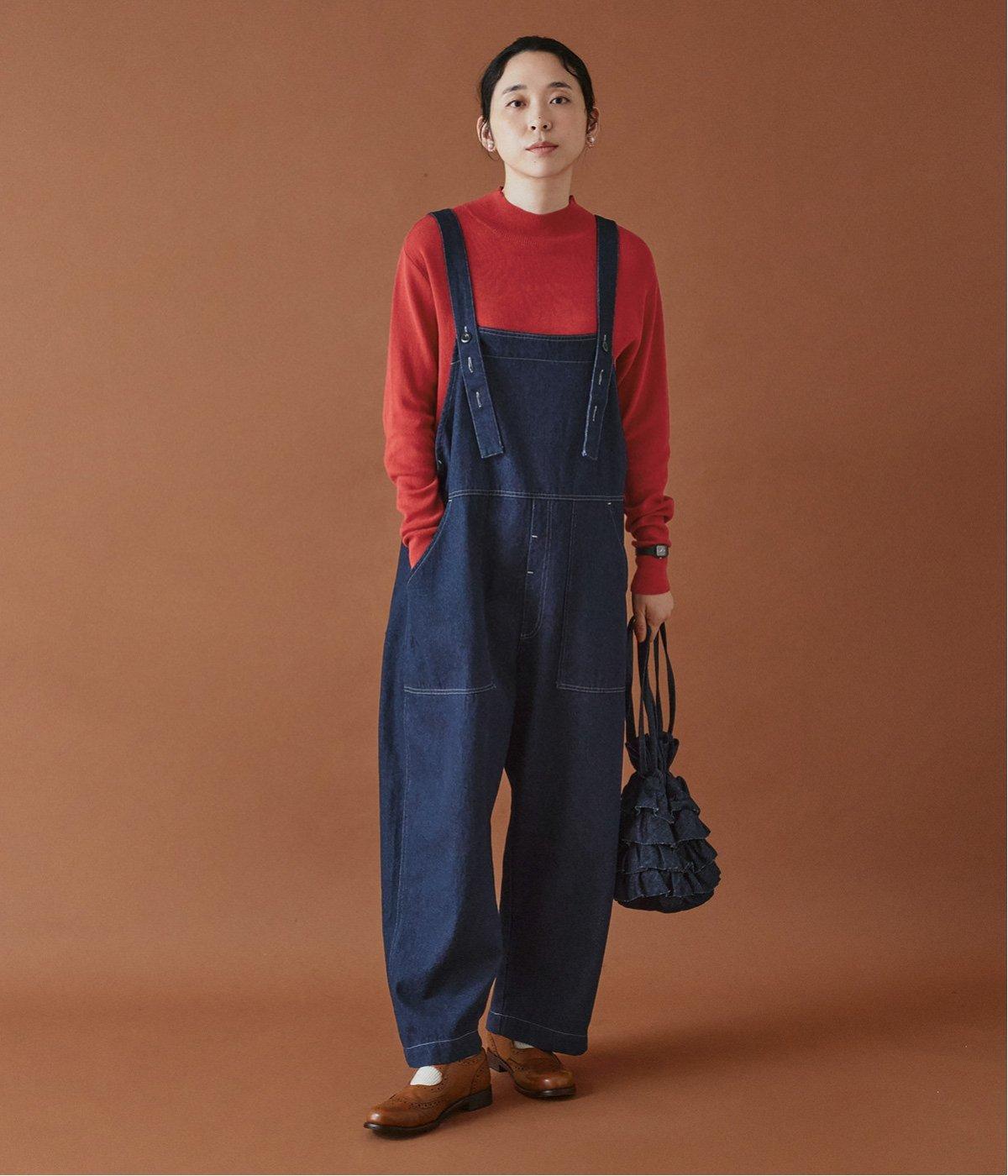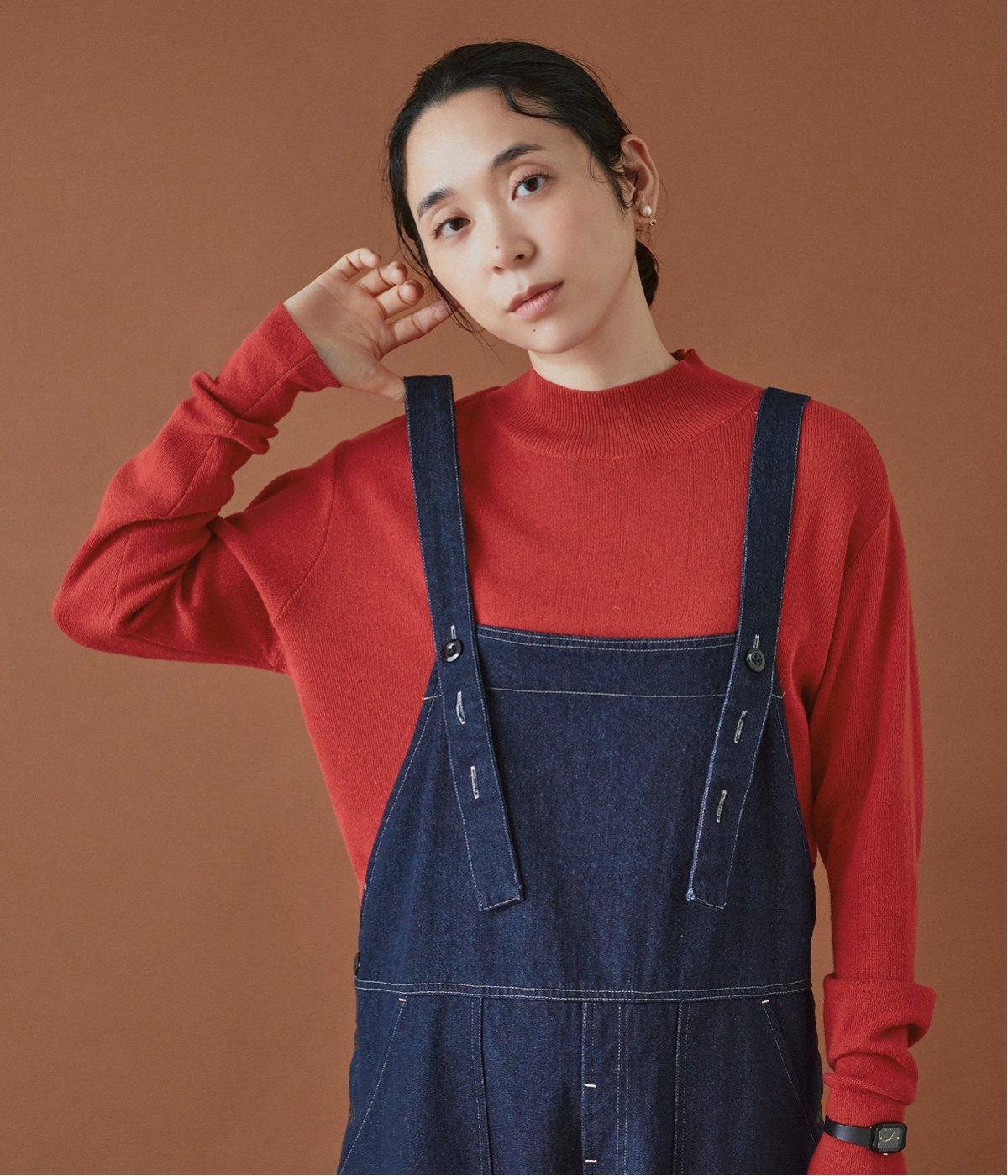 深みのあるデニムの色合いが、赤いハイネックニットを際立たせるスタイリング。さらっとシンプルに合わせても、どこか品を纏ったスタイリッシュな装いに。