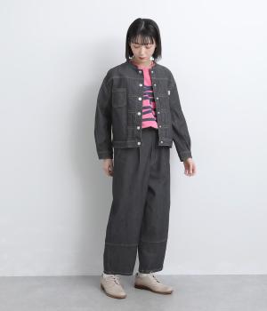 ちょうどいいサイズ感で幅広く着まわせるデニムジャケット。ロゴとチューリップの彫り柄を入れたボタンや、おうち柄ピスネームでブランドらしさをプラス。同素材パンツとセットアップにすればよりスタイリッシュな装いが叶います。