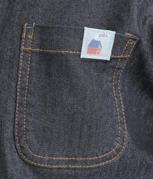 コットンデニムのタフさを活かしながらもポリエステルの軽量感とポリウレタンの伸縮性を加えました。インディゴ染めによる経年変化もたのしみです。