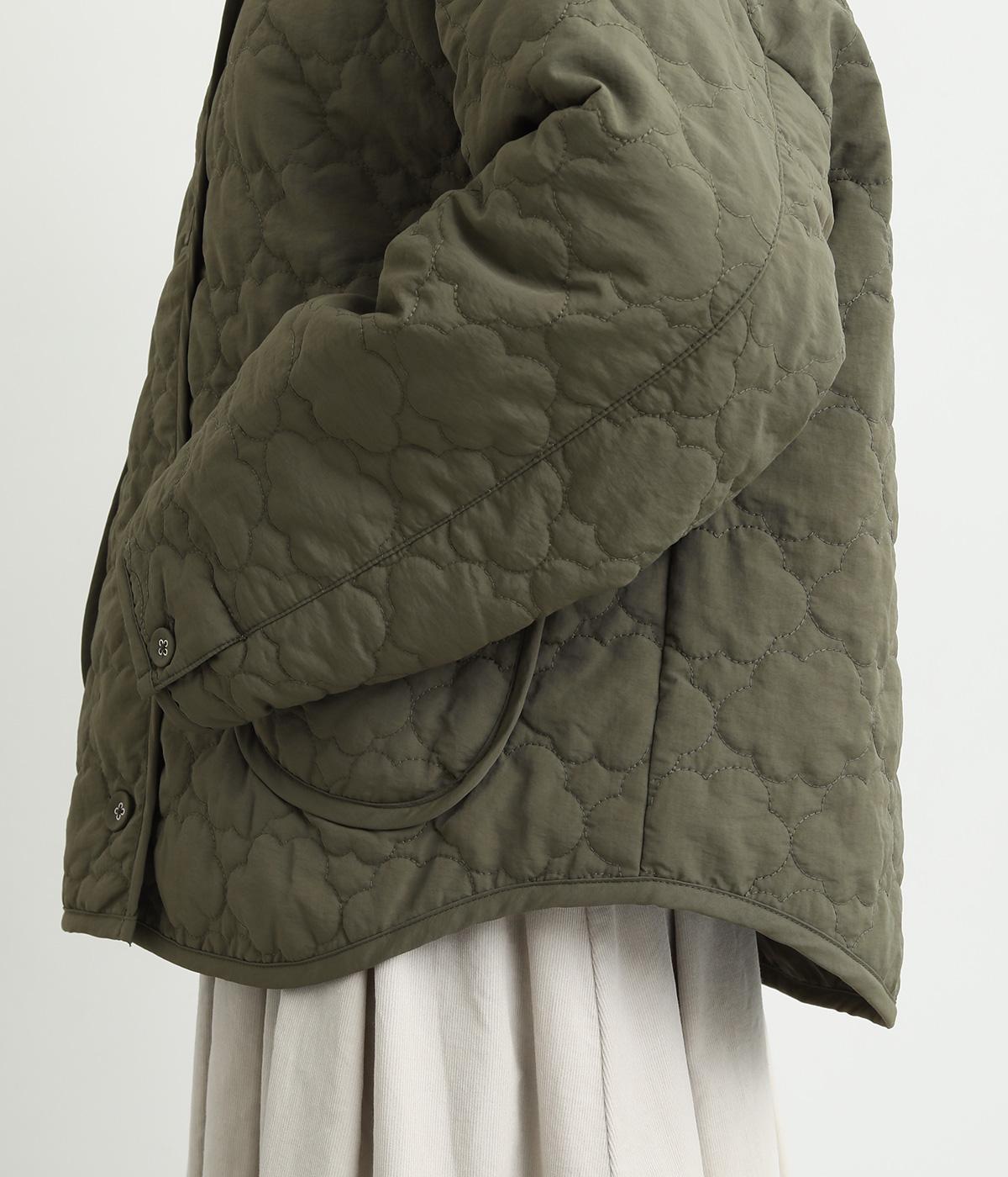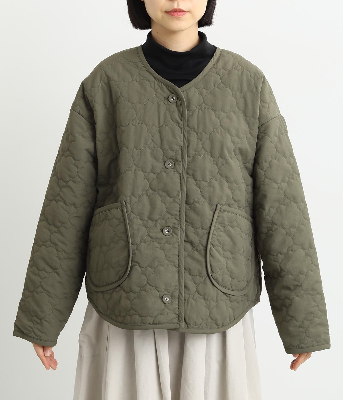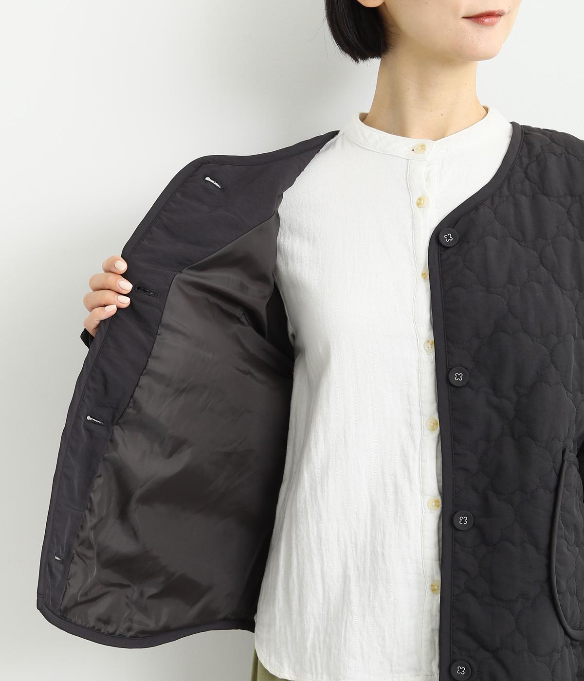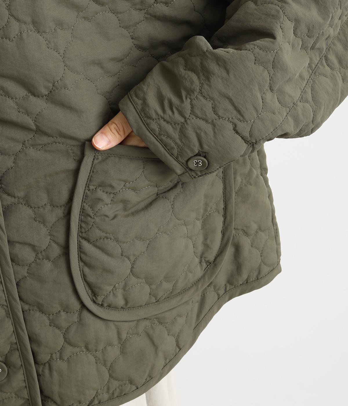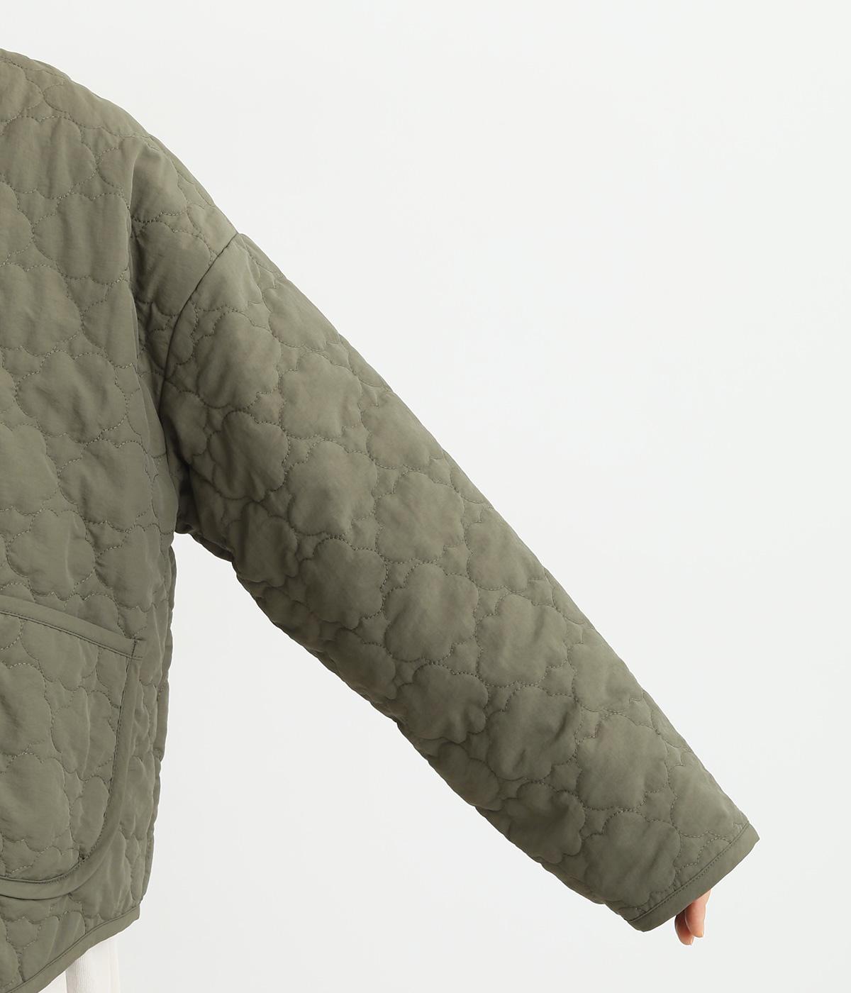 雲の形のキルティングステッチが可愛らしい印象のショートコート。丸みのあるポケットやヘムラインも世界観にマッチしていて、ガーリーな装いにも合わせられます。ノーカラーですっきりと羽織りやすいのも◎。