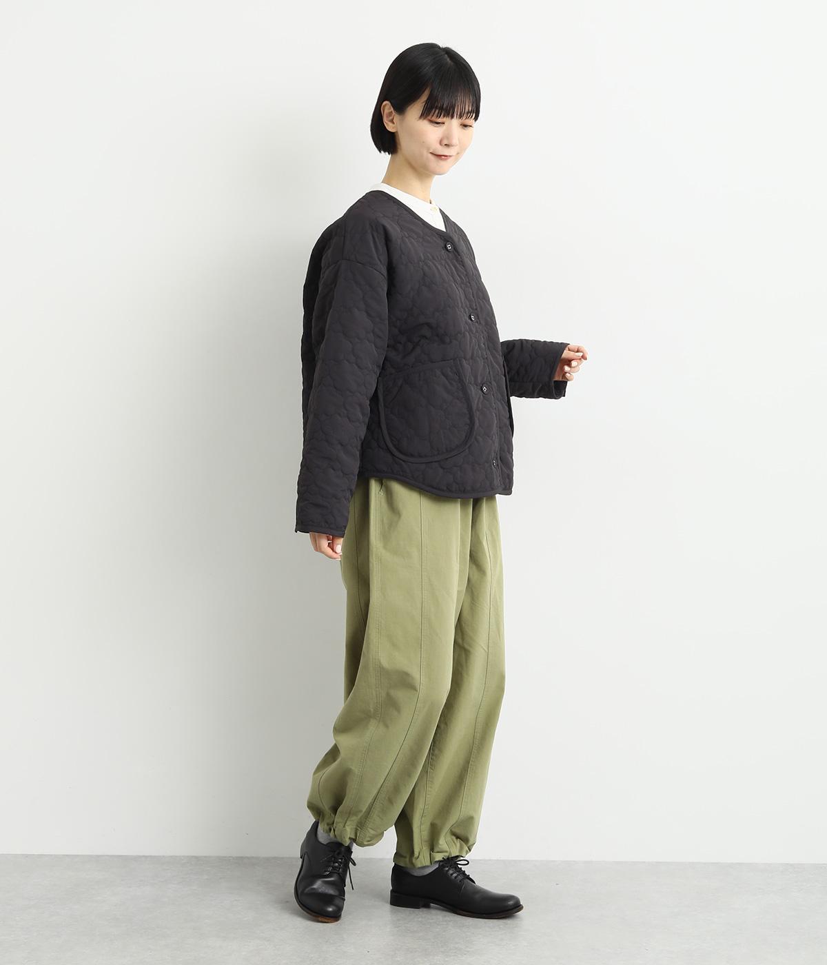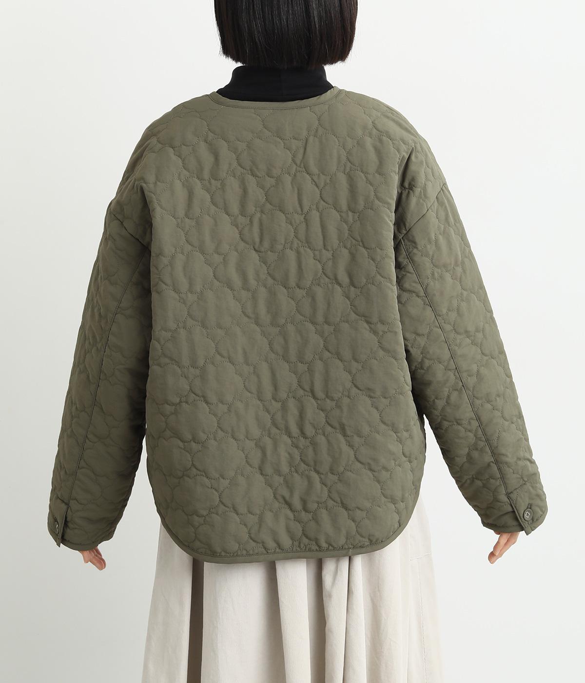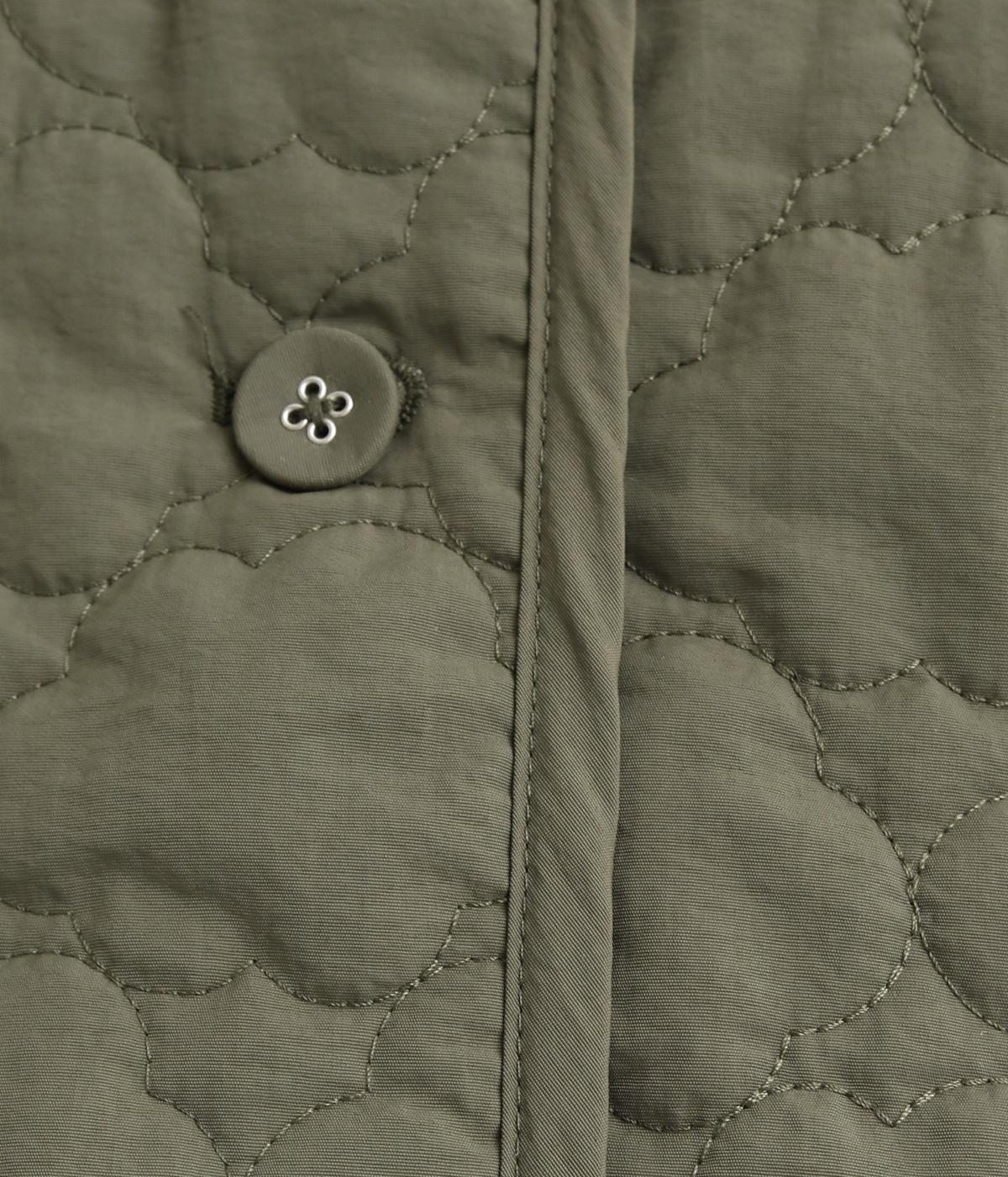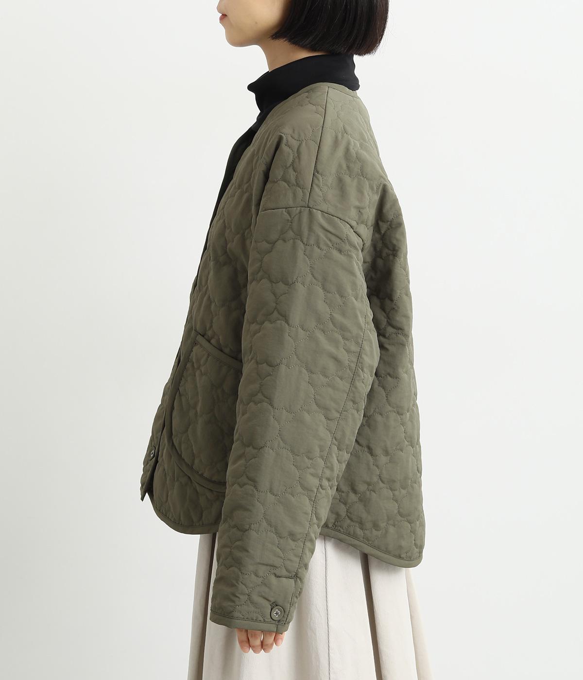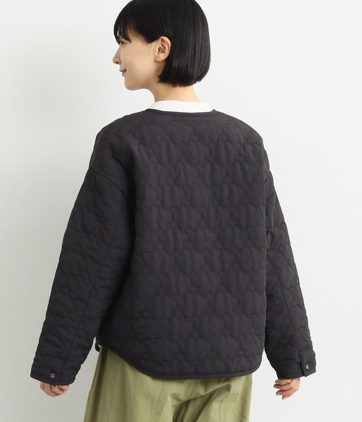雲の形のキルティングステッチが可愛らしい印象のショートコート。丸みのあるポケットやヘムラインも世界観にマッチしていて、ガーリーな装いにも合わせられます。ノーカラーですっきりと羽織りやすいのも◎。