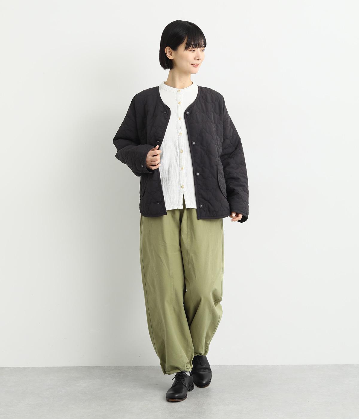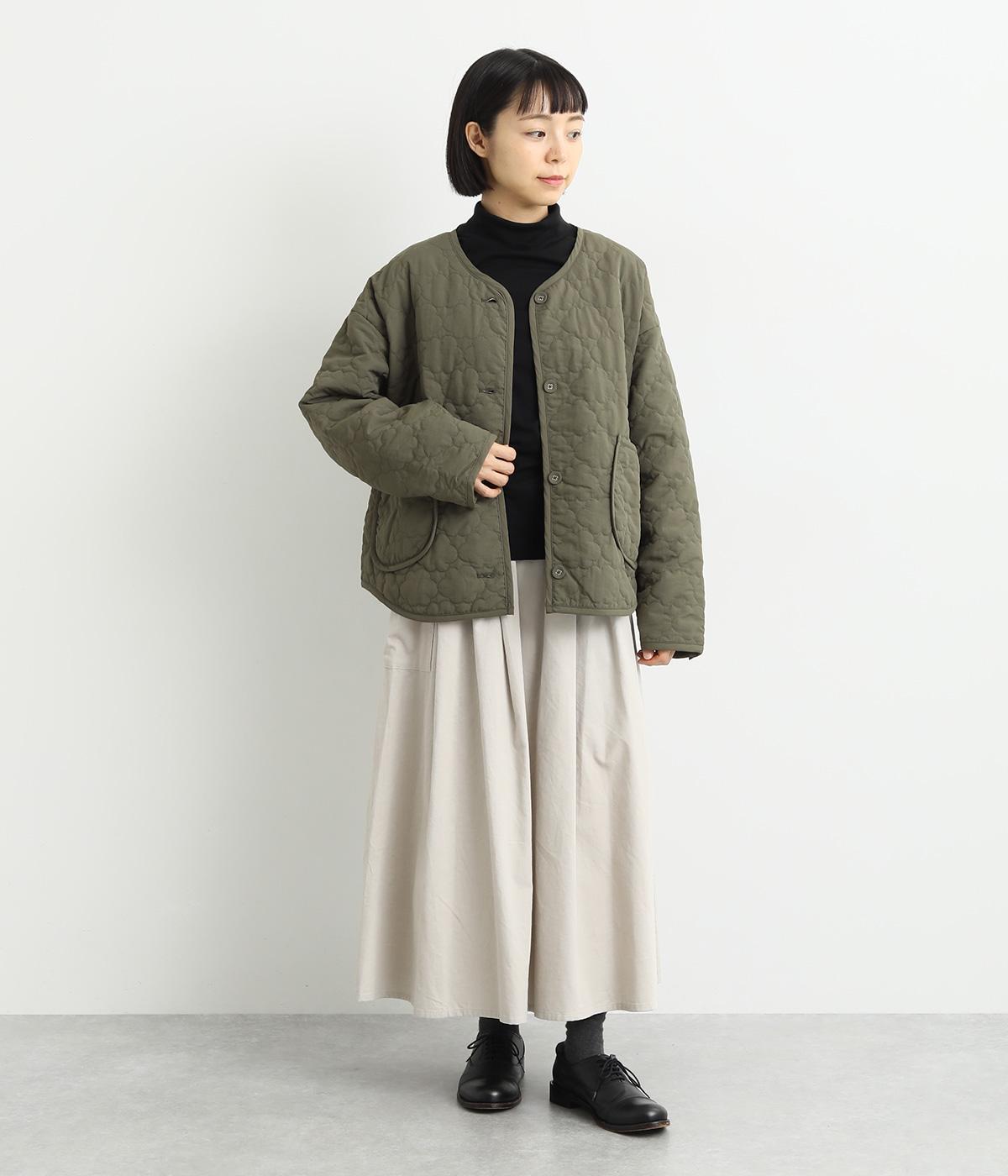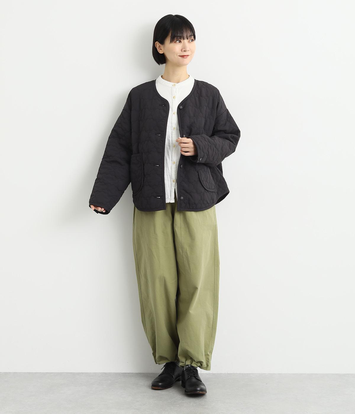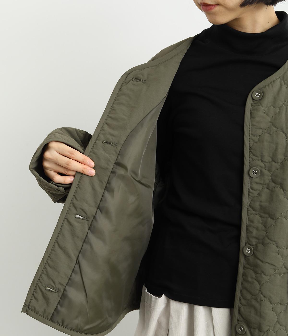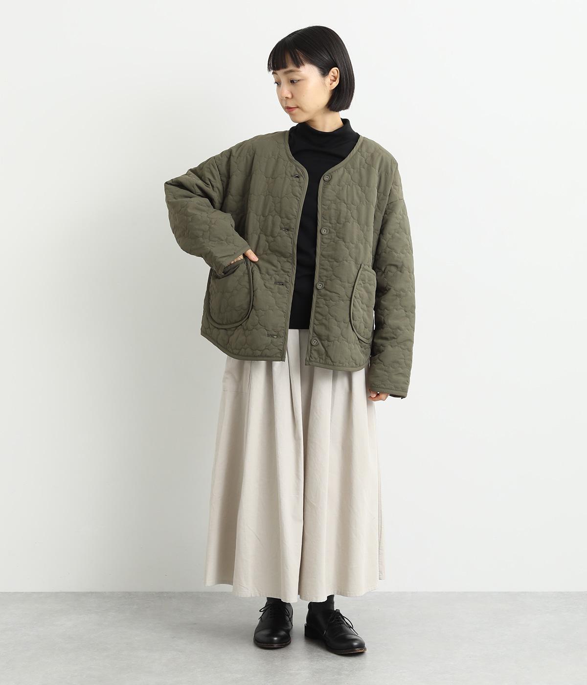 雲の形のキルティングステッチが可愛らしい印象のショートコート。丸みのあるポケットやヘムラインも世界観にマッチしていて、ガーリーな装いにも合わせられます。ノーカラーですっきりと羽織りやすいのも◎。