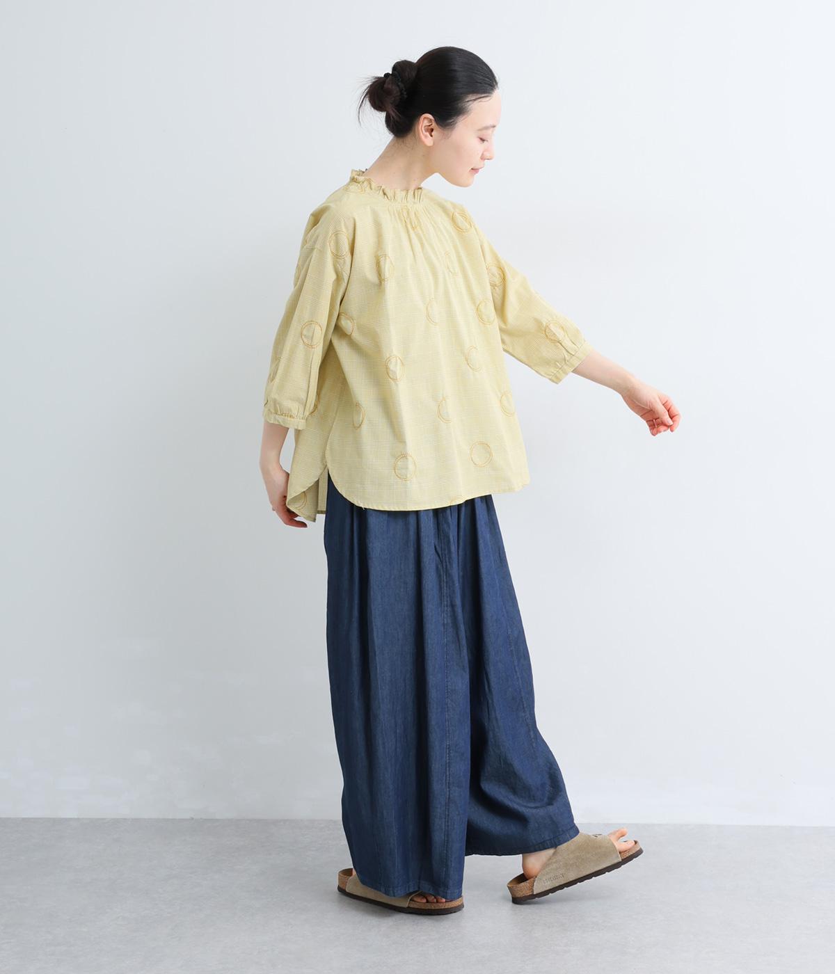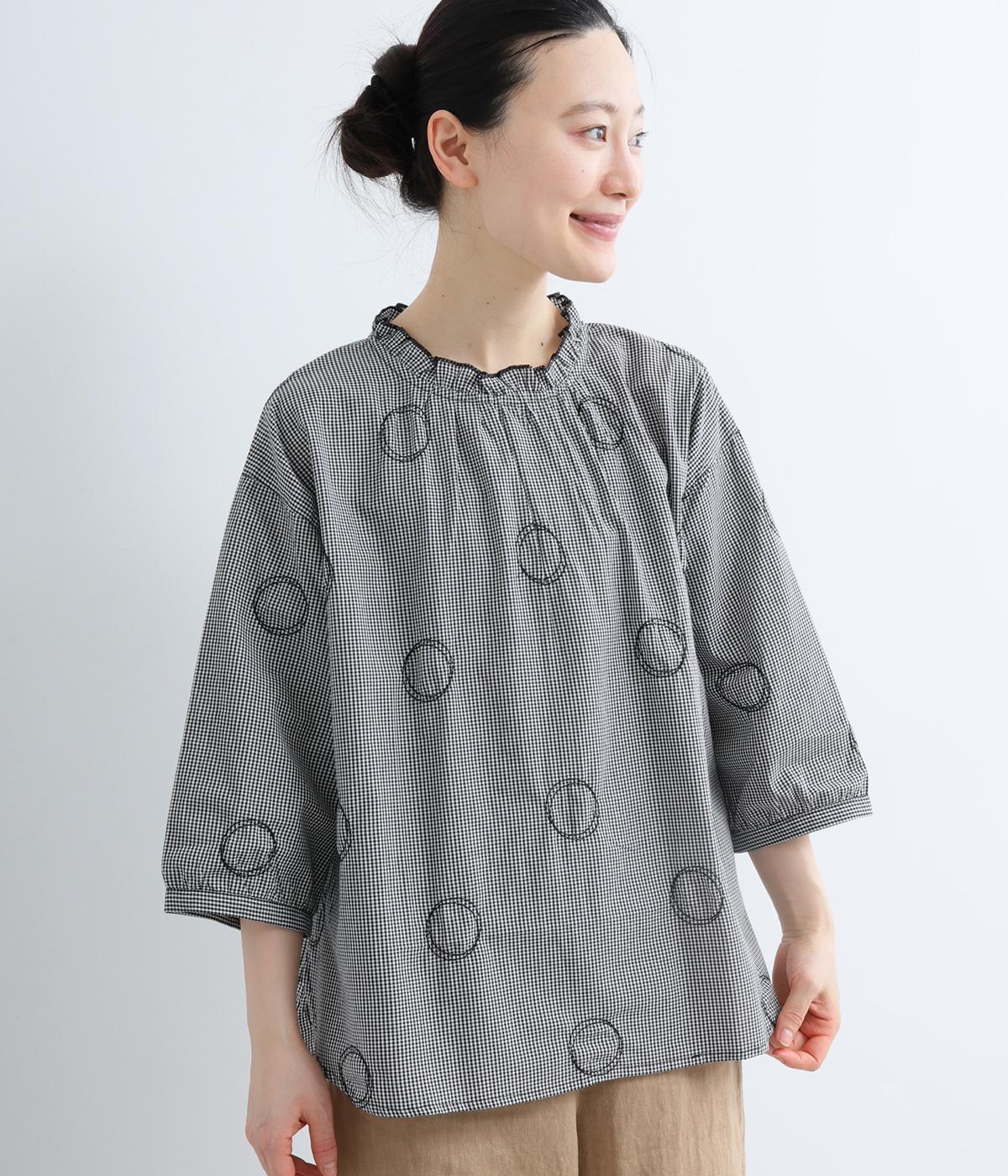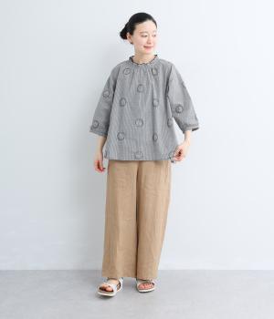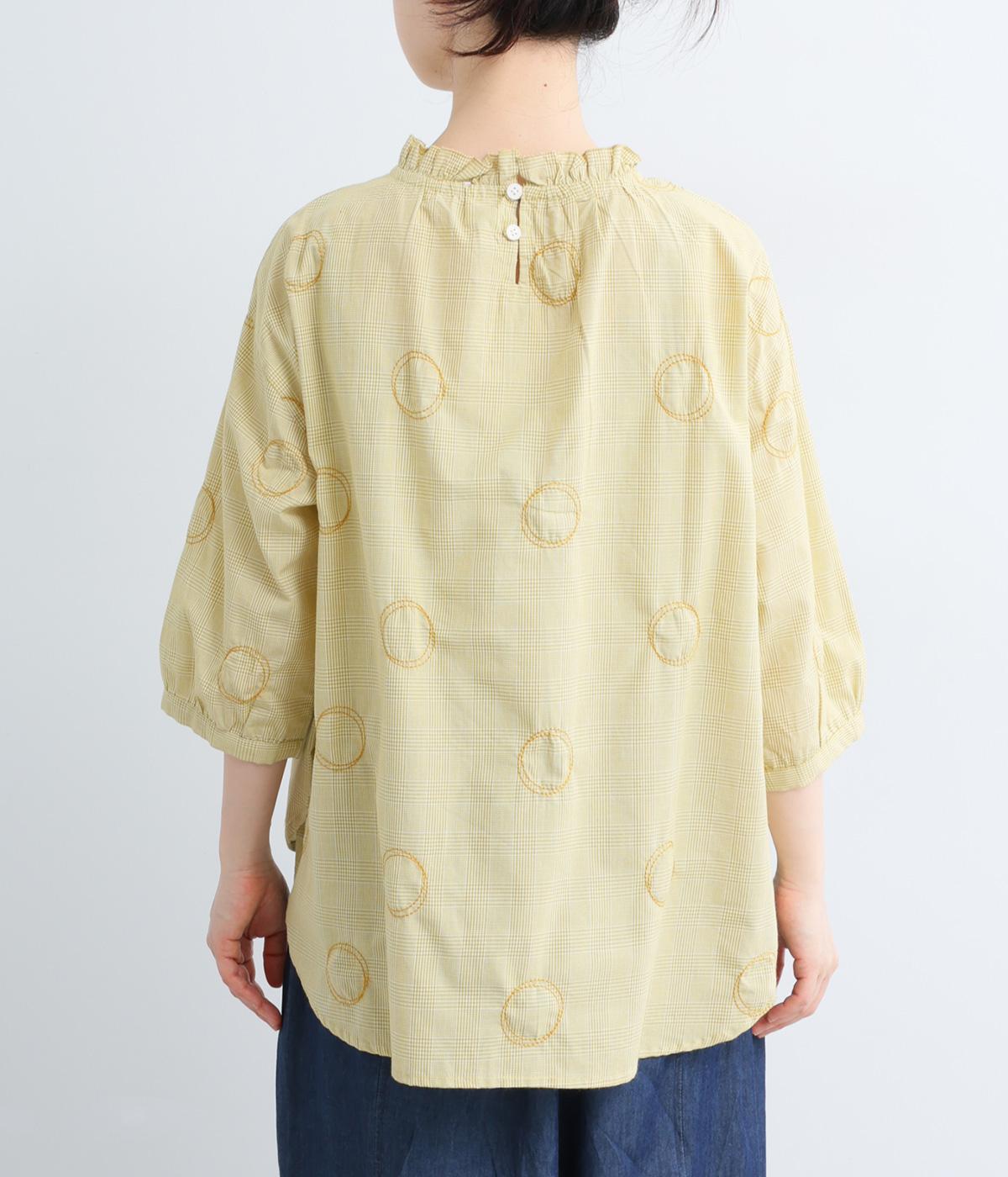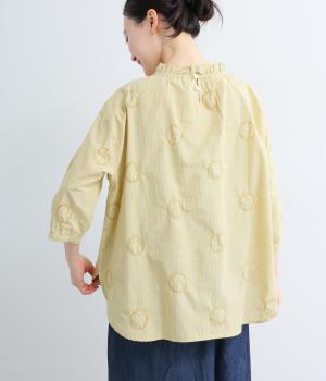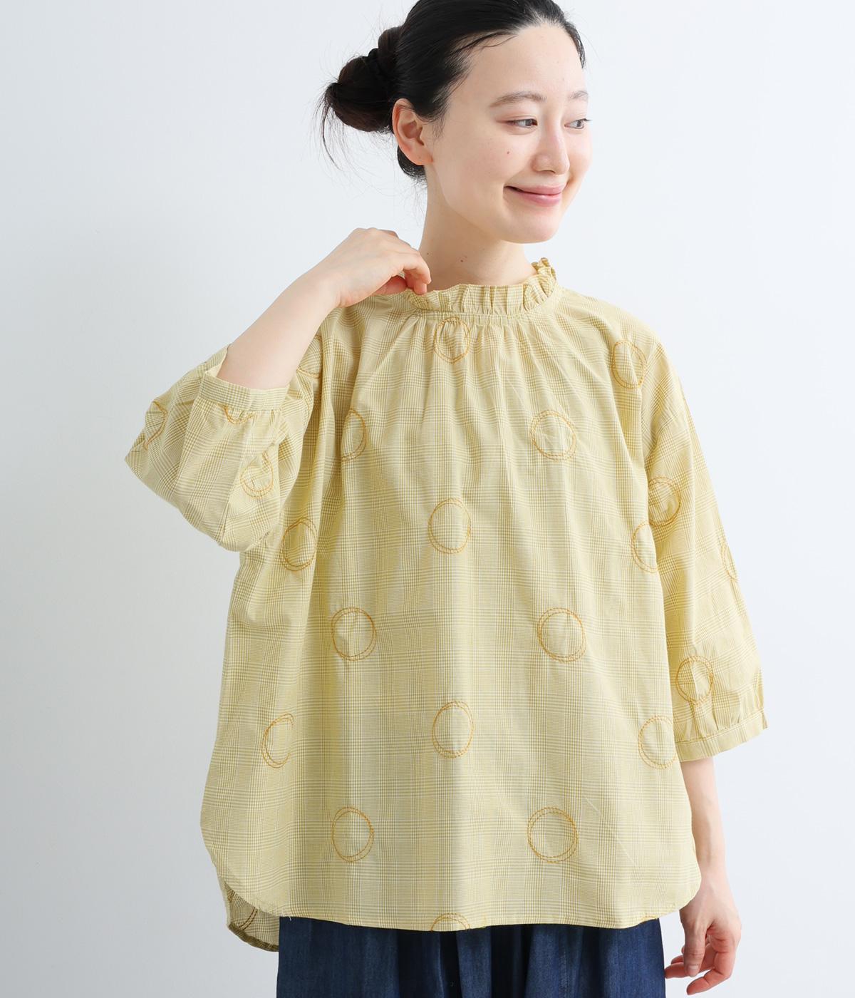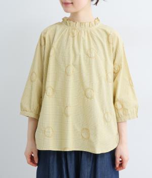 コットン柄アソート ヨーク刺繍7分袖ブラウス