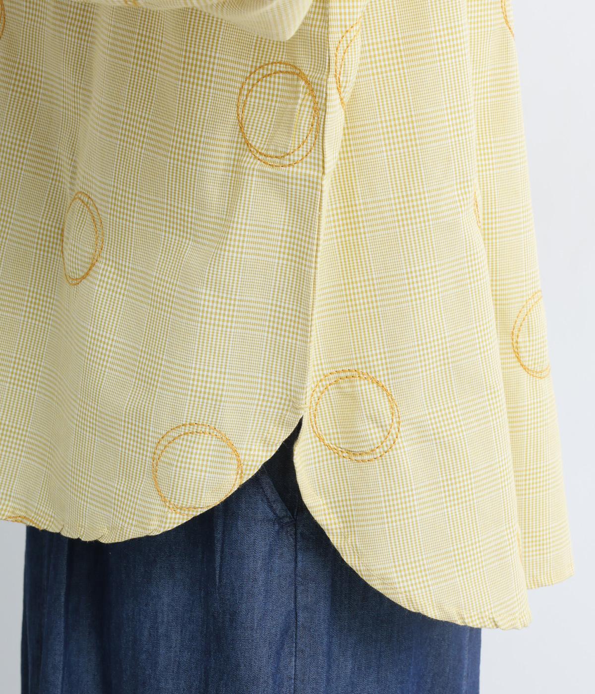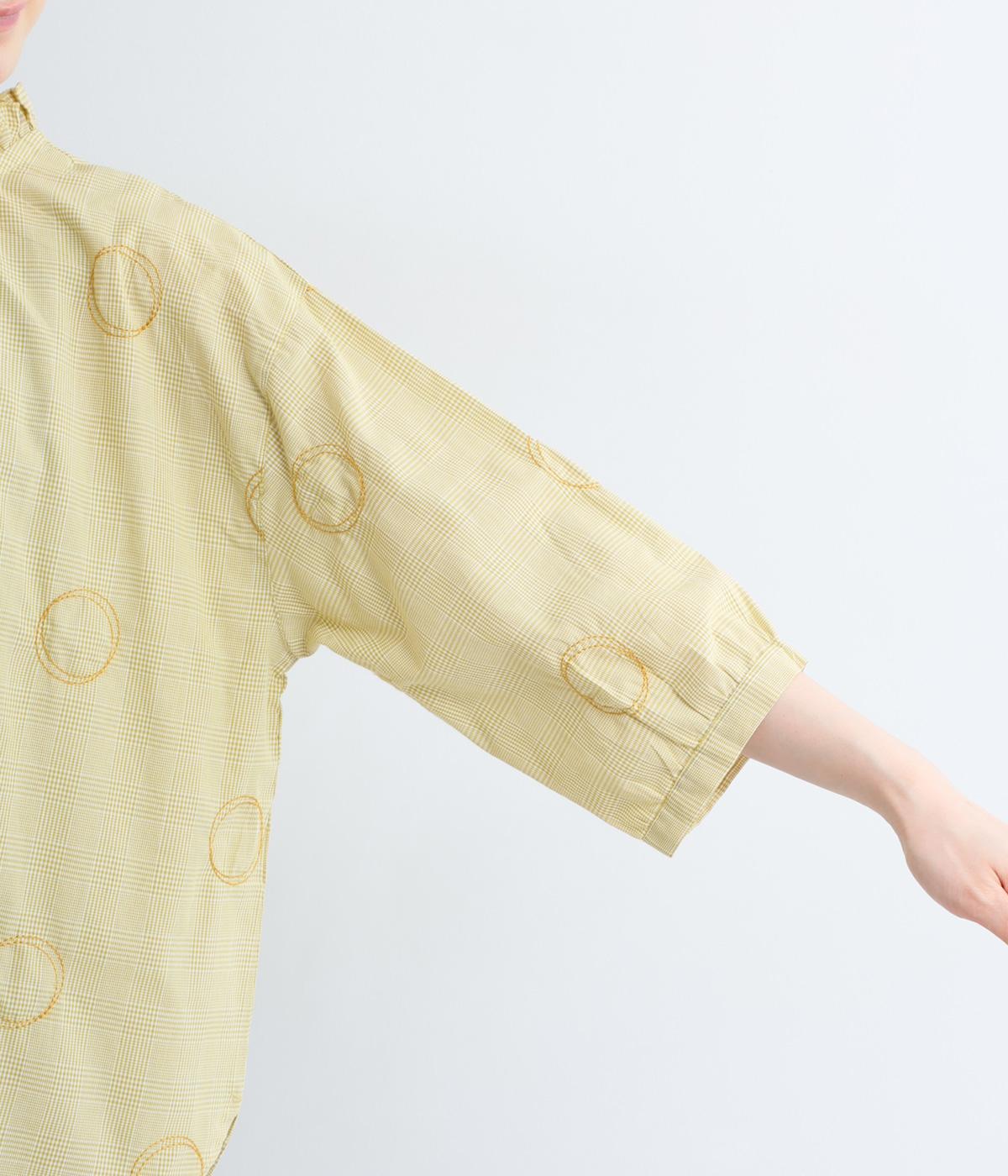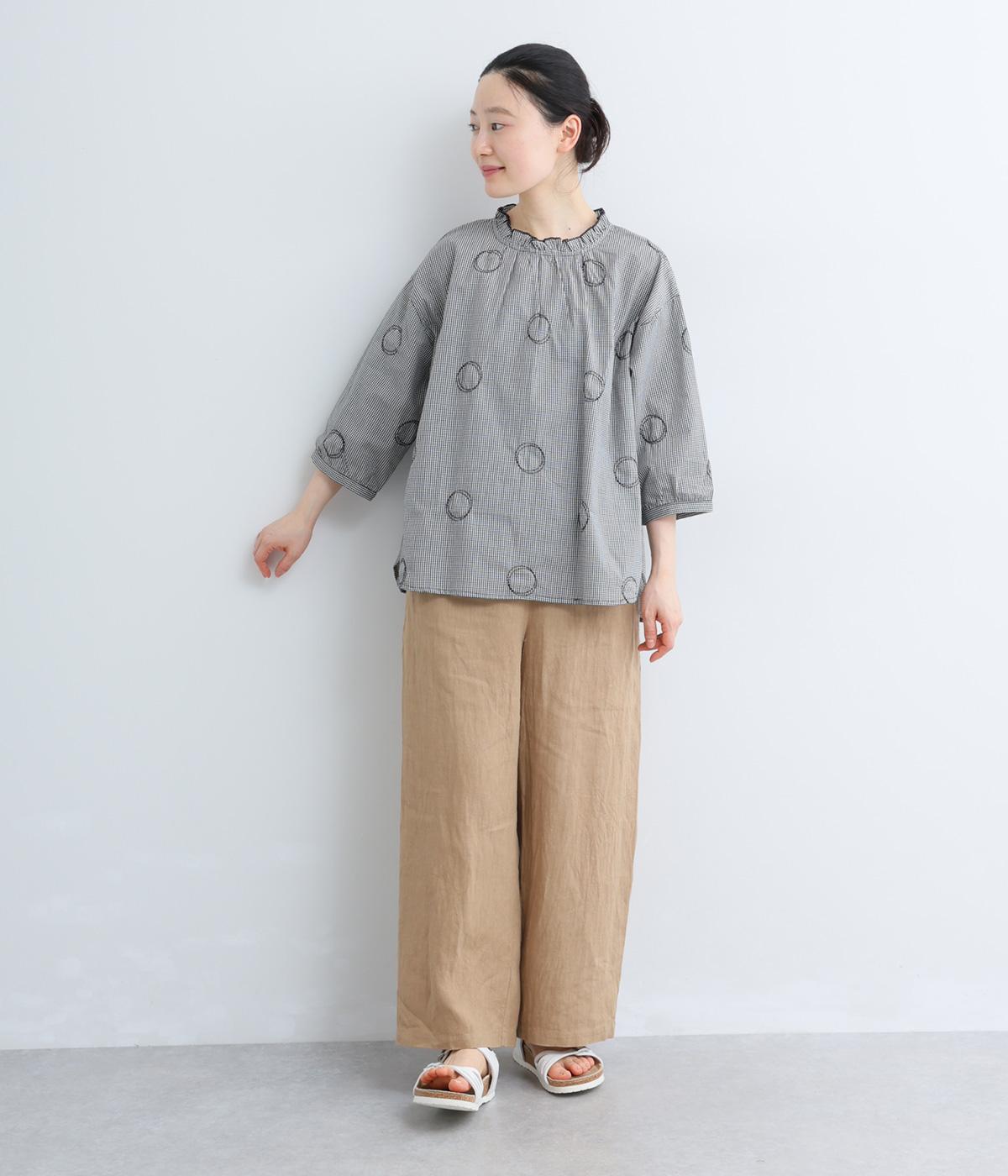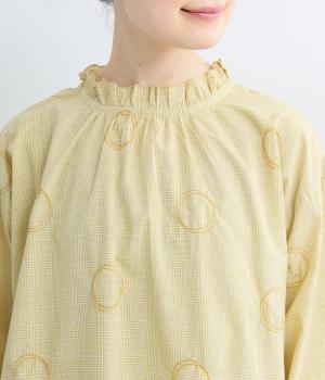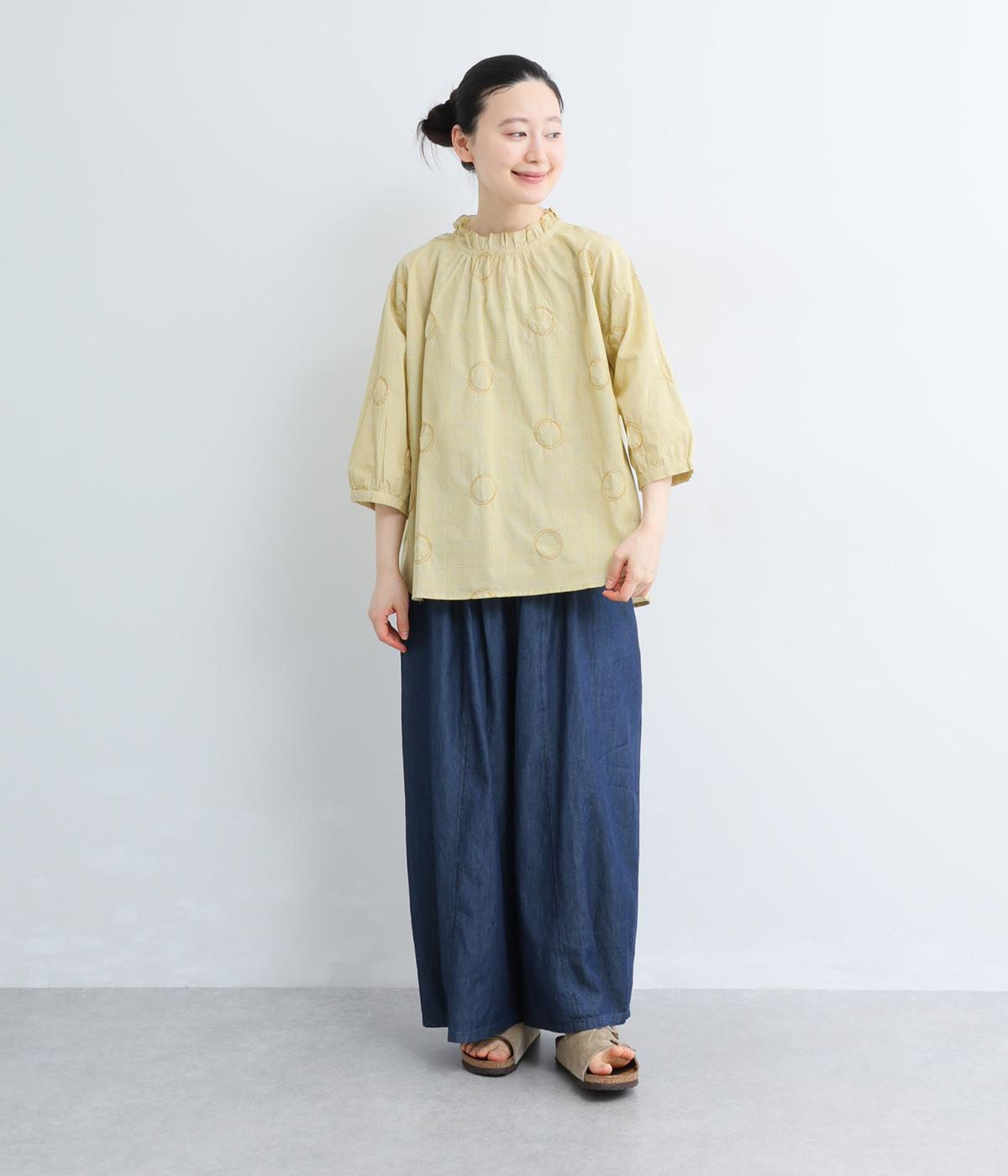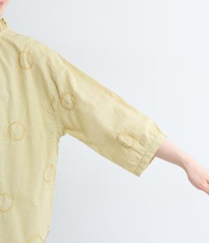 コットン柄アソート ヨーク刺繍7分袖ブラウス