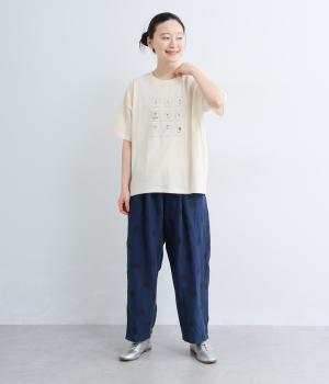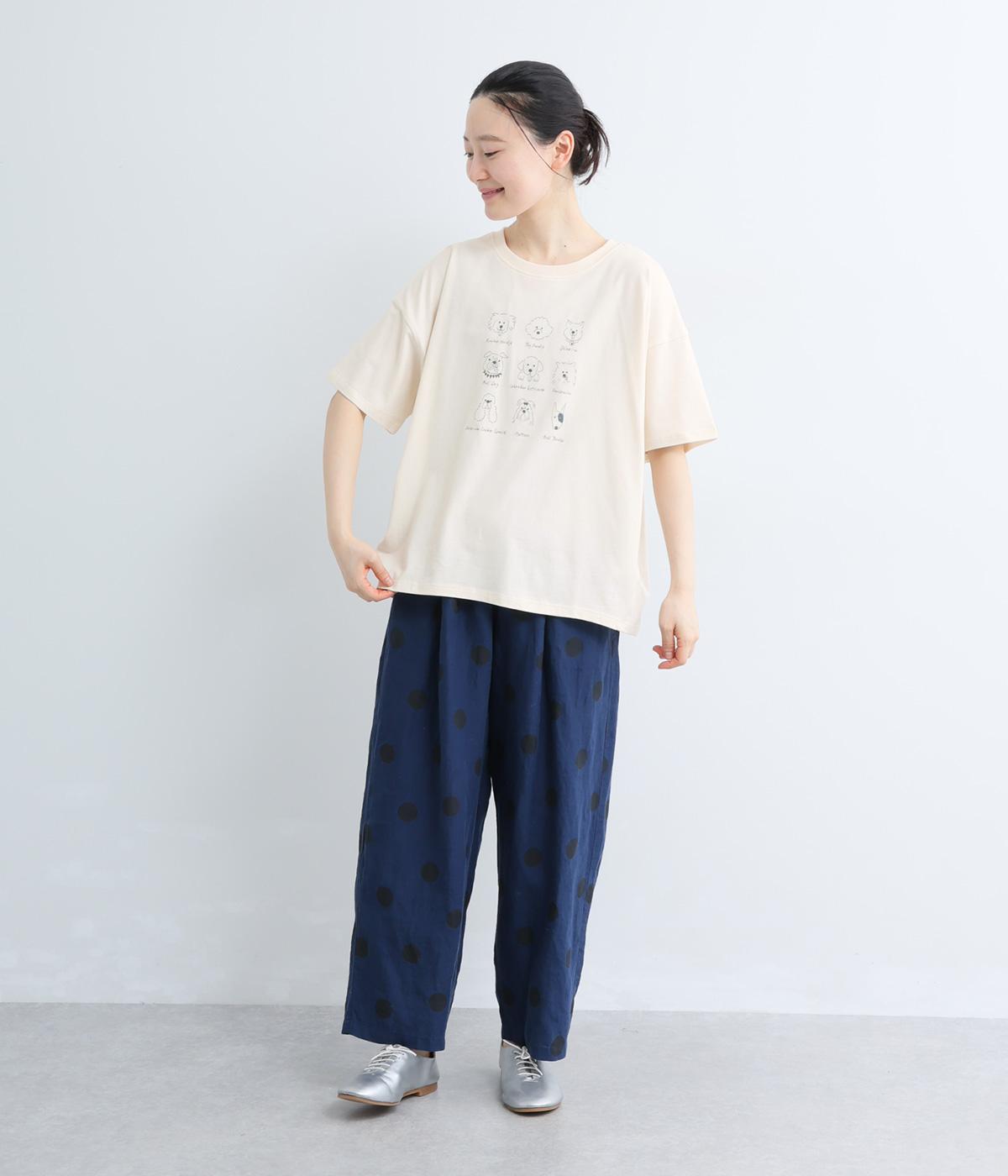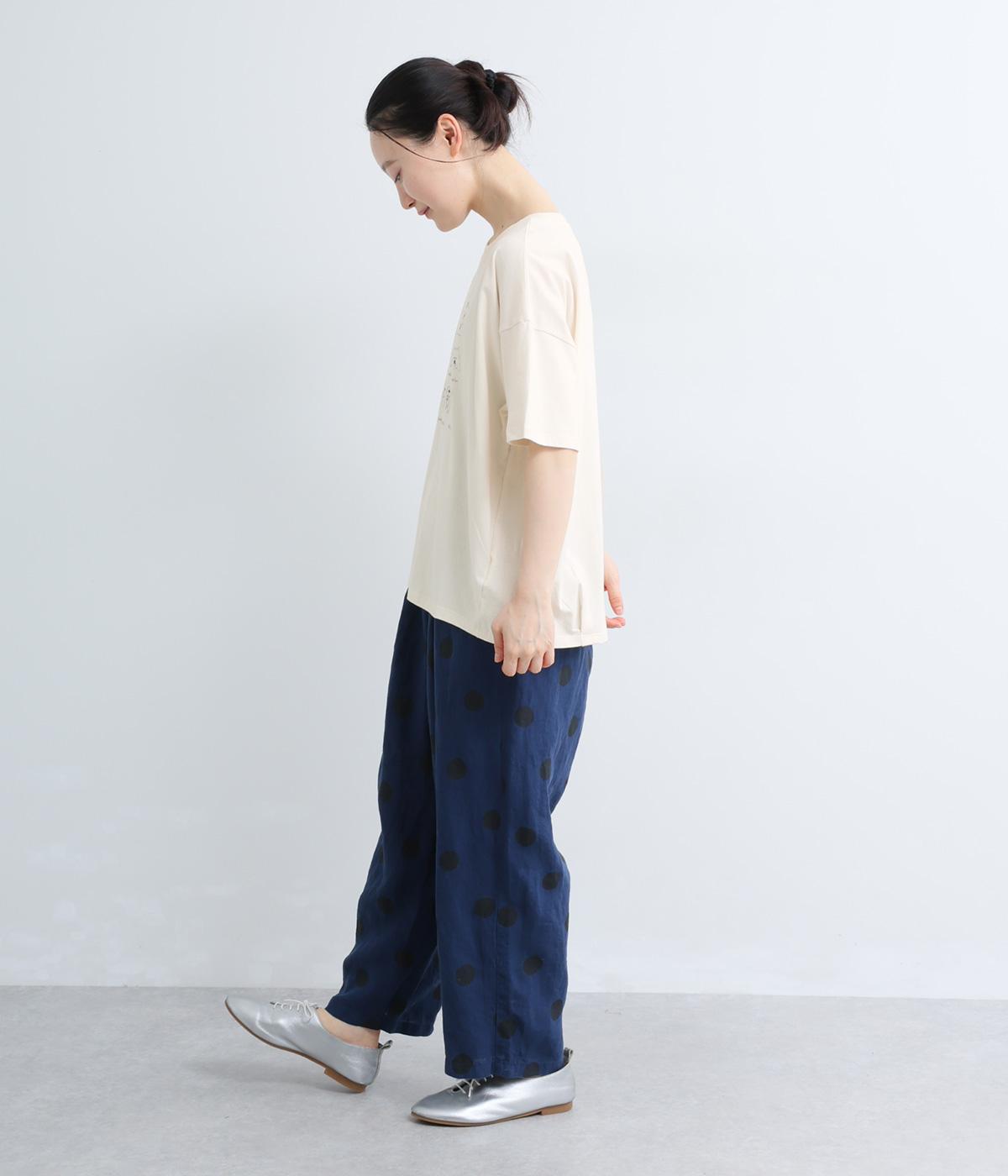 【cloudnine pure】リネンランダムドットプリント 9分丈ワイドテーパードパンツ(ネイビー)