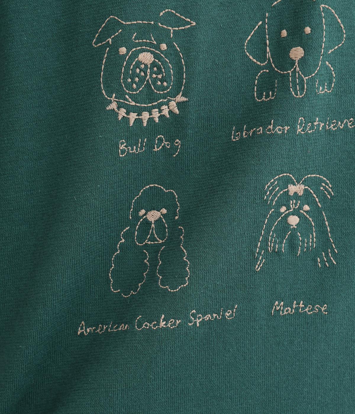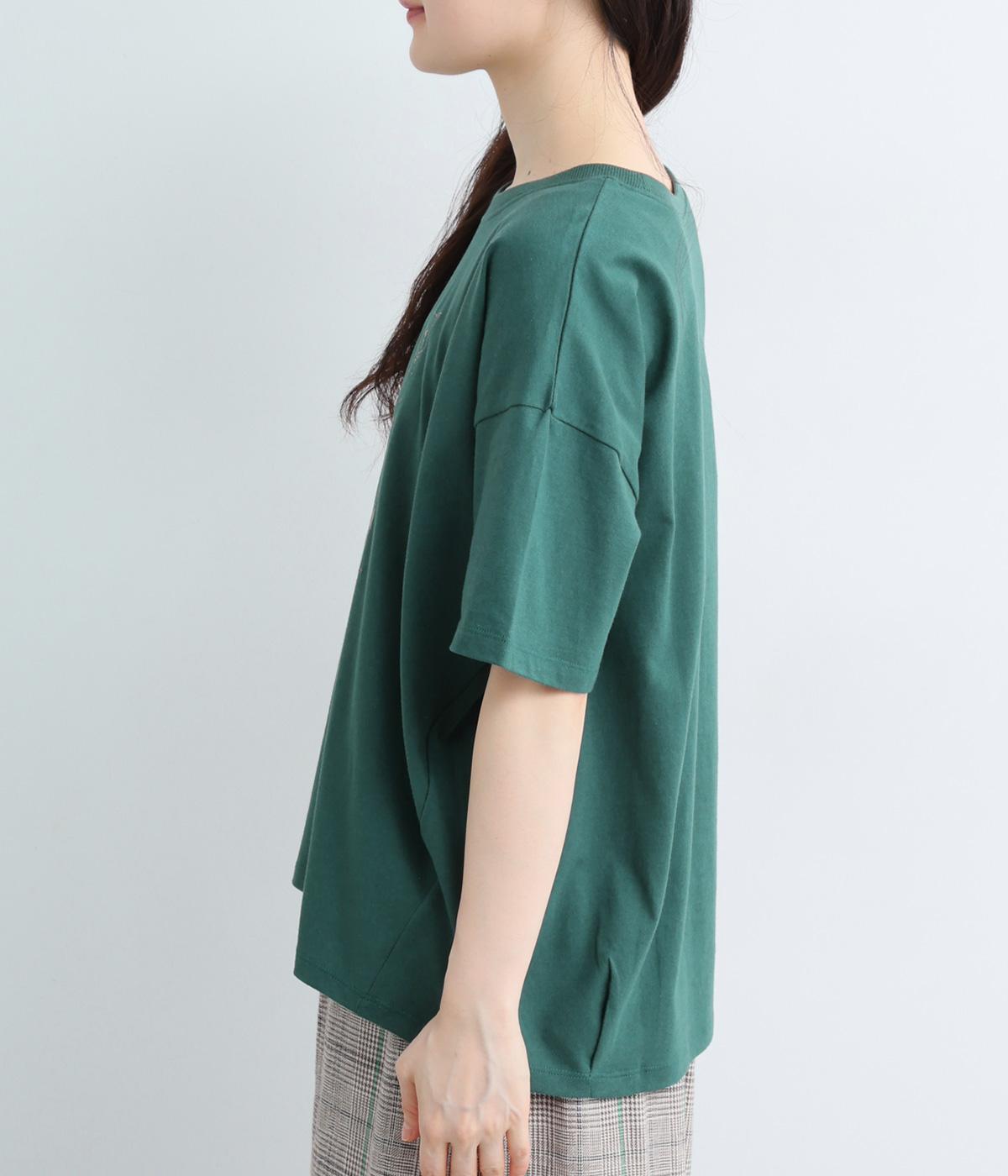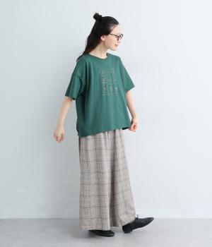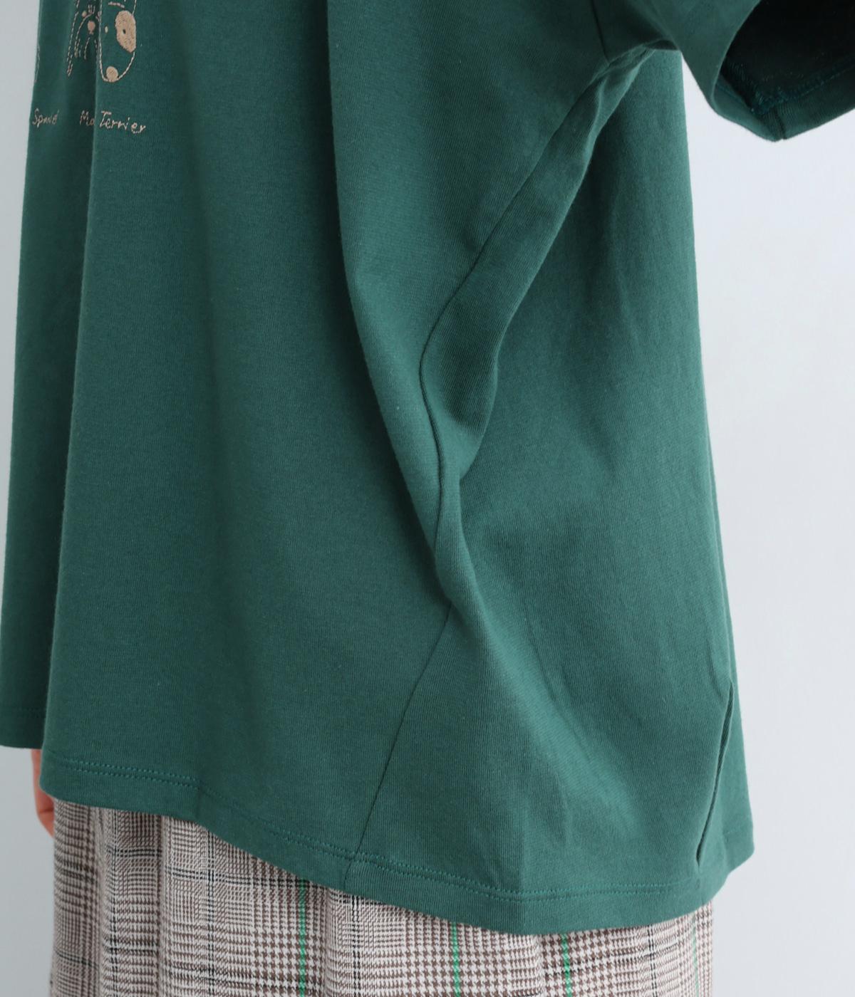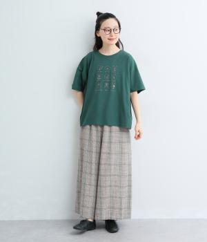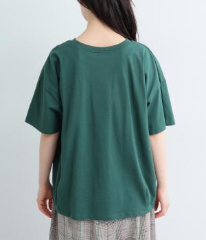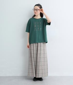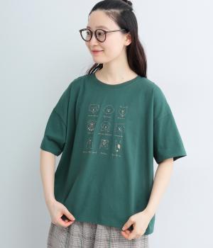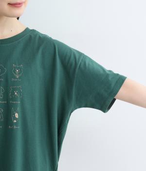 コットン天竺 ネコ刺繍8分袖カットソー