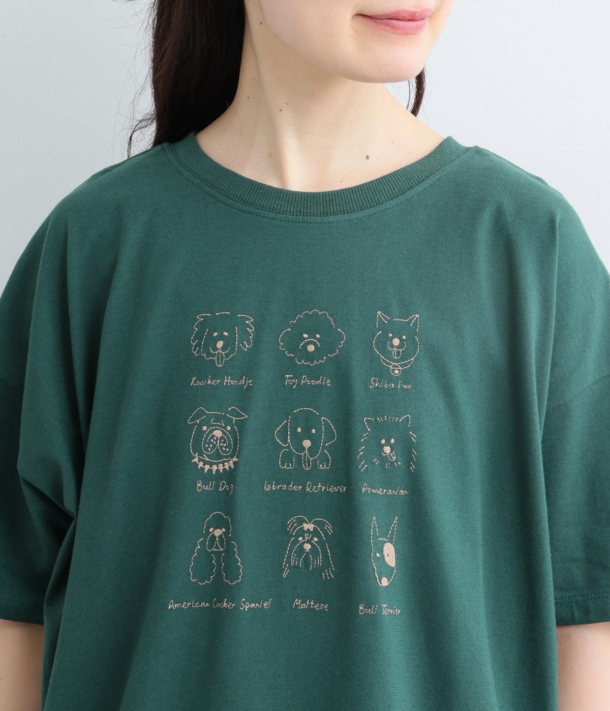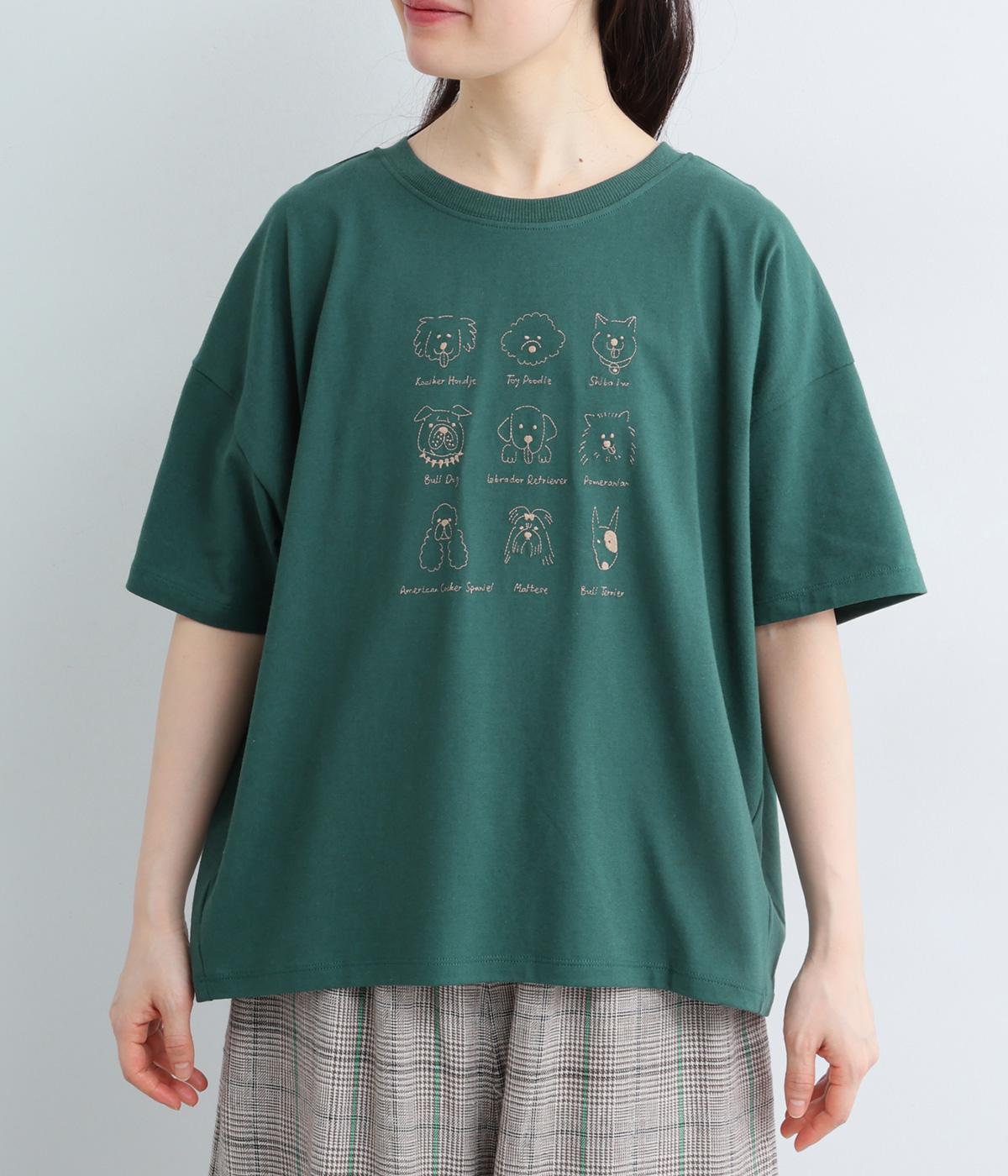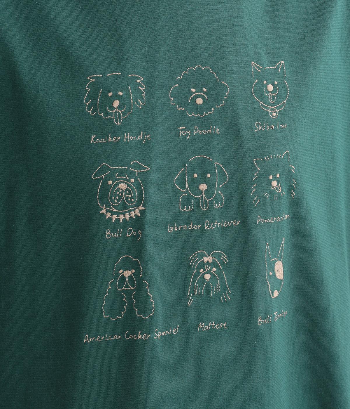 コットン天竺 ネコ刺繍8分袖カットソー