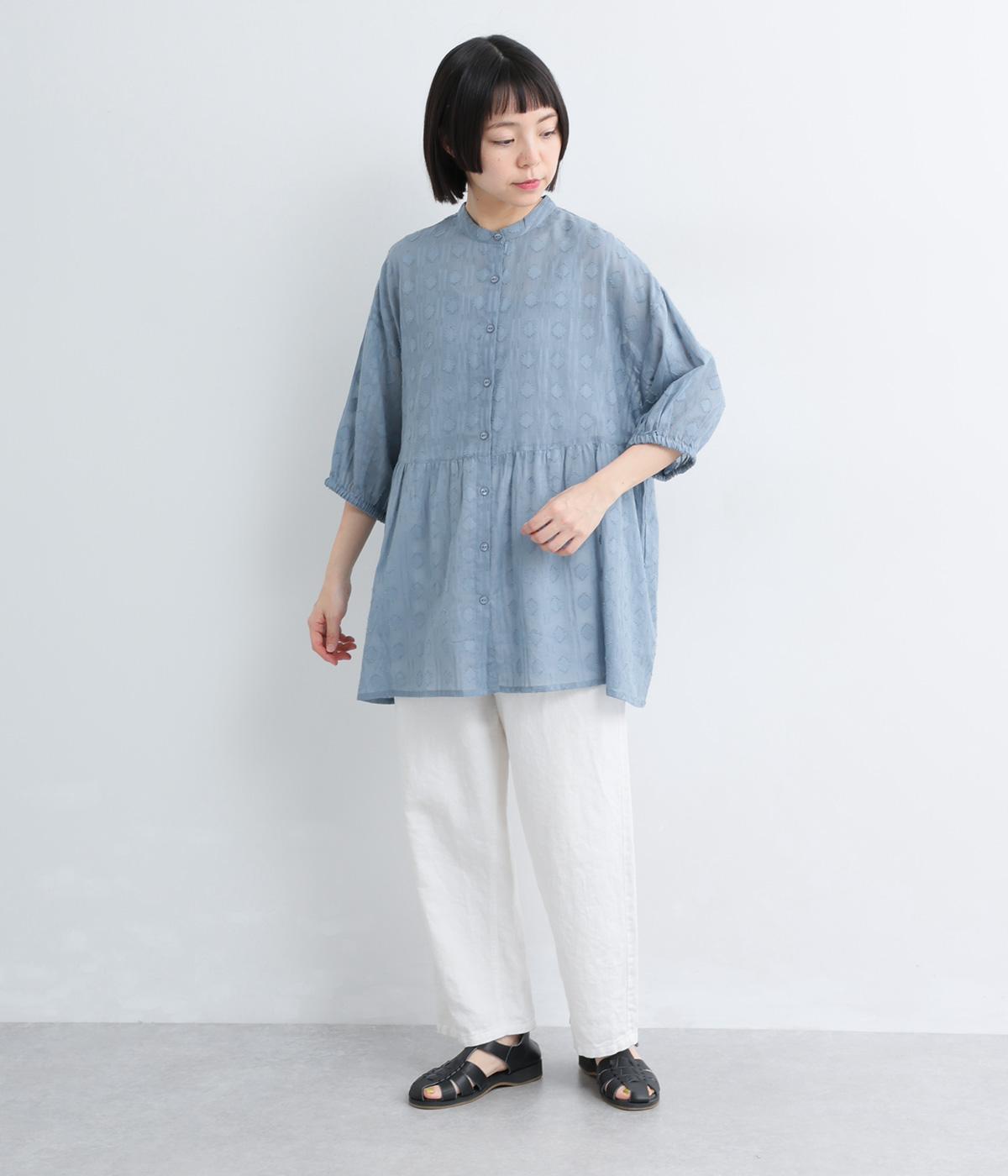 コットンキャンブリックシフリー刺繍 前開きチュニック