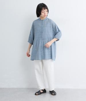 コットンガーゼストライプクリンクル加工 前開きチュニック