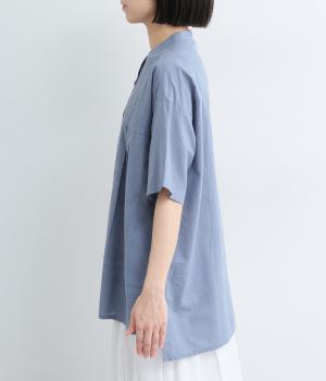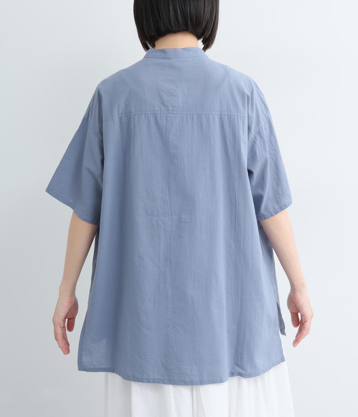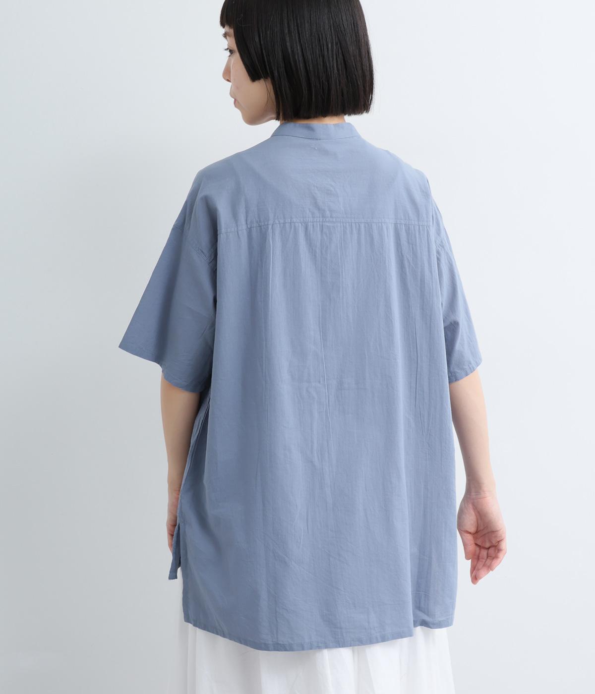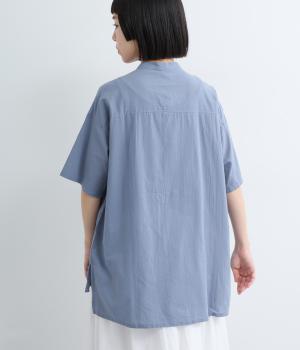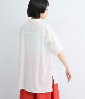 コットンジャカード ウエストギャザー入り前開きチュニック