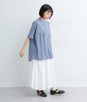 コットンガーゼストライプクリンクル加工 前開きチュニック