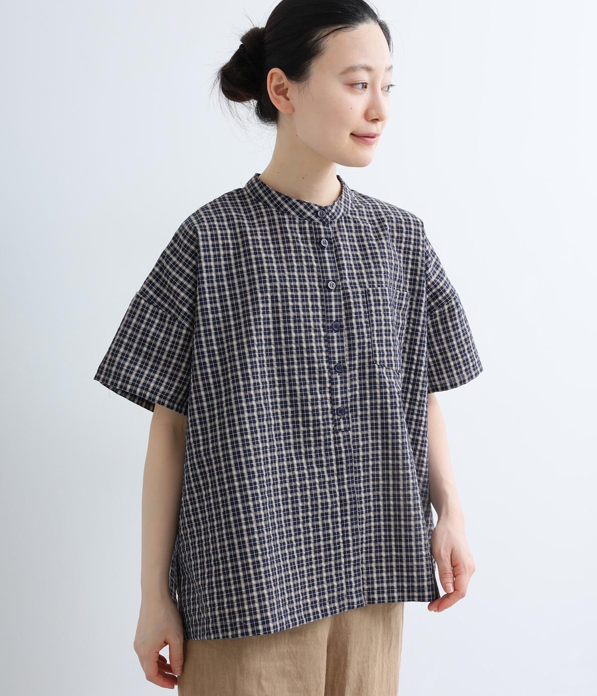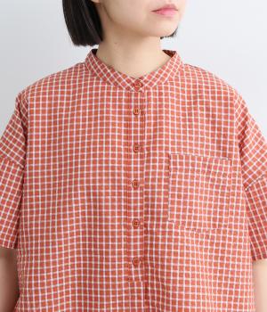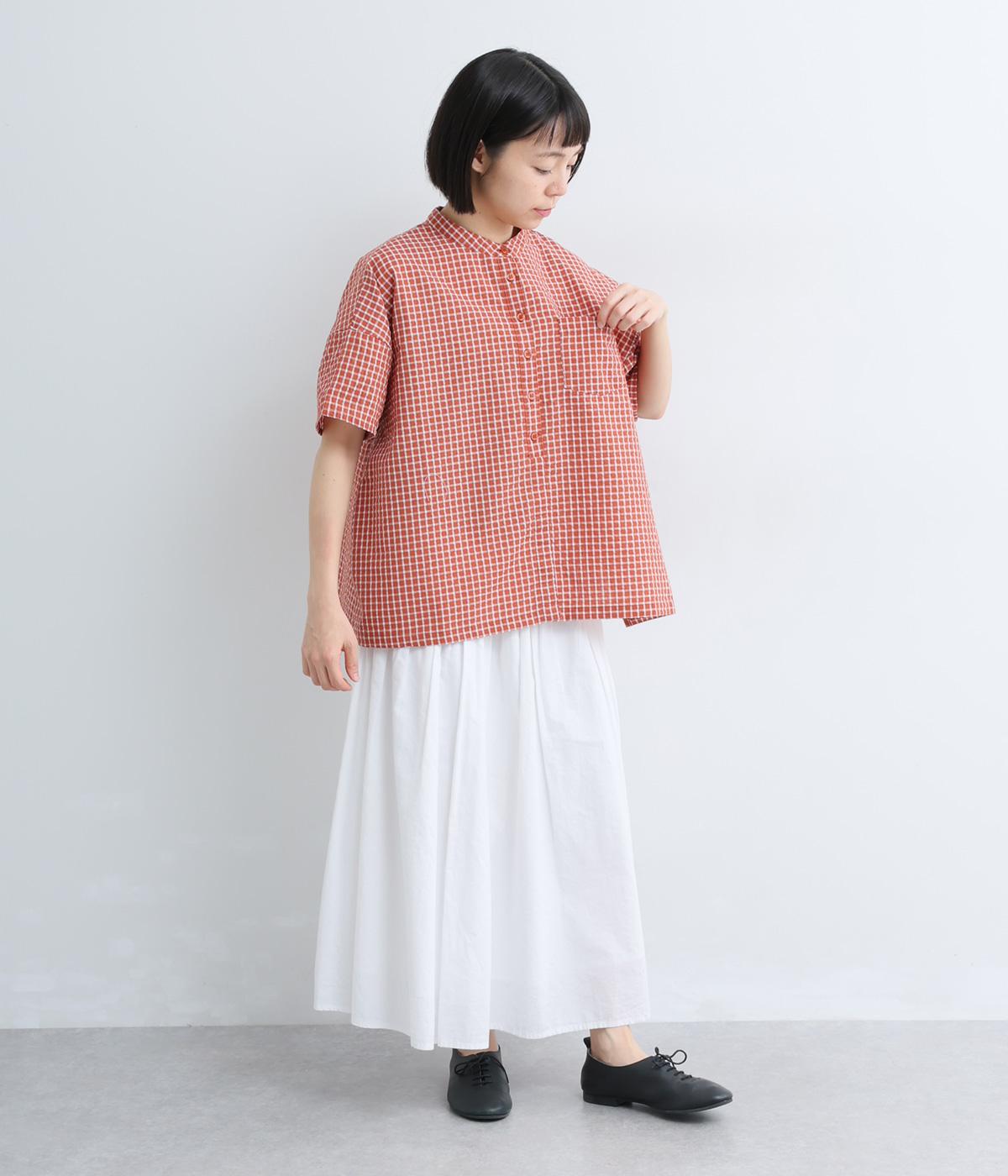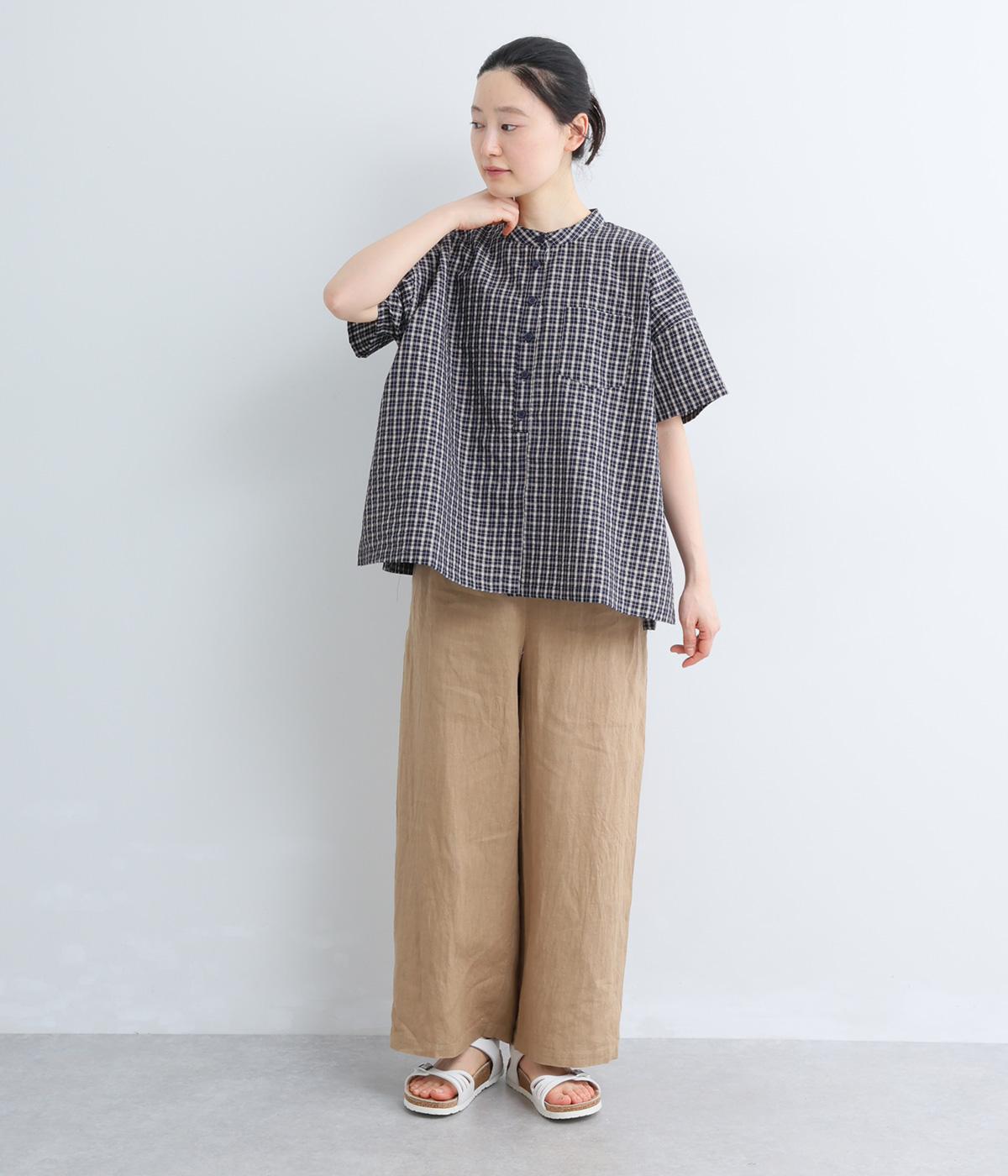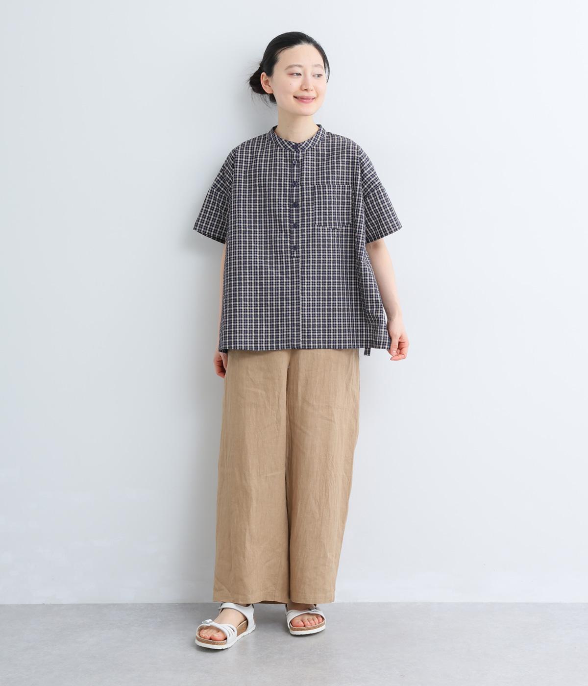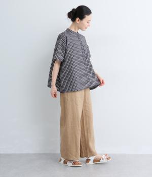 コットンリネン 刺繍スタンドカラーブラウス