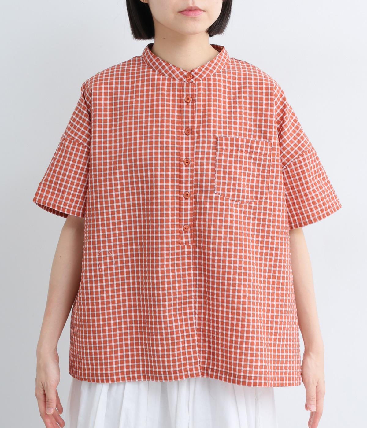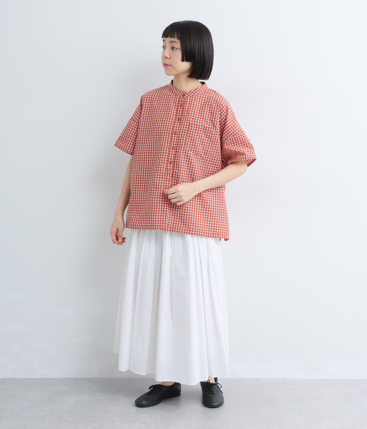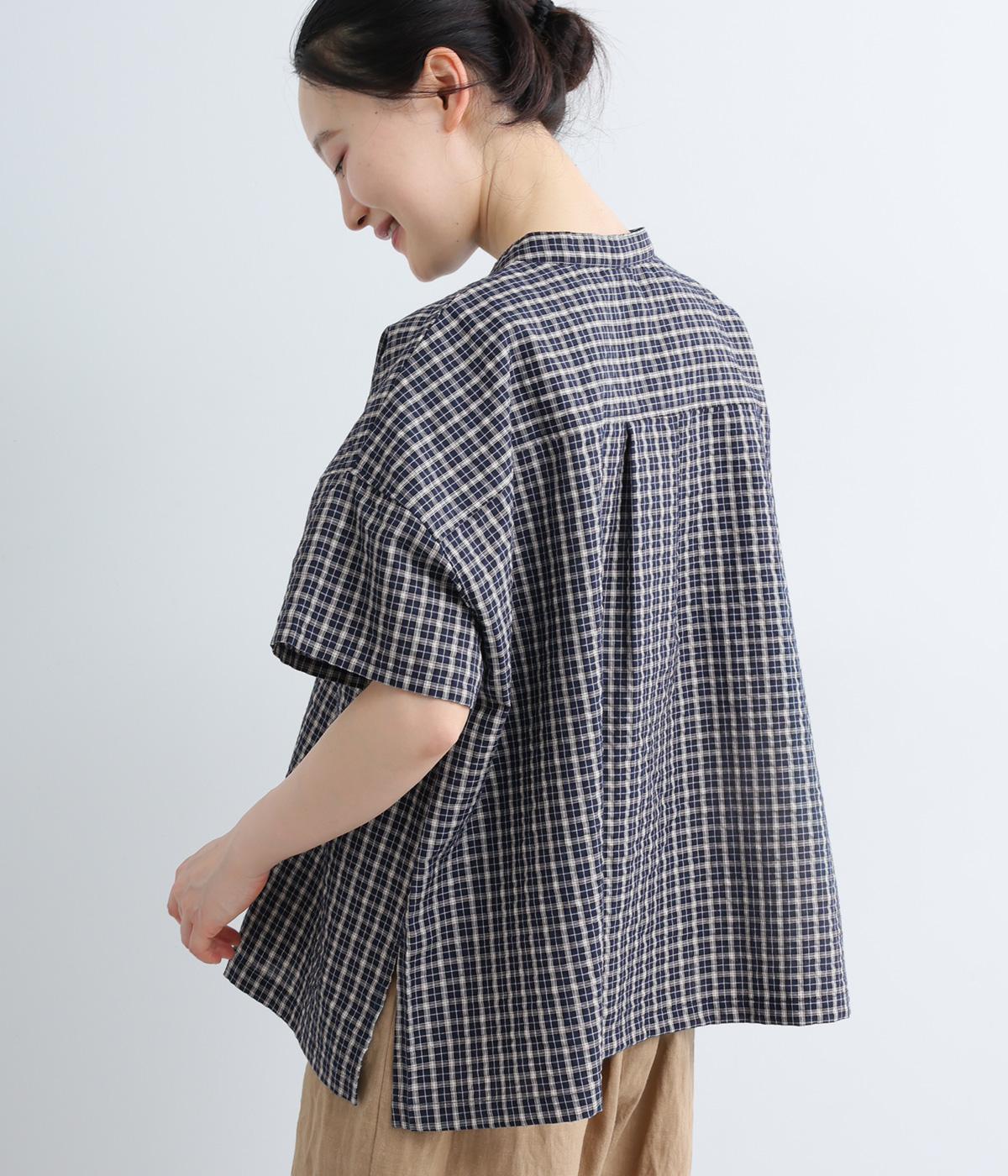 コットンリネン 刺繍スタンドカラーブラウス
