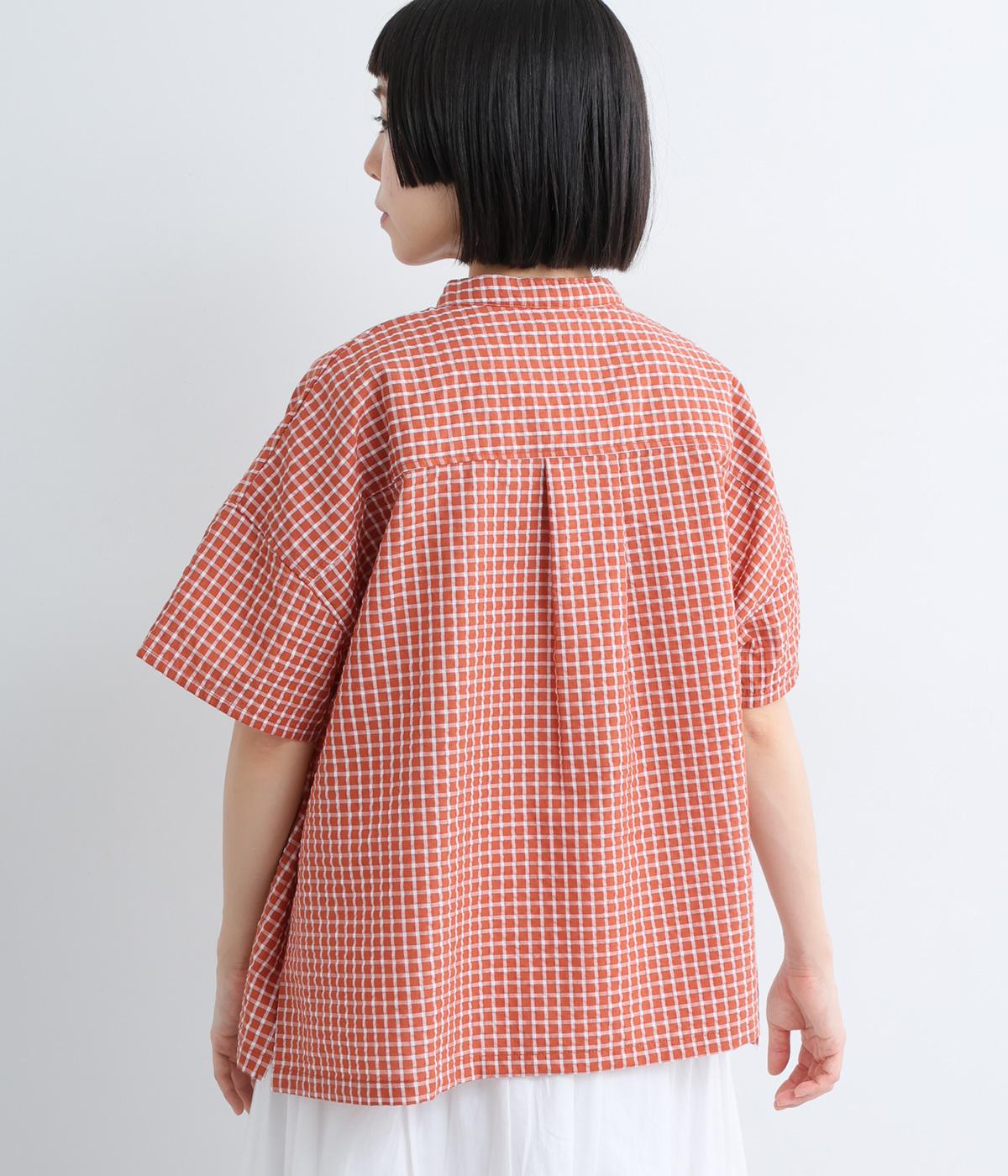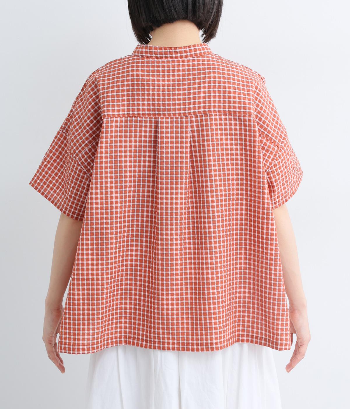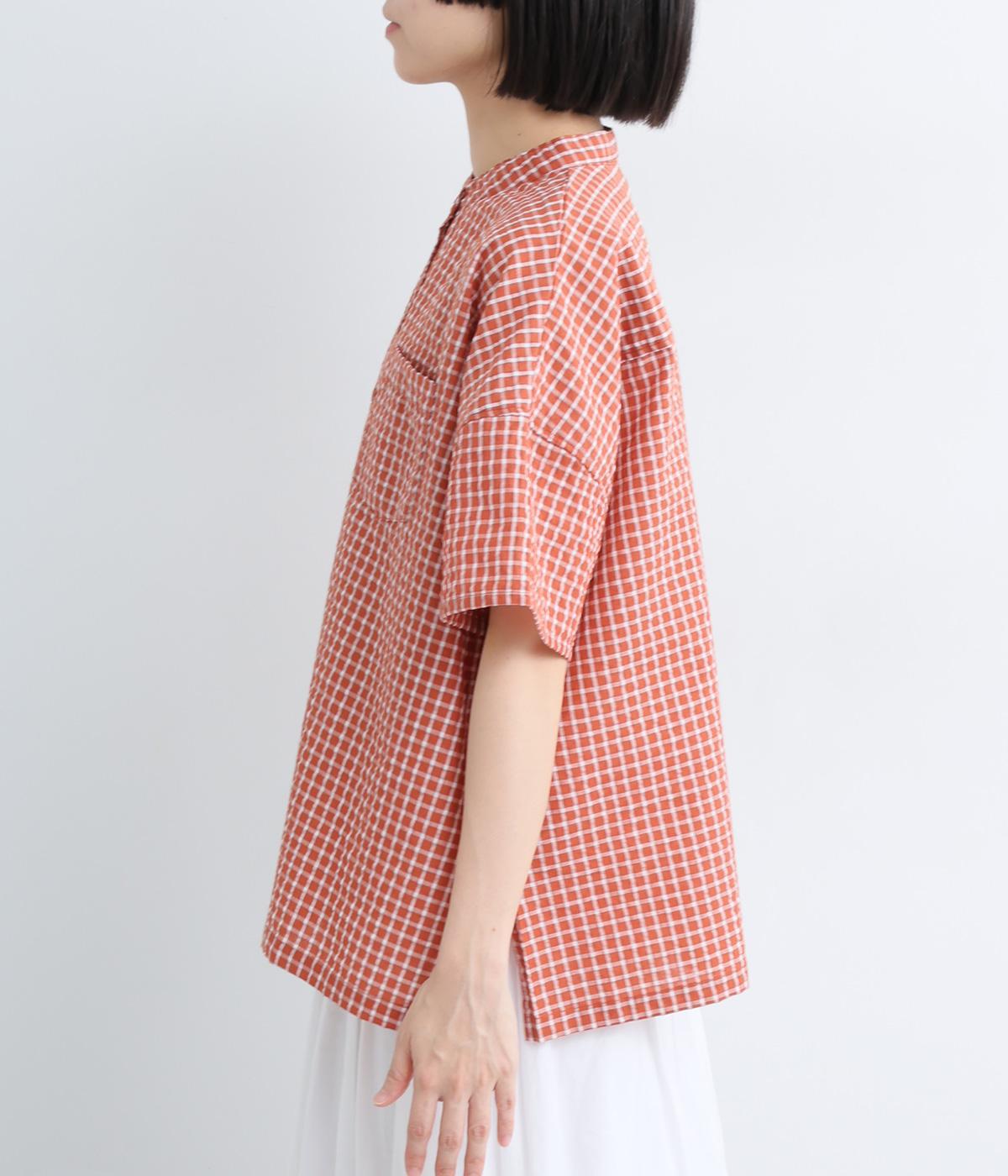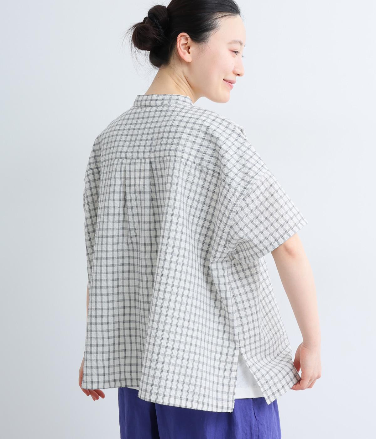 コットンリネン 刺繍スタンドカラーブラウス