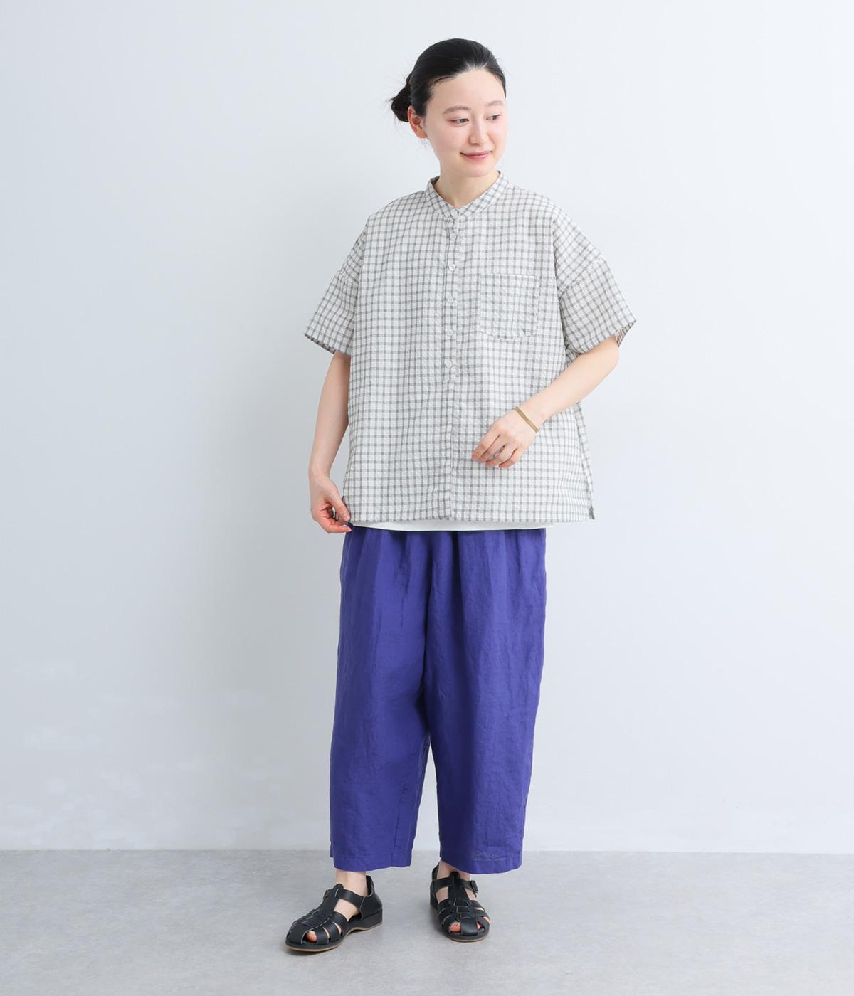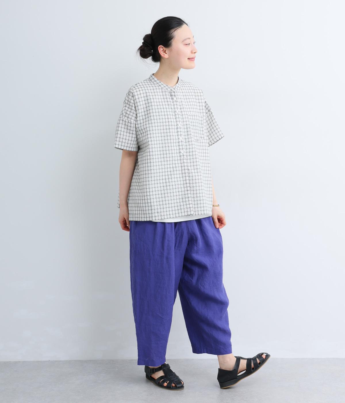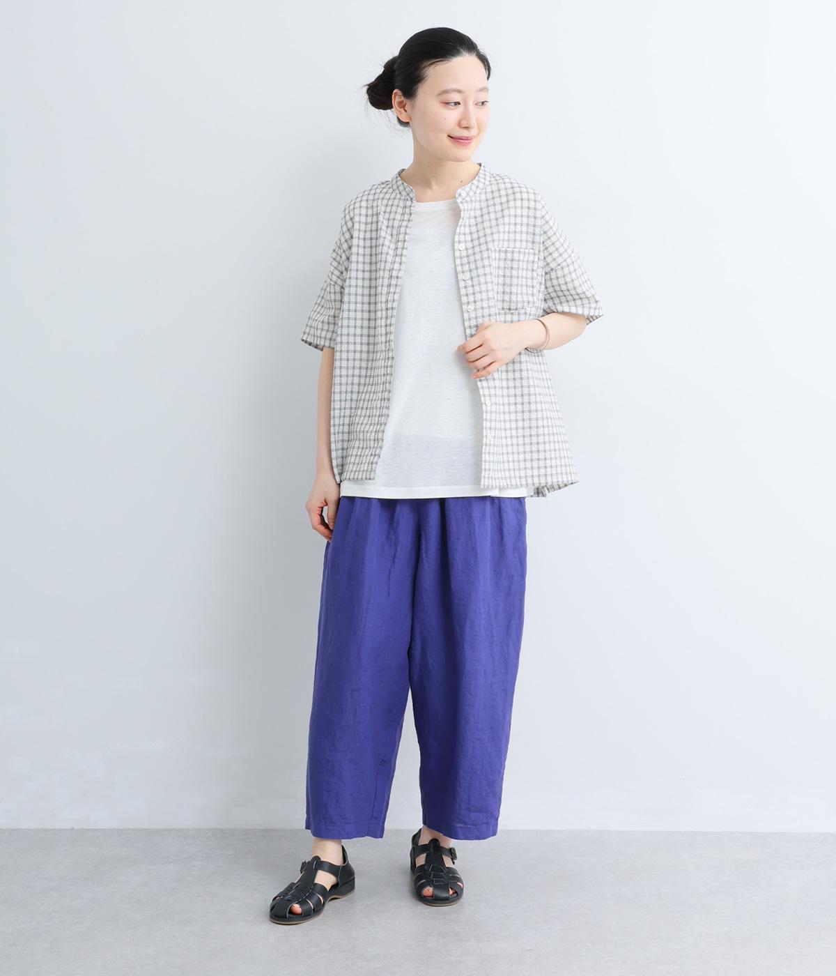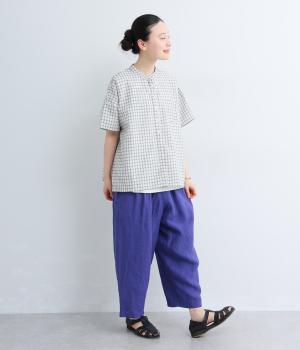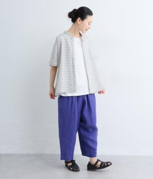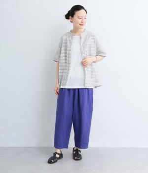 【cloudnine pure】先染めリネン柄アソート 8分丈ゆるバルーンパンツ(パープル)