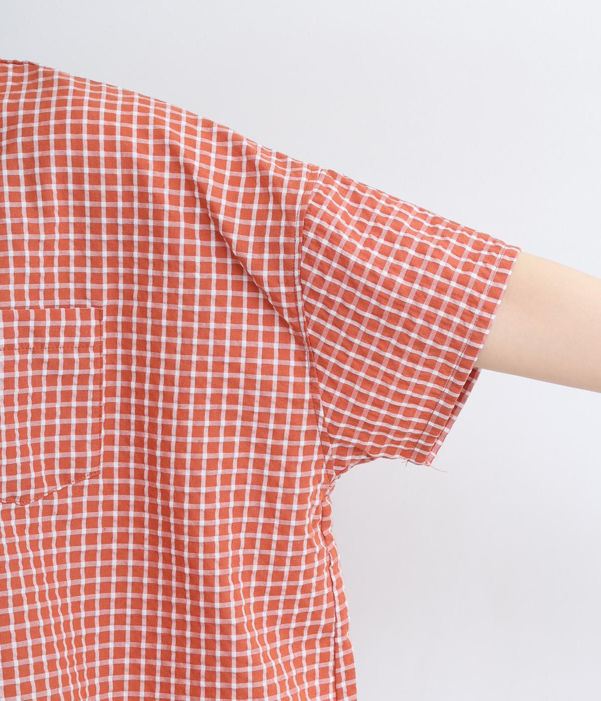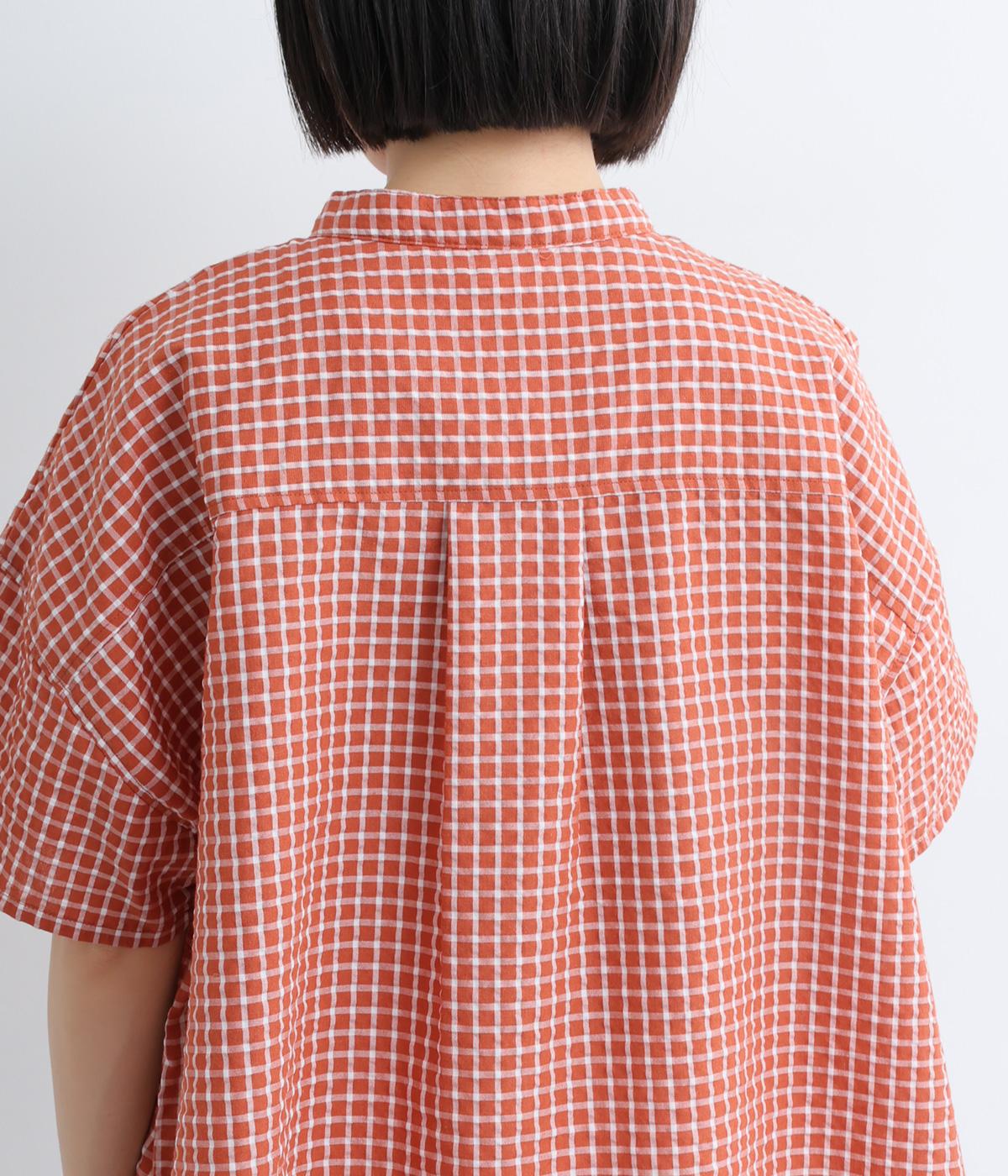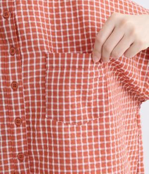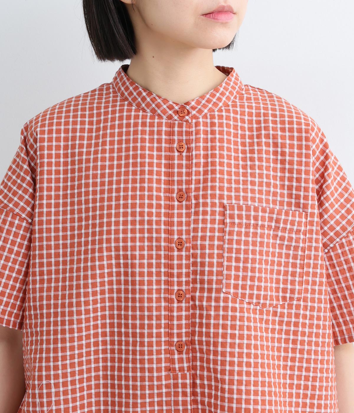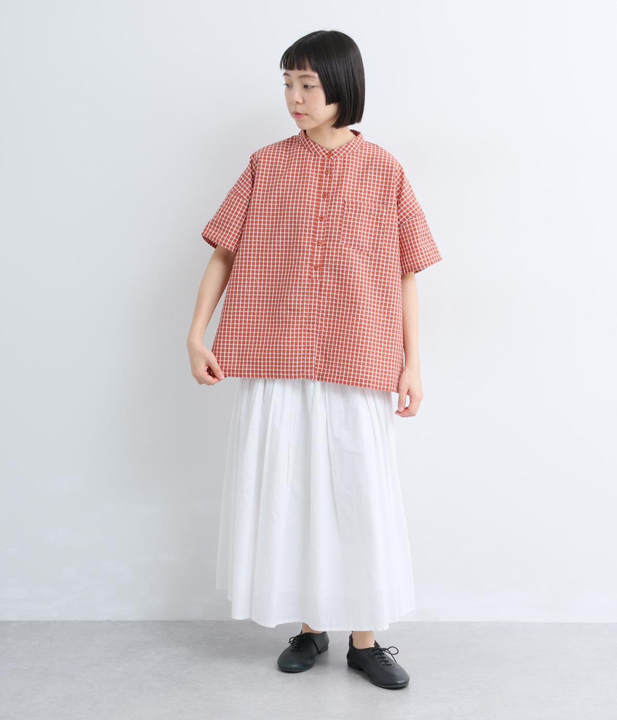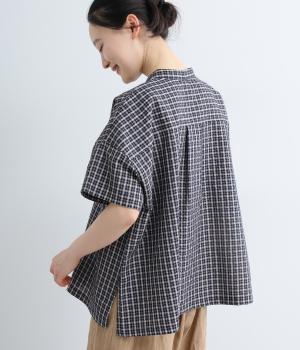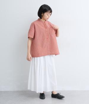 先染めコットン裾ゴム入り前あきブラウス