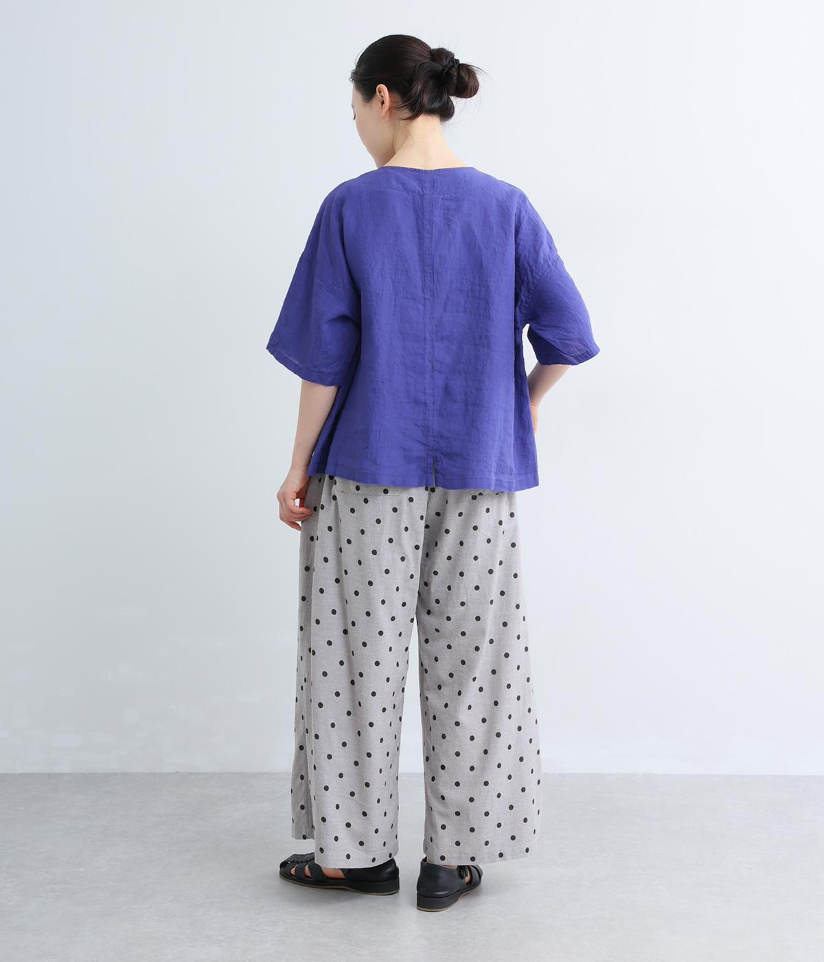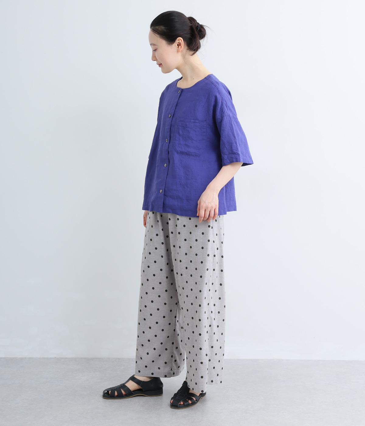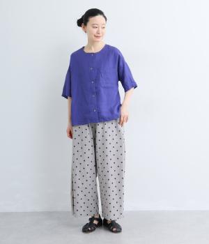 【cloudnine pure】先染めリネン柄アソート クルーネック前開きブラウス(パープル)