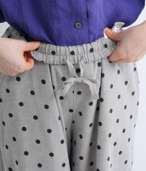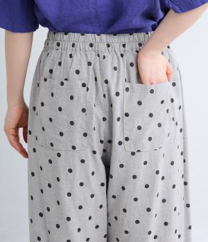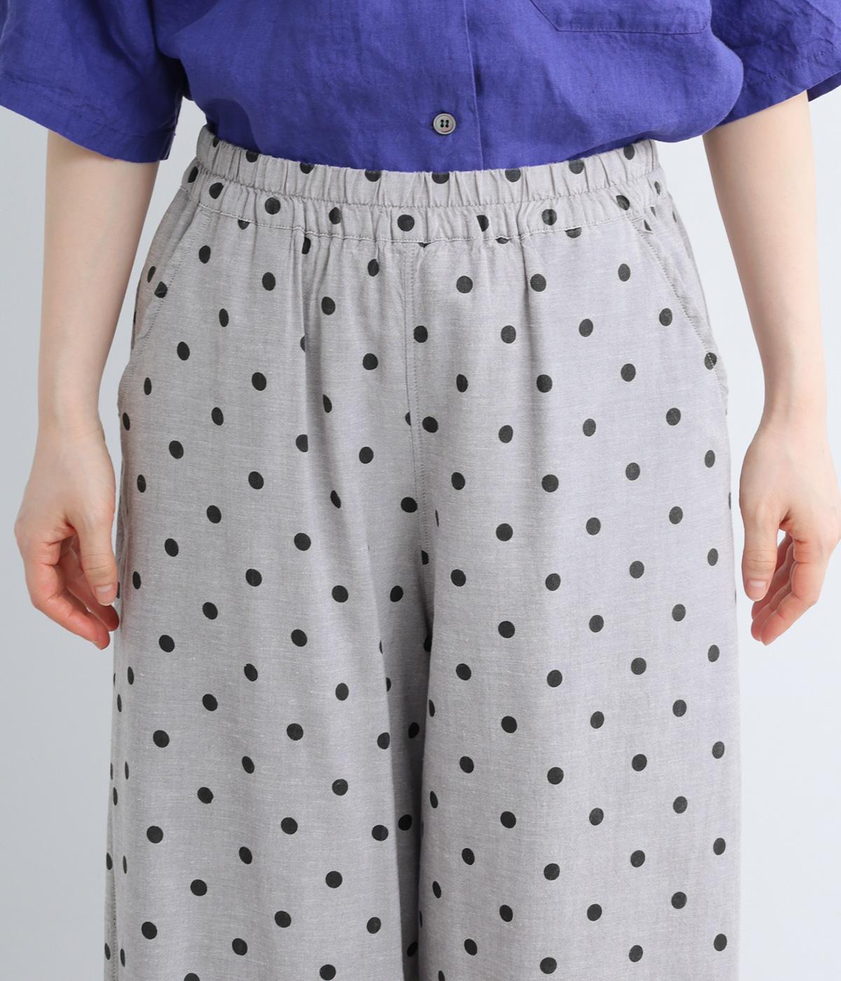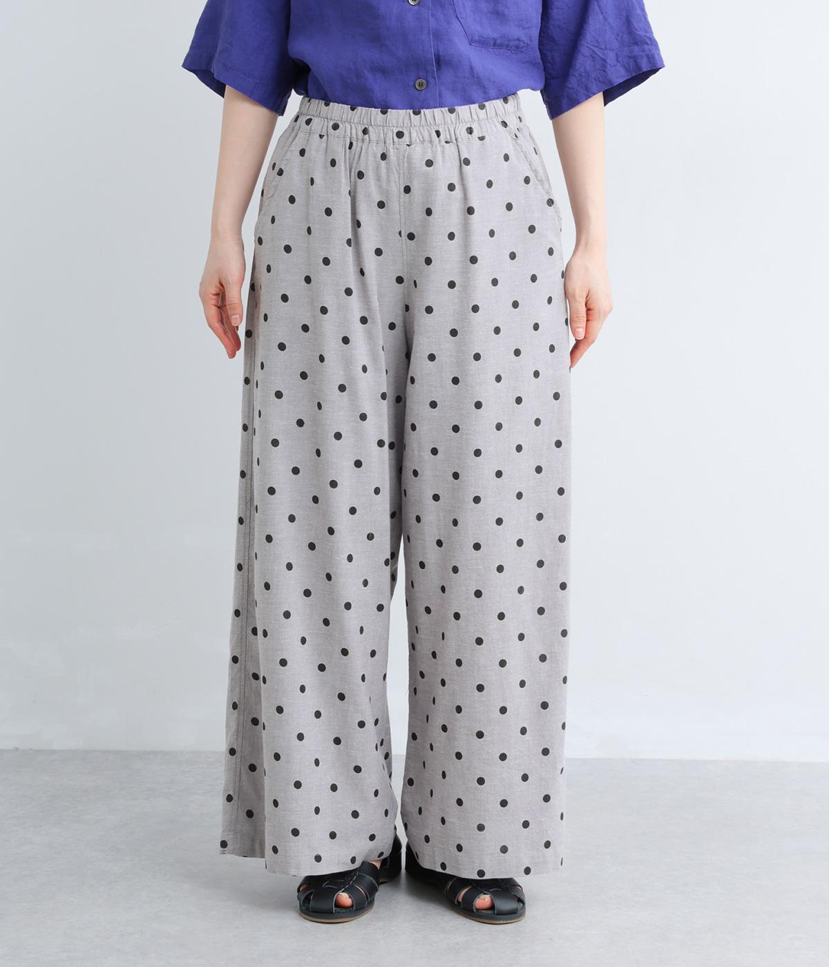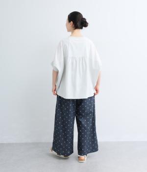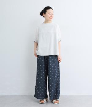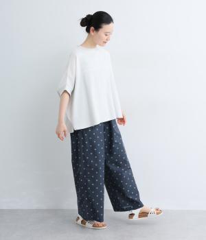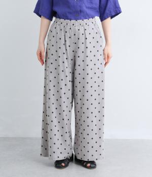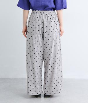 コットンリネンスカラップ刺繍9分丈ワイドパンツ