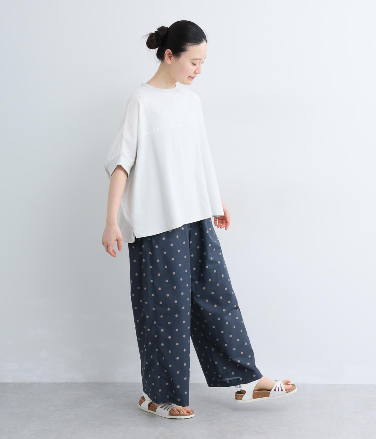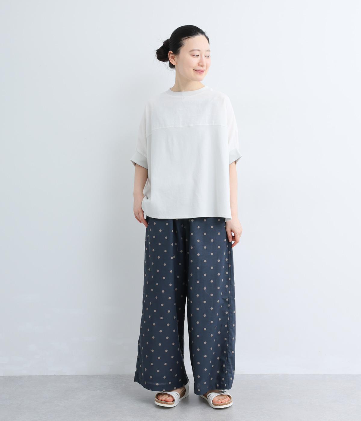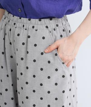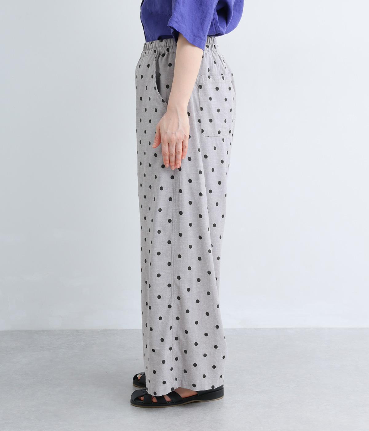 コットンリネンスカラップ刺繍9分丈ワイドパンツ