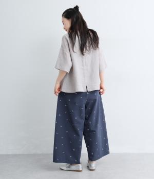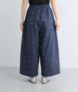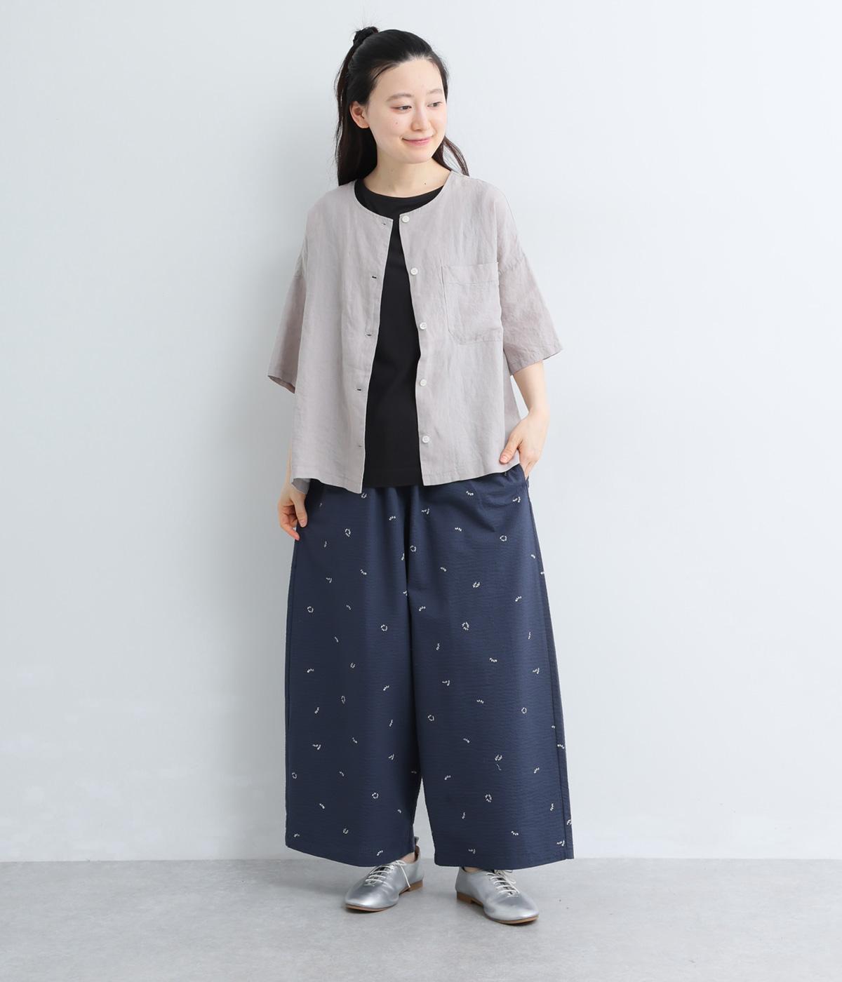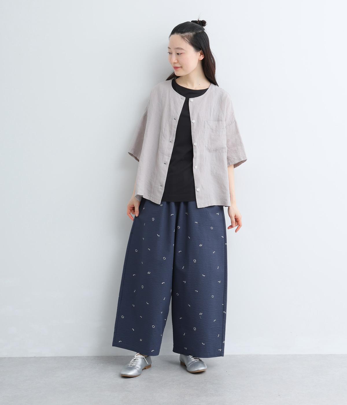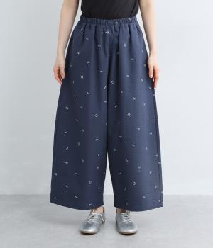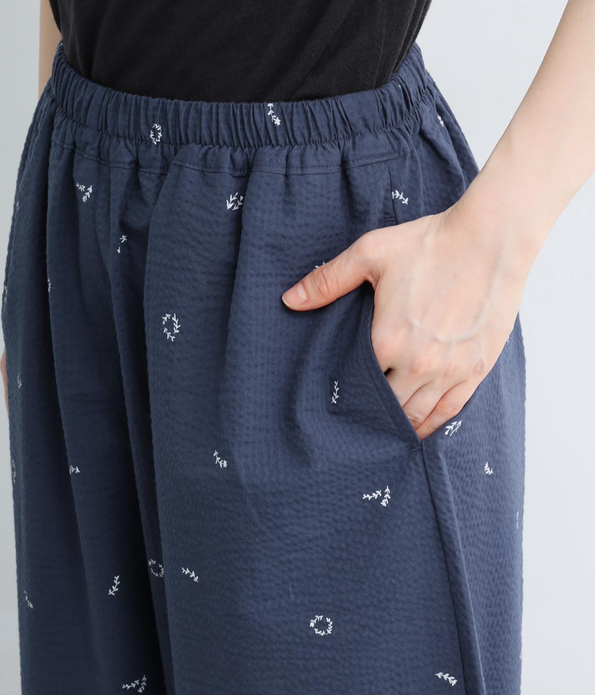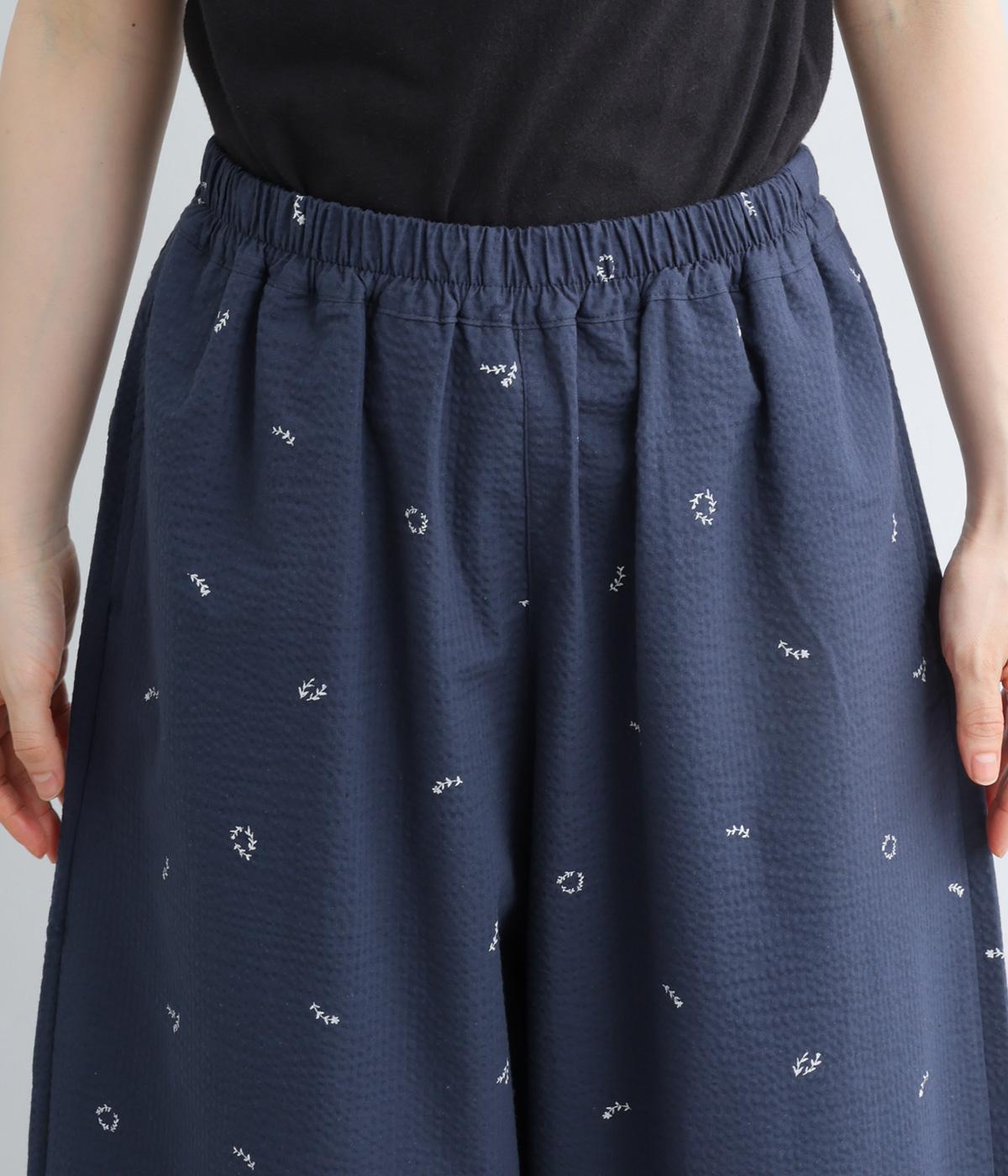 コットンリネンスカラップ刺繍9分丈ワイドパンツ