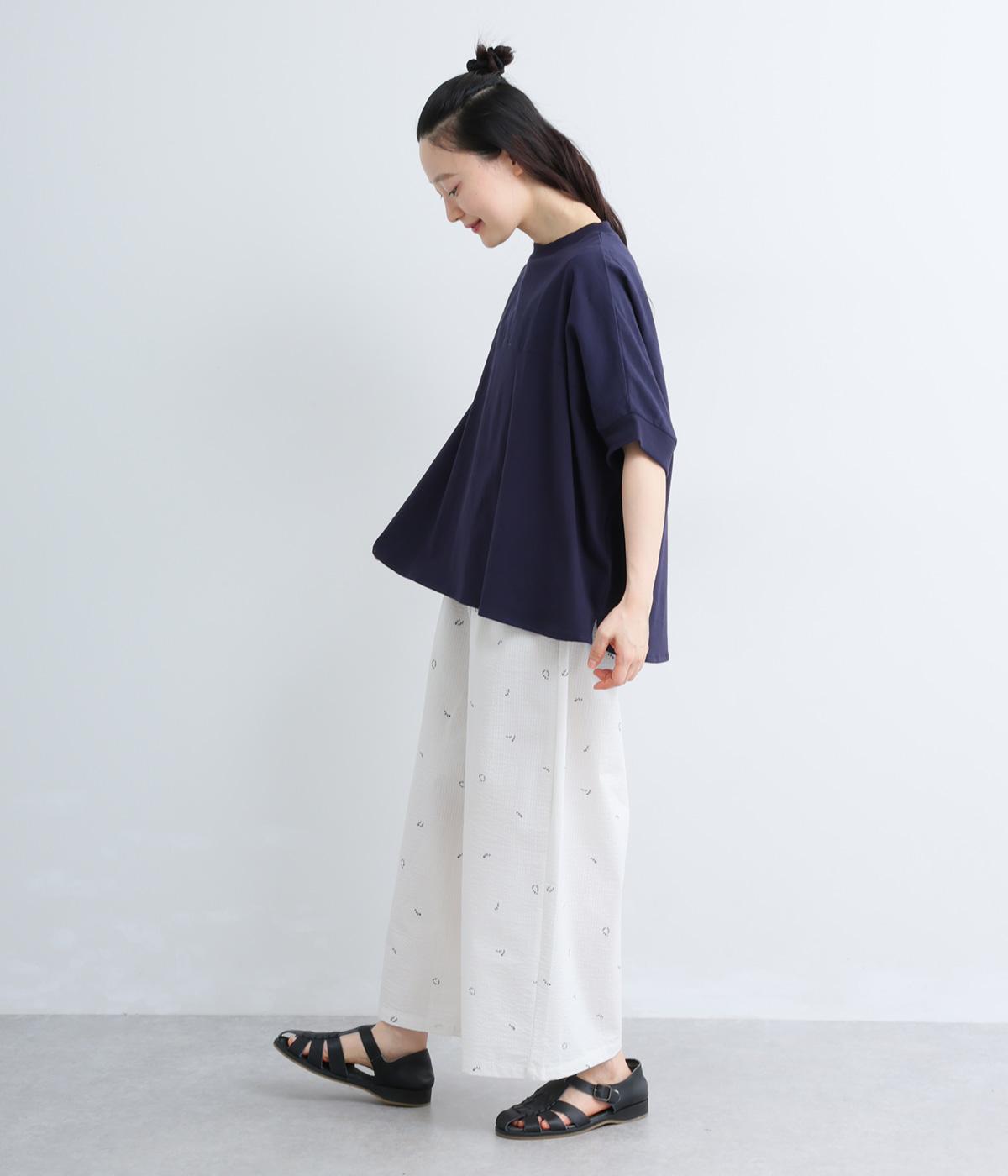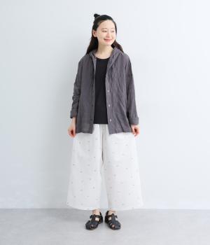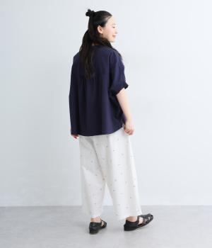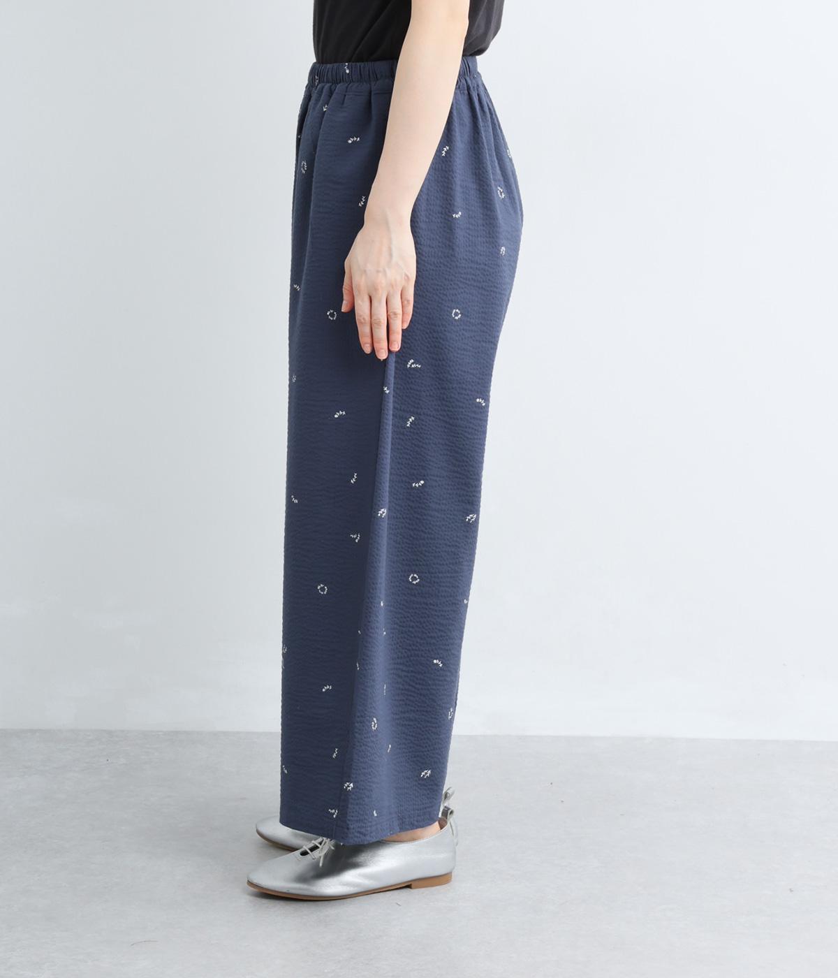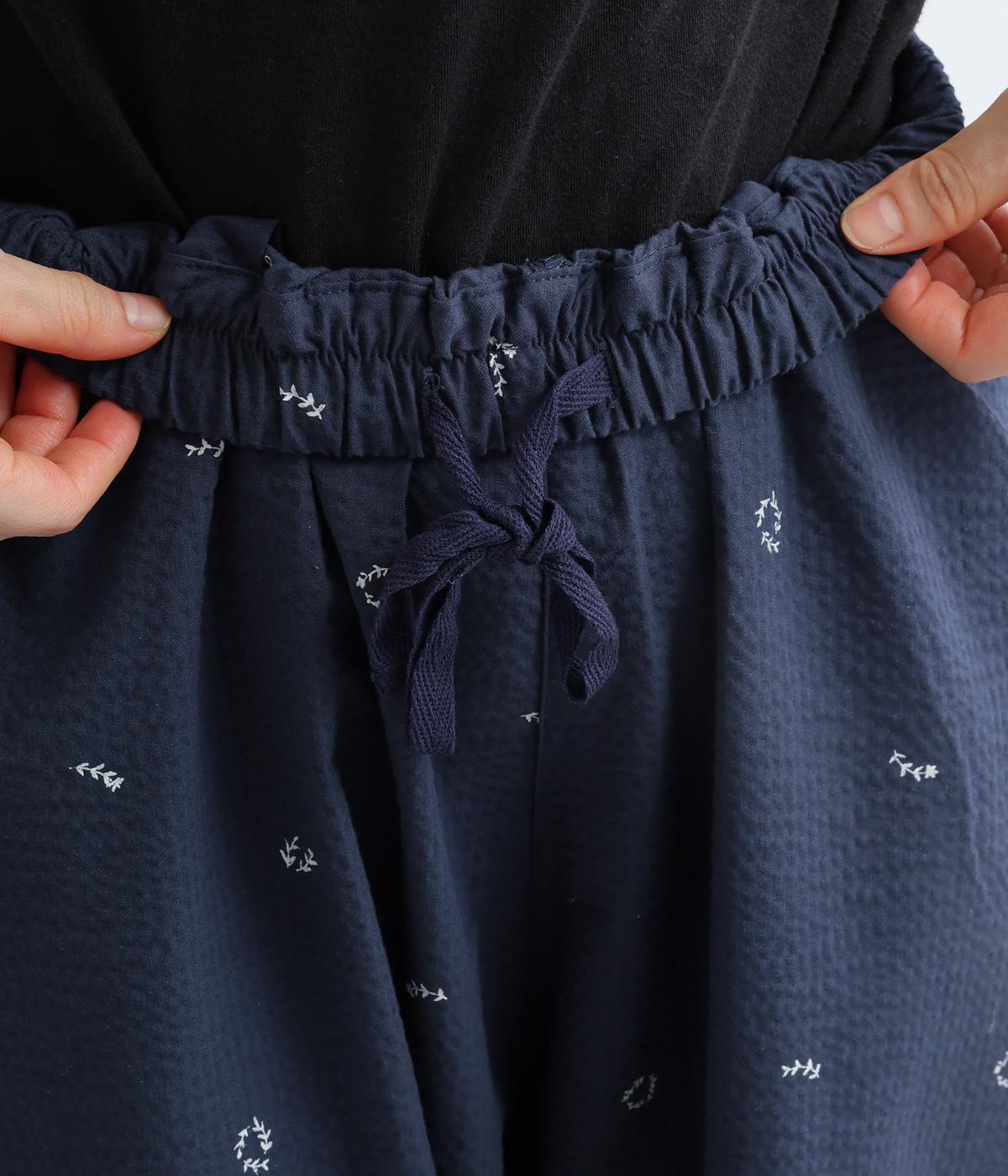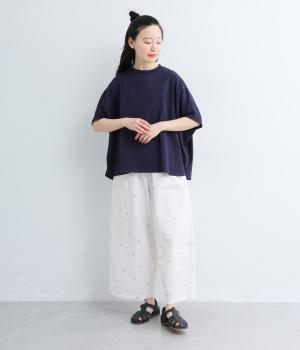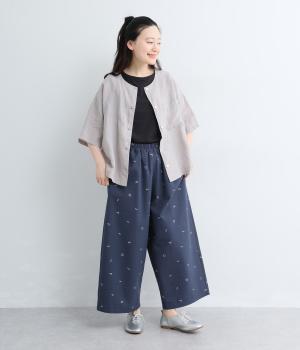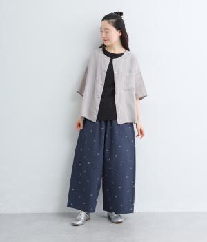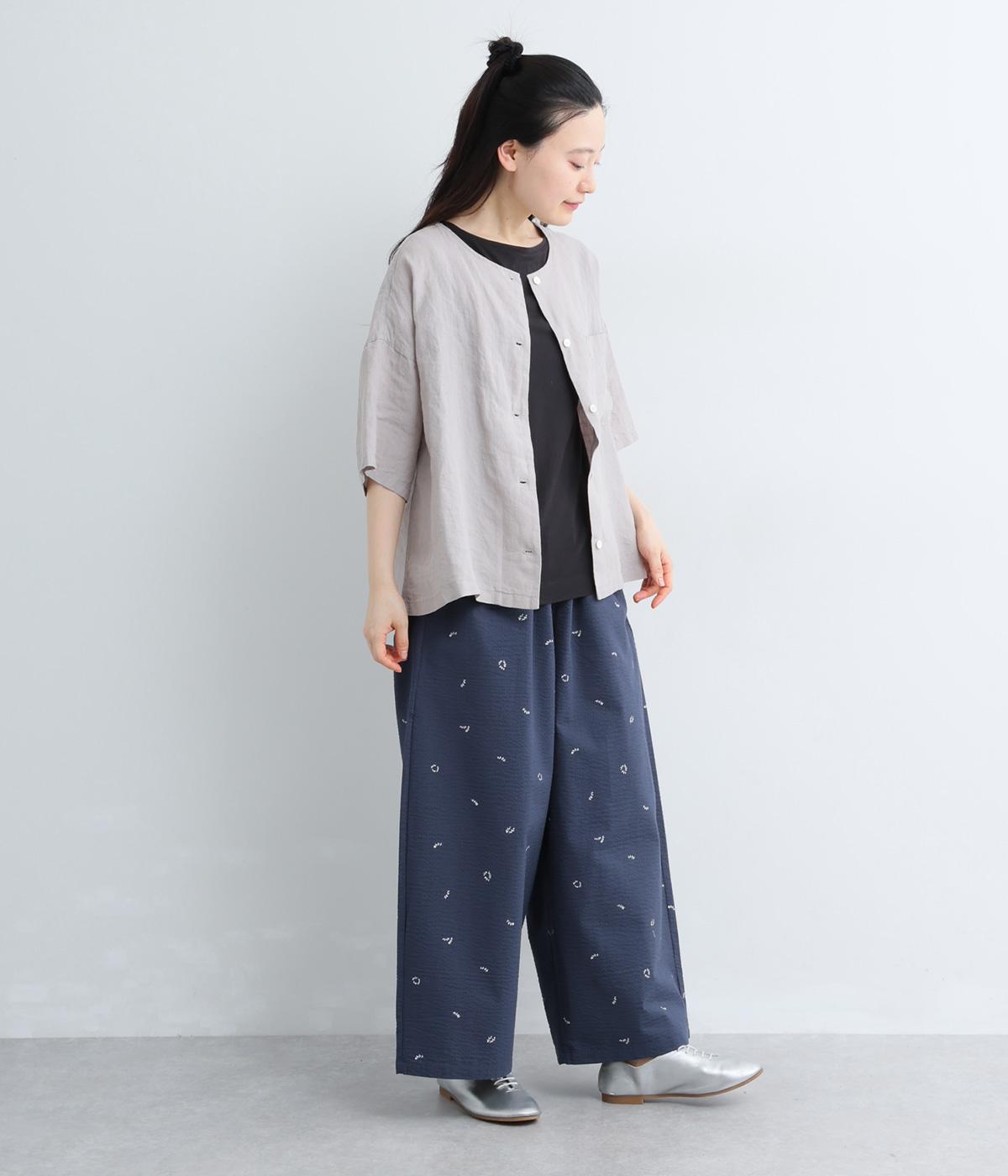 コットンリネンスカラップ刺繍9分丈ワイドパンツ