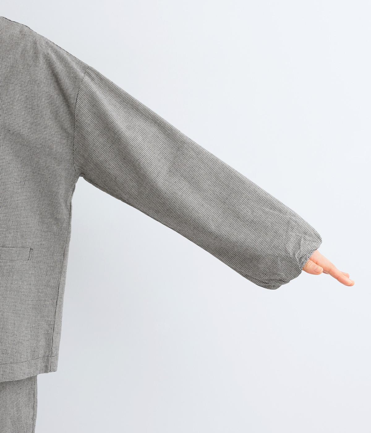 自然なシワ感が味わい深く、ナチュラルな風合いが独特の雰囲気を生むコットンリネン生地を使用。すべりのいい裏地つきで袖の通りもスムーズです。