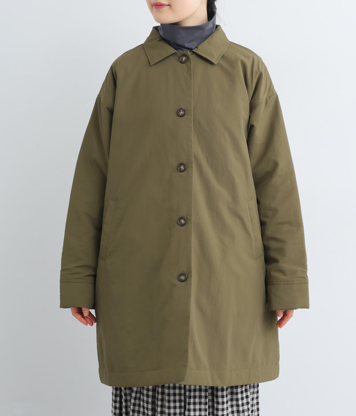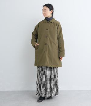 中綿入りで防寒力を高めながらもすっきりと羽織れるミドル丈コート。シンプルなデザインでさまざまなコーディネートに合わせやすく、ボタンのあけ具合で襟元の印象も変えられます。