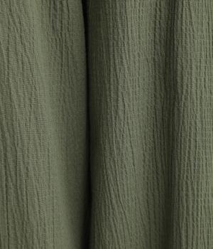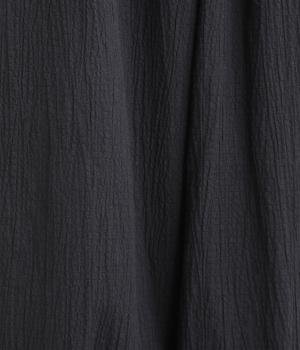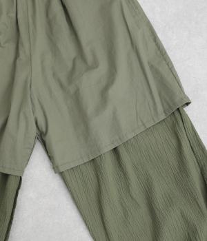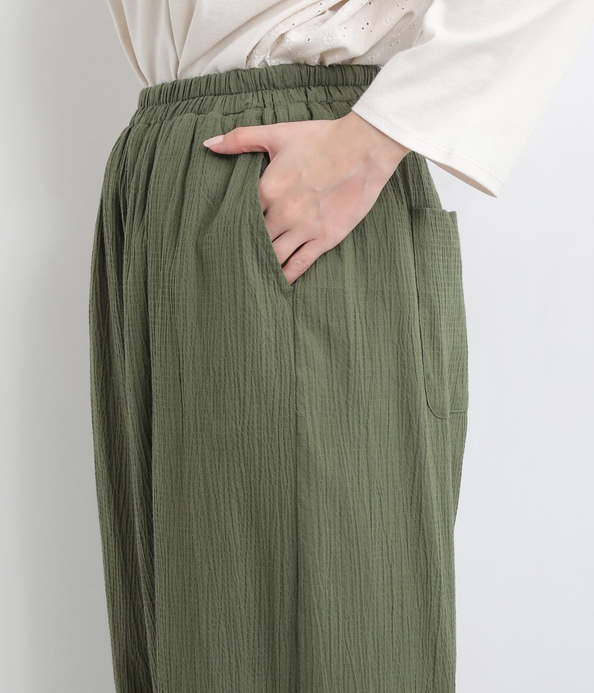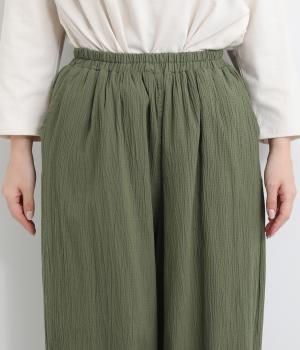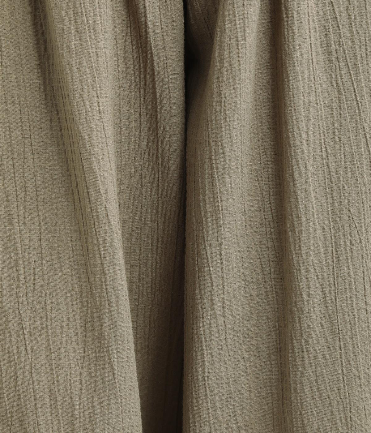 軽やかなポリウレタン素材にシワ加工をほどこして、ナチュラルな風合いに仕上げました。ひざ下までコットンの裏地をつけているため、透け感が気になりにくいのも嬉しいポイントです。