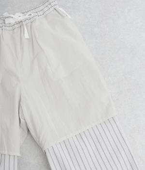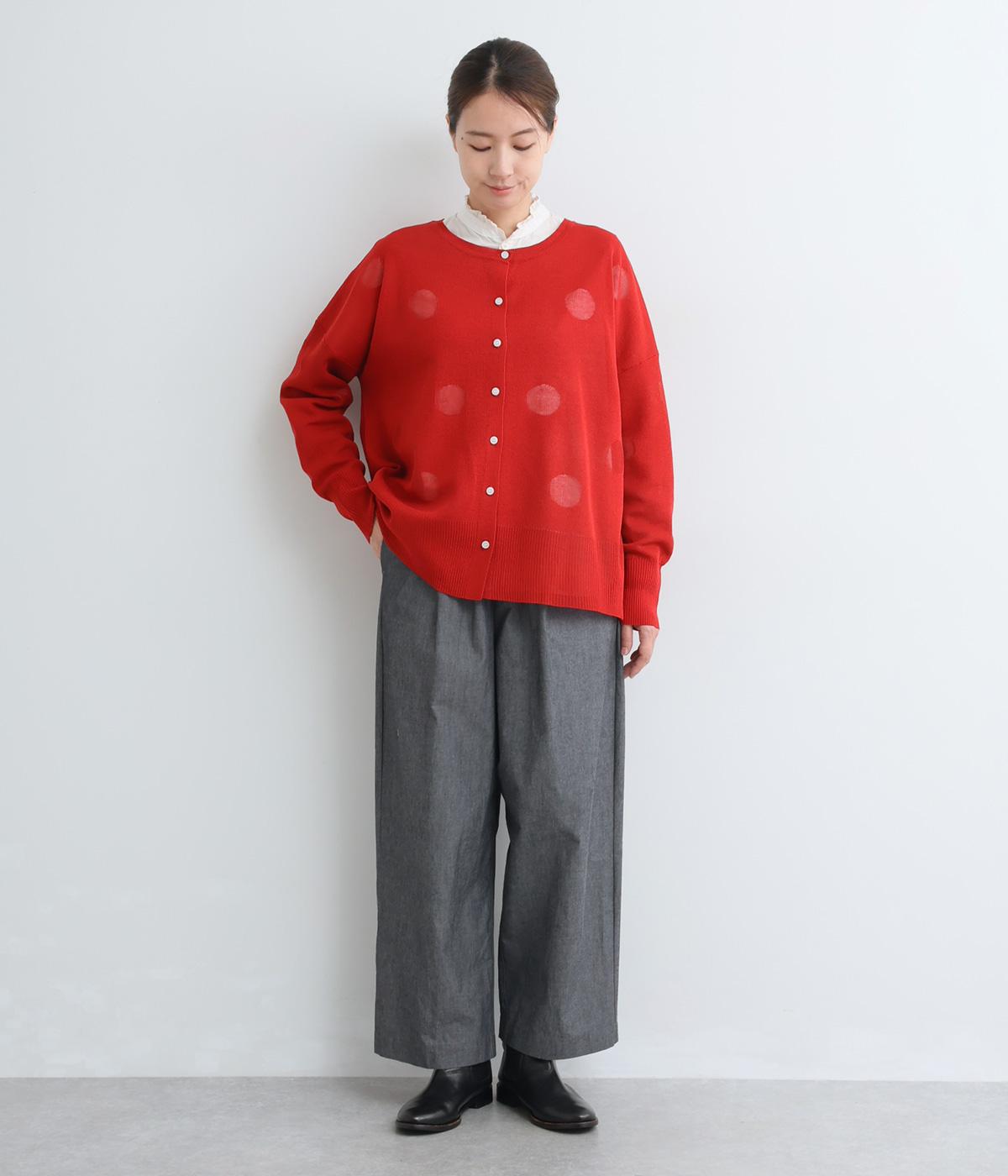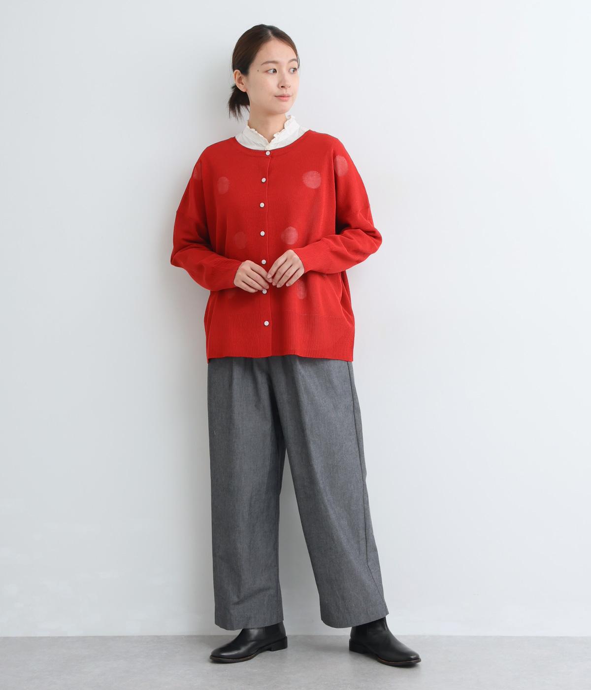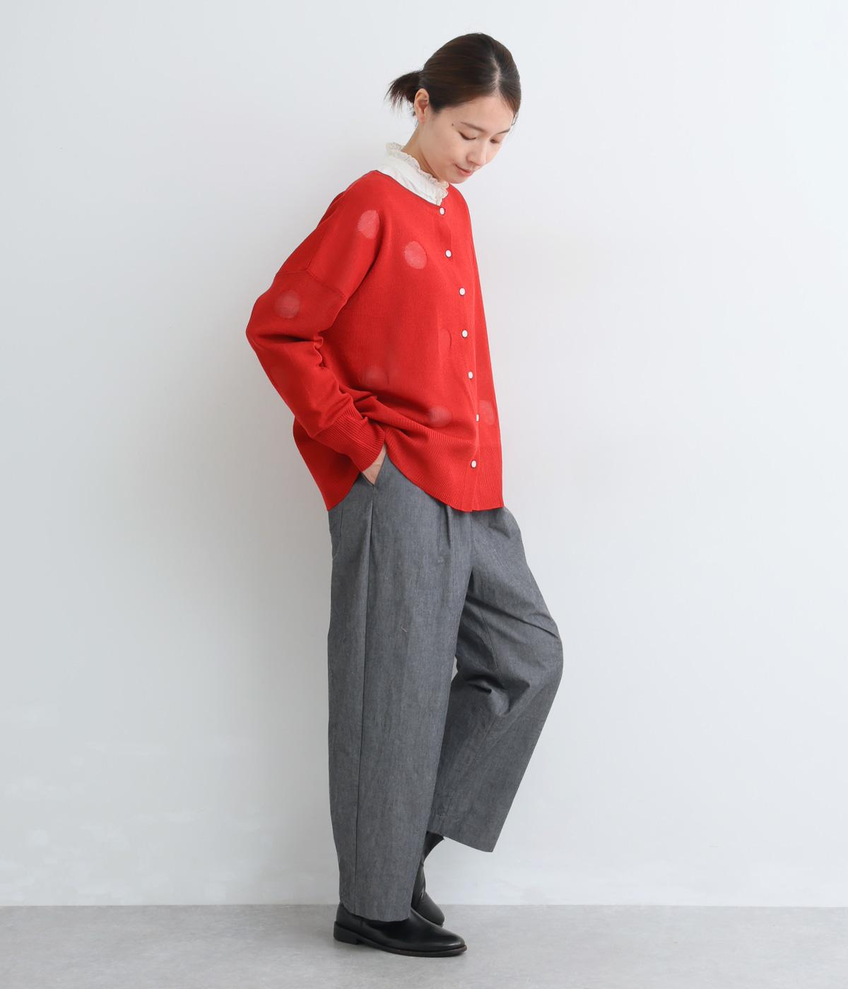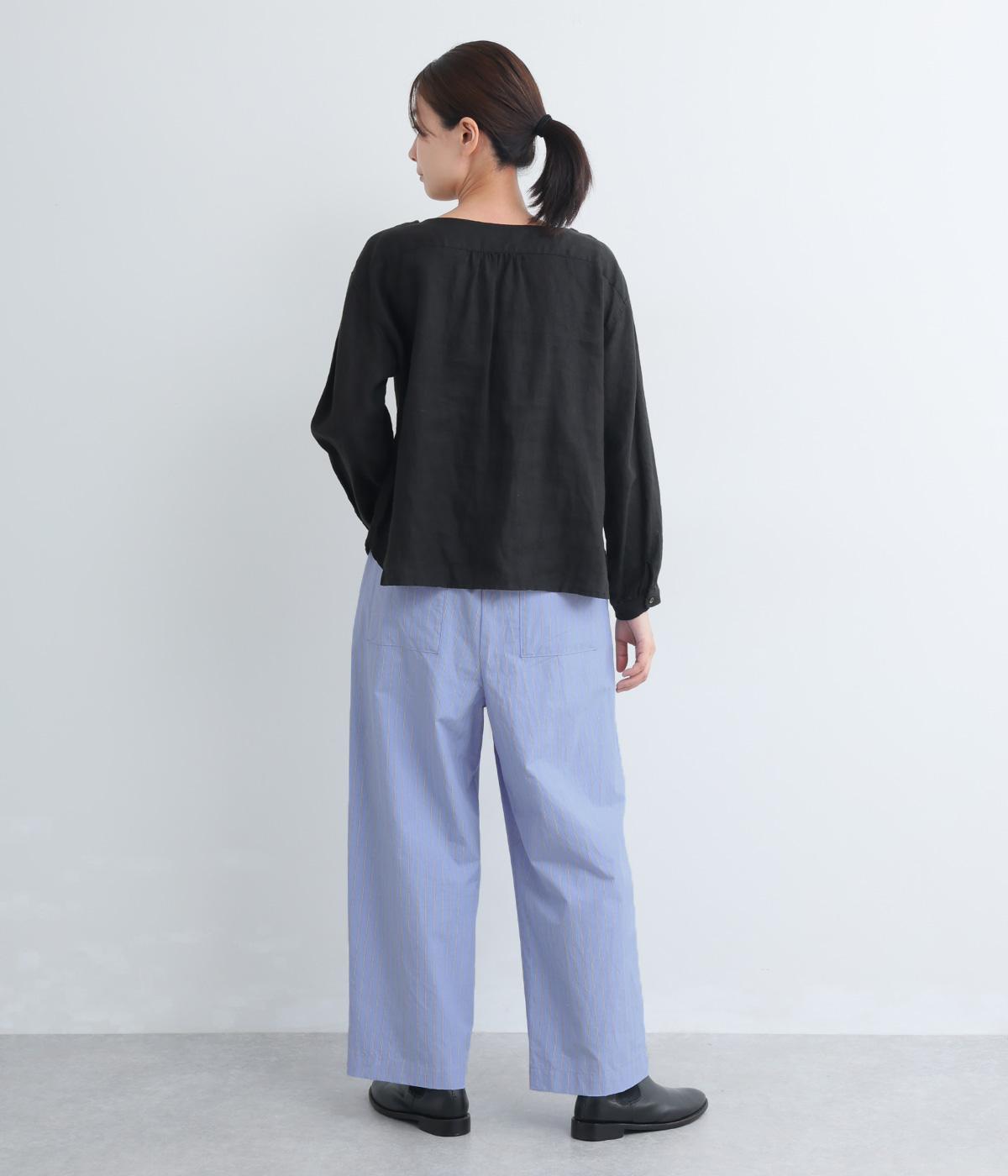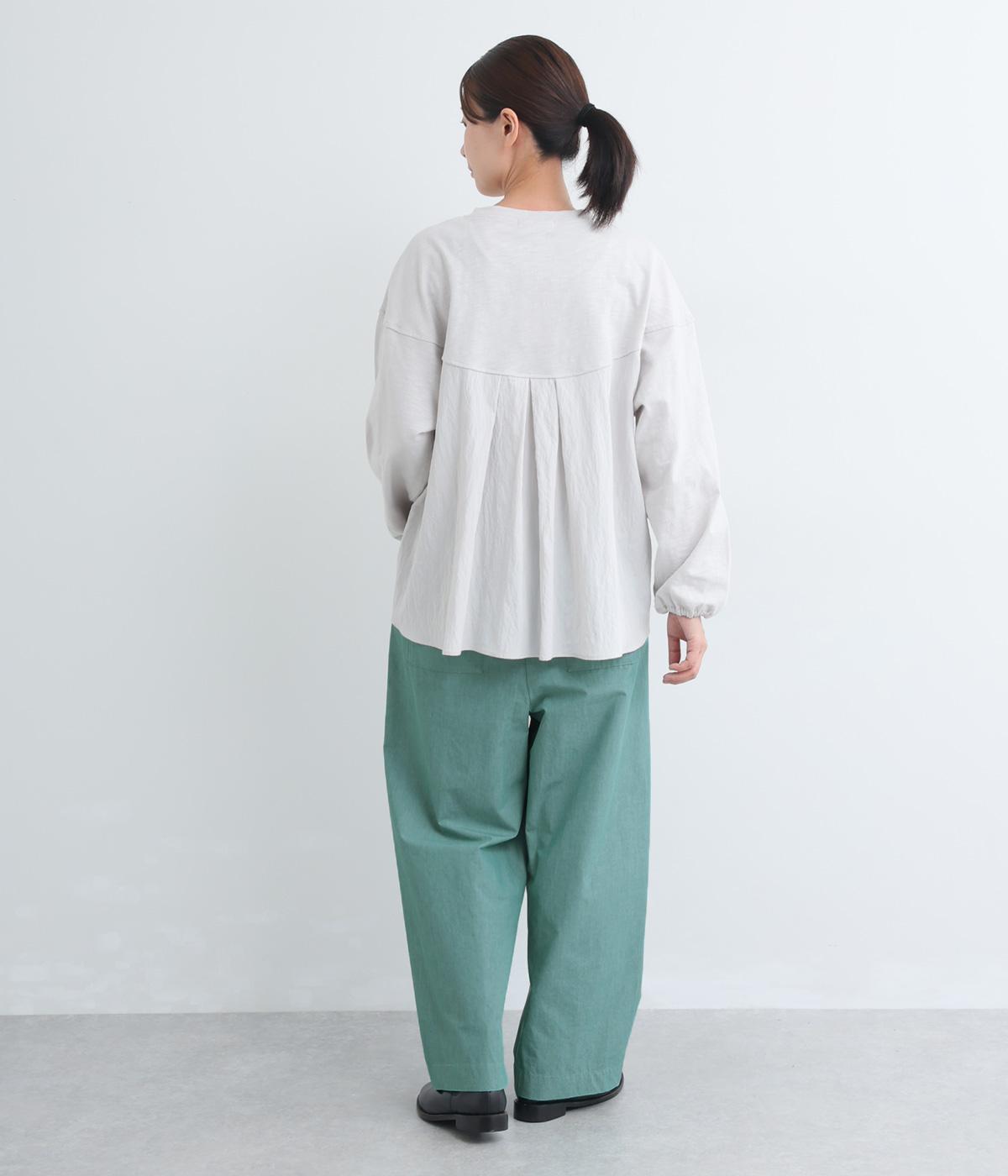 タックで適度なゆとりを確保しつつ、すっきりとしたストレートラインに仕上げました。ルーズすぎない絶妙なシルエットで、シンプルな合わせでも手抜きに見えない優秀アイテム。ウエストは総ゴムではき心地が良く、内紐入りです。
