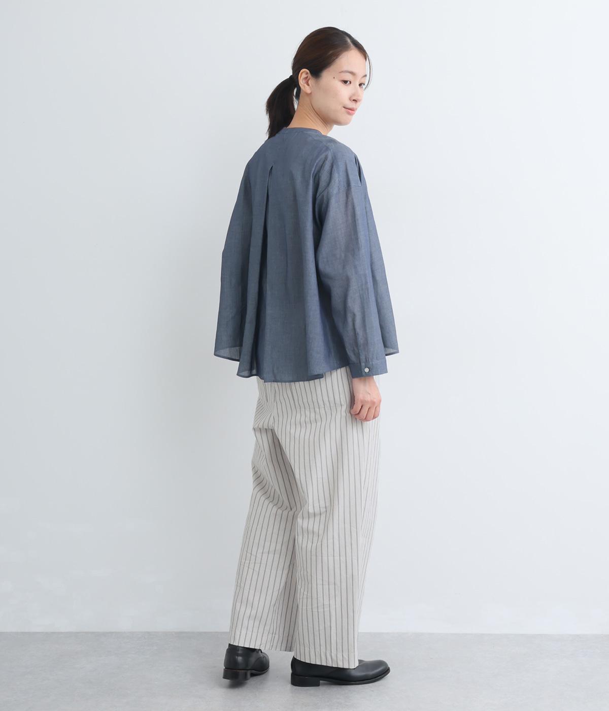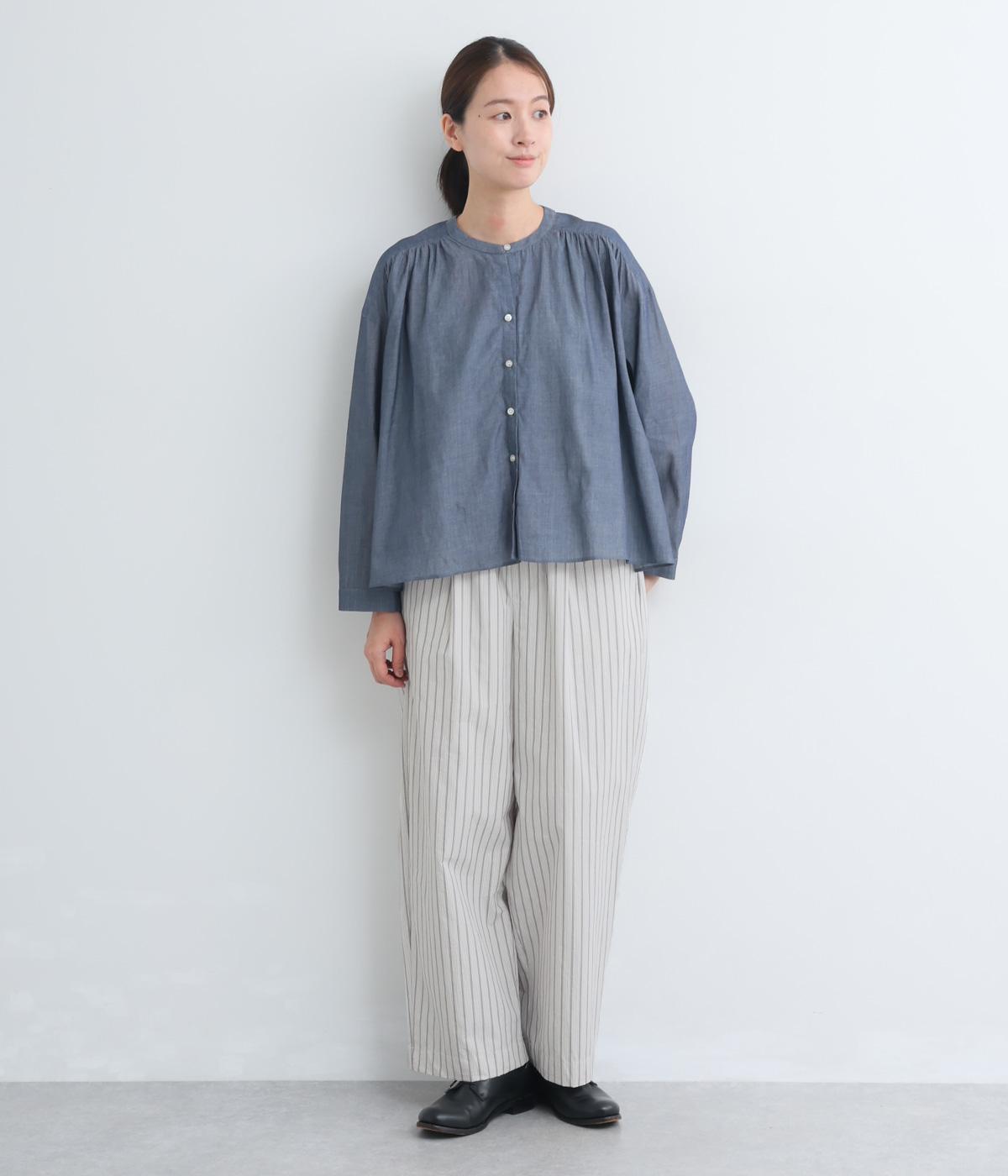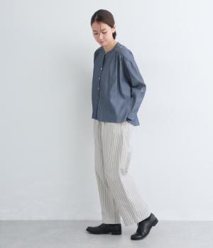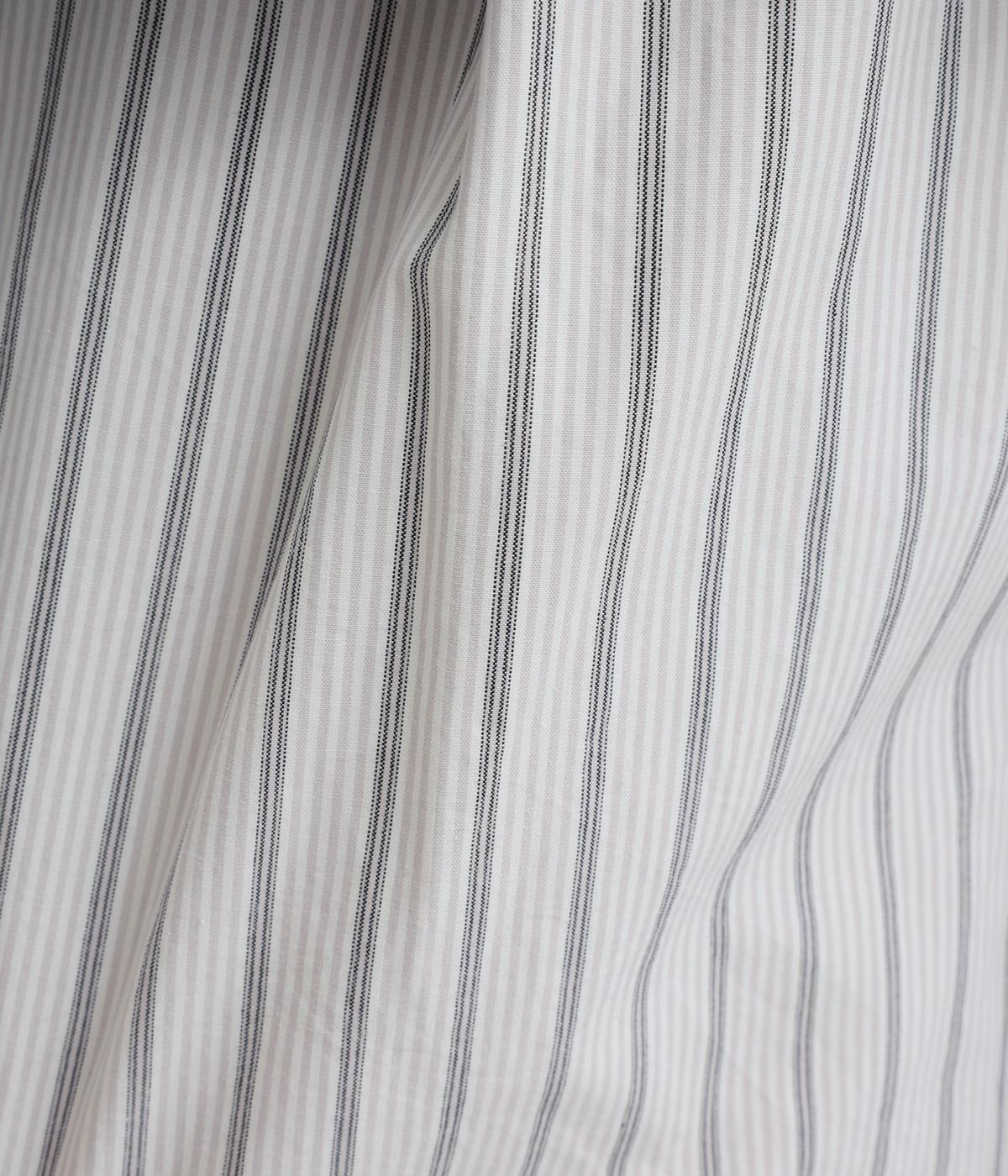 高密度で織り上げたハリ感が特徴的なタイプライターで仕立てました。軽量で耐久性にも優れた特性があり、肌触りも良くデイリーユースに向いている生地感です。