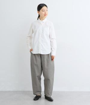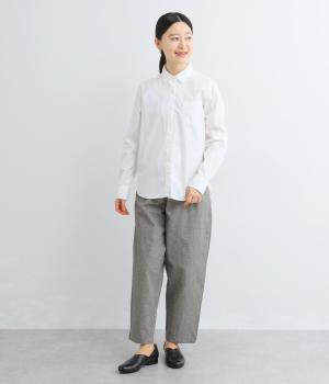 股上やワタリはゆったりと、裾に向かってすっきり仕上げたテーパードパンツ。きっちりしすぎない独特のこなれ感が漂い、シャツ合わせもラフな着こなしもサマになります。ウエストはサイドから後ろにかけてゴムを入れたイージー仕様。