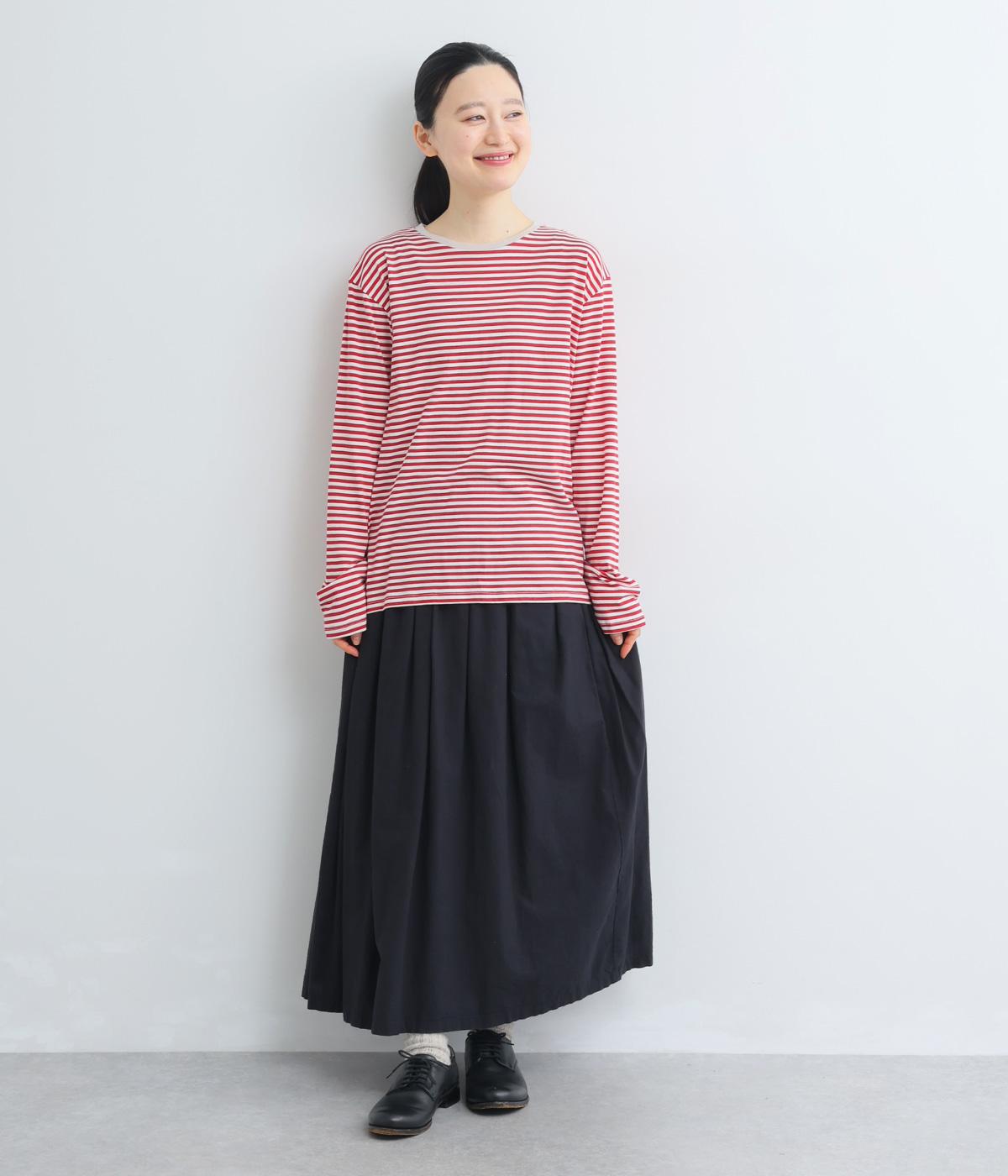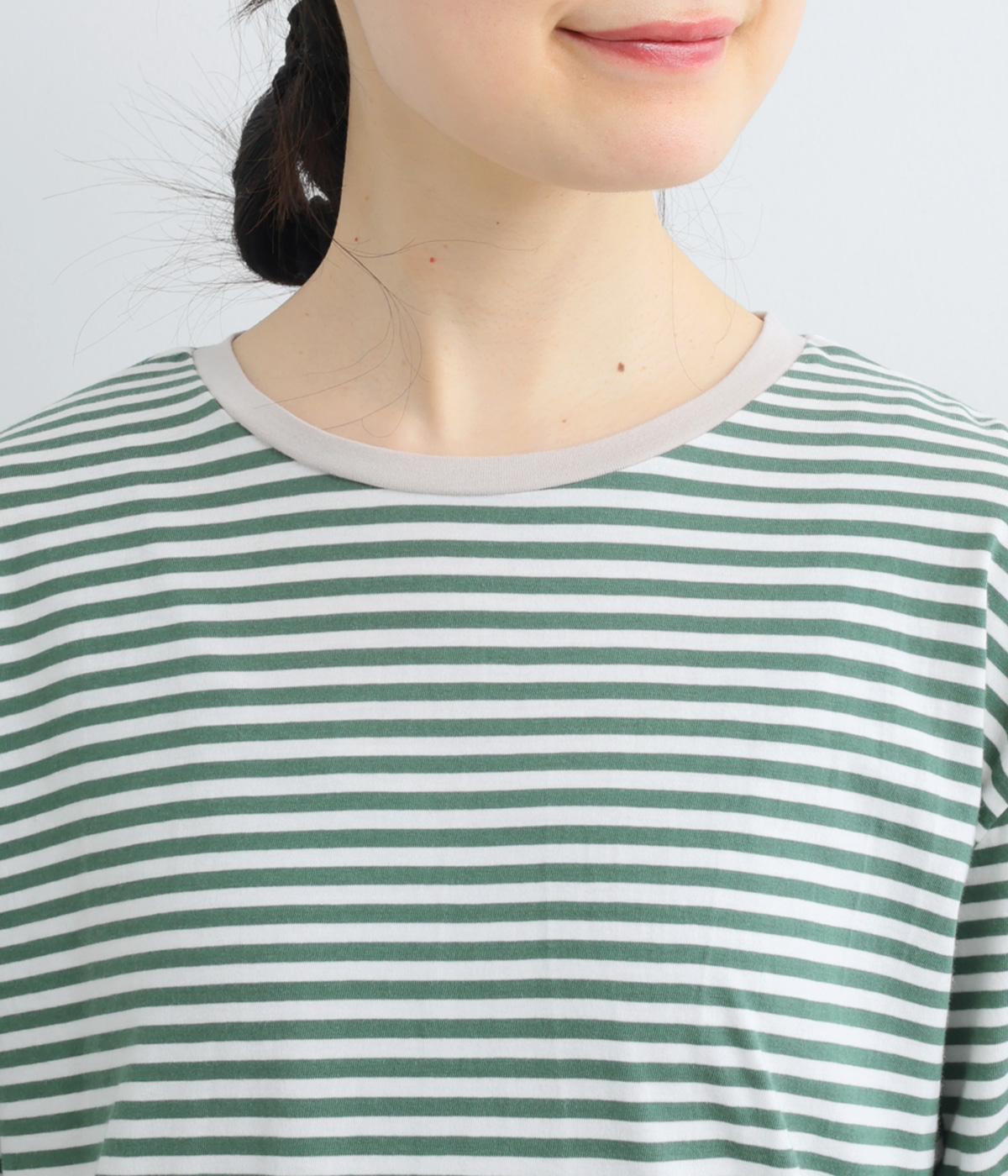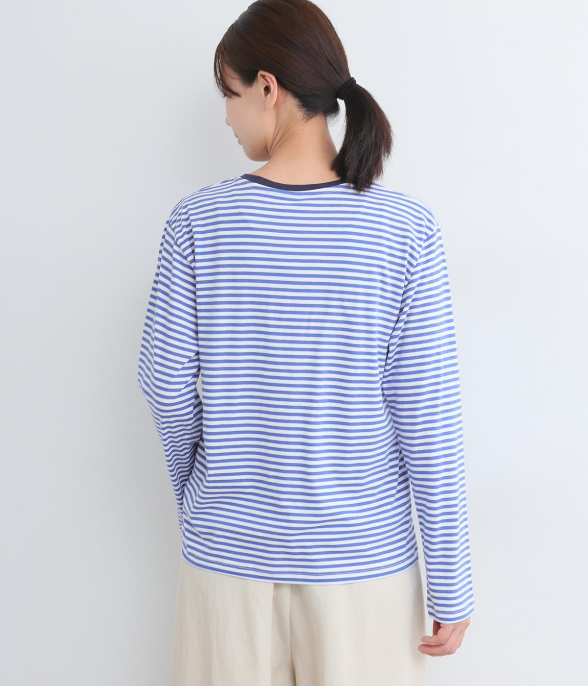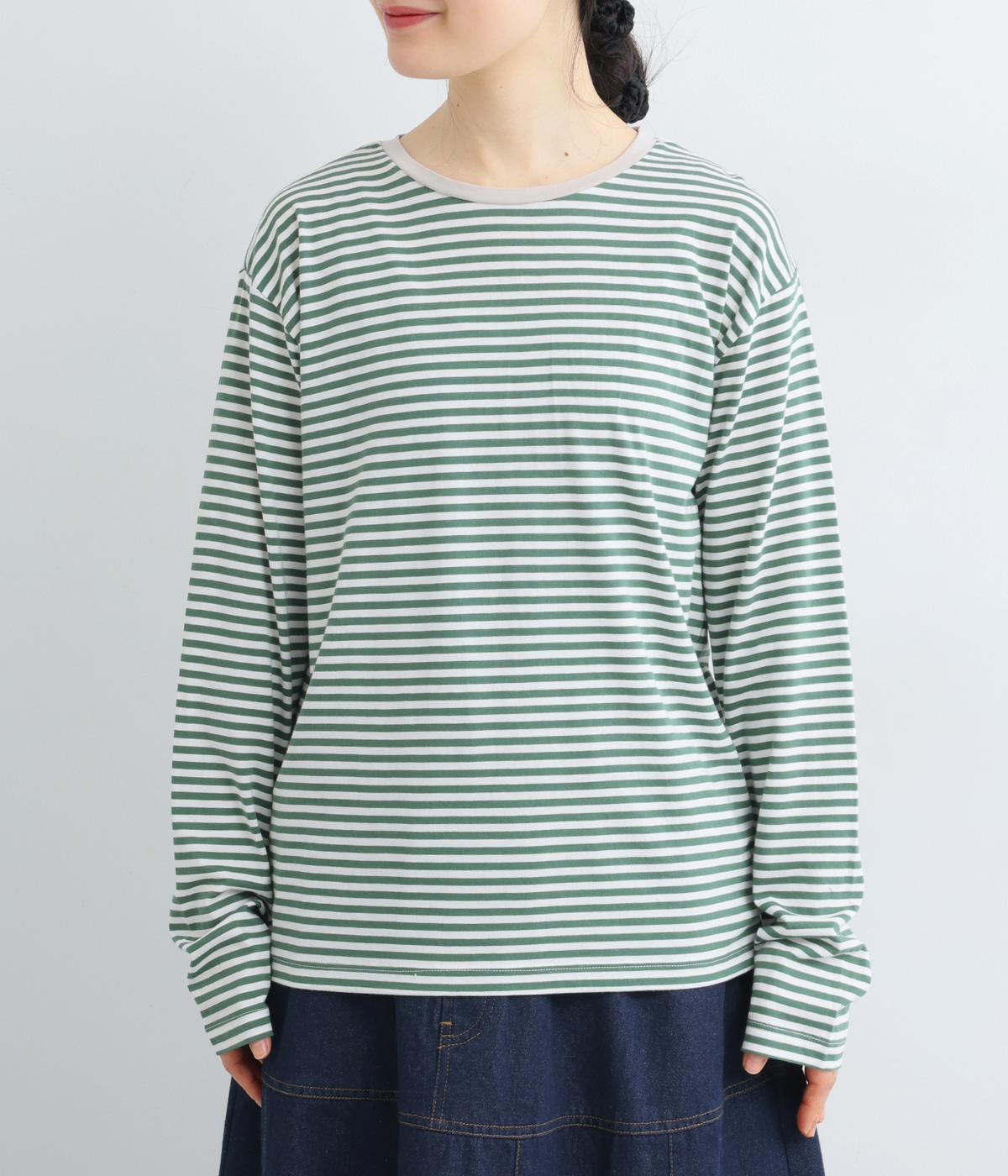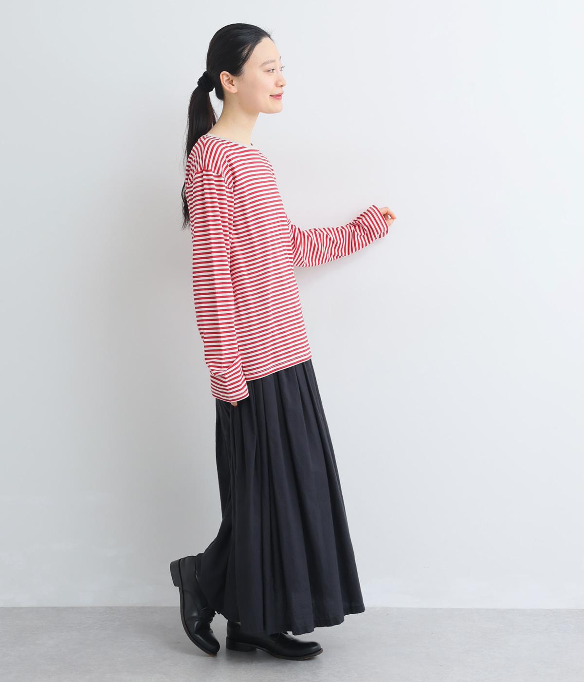 適度にゆとりを持たせたラフ感のある仕上がりにしたカットソープルオーバー。細めのピッチのフレンチボーダーをセレクトし、メインにもチラ見せ用インナーにもなる着まわし力抜群な一枚に。襟ぐりの配色にもこだわりました。