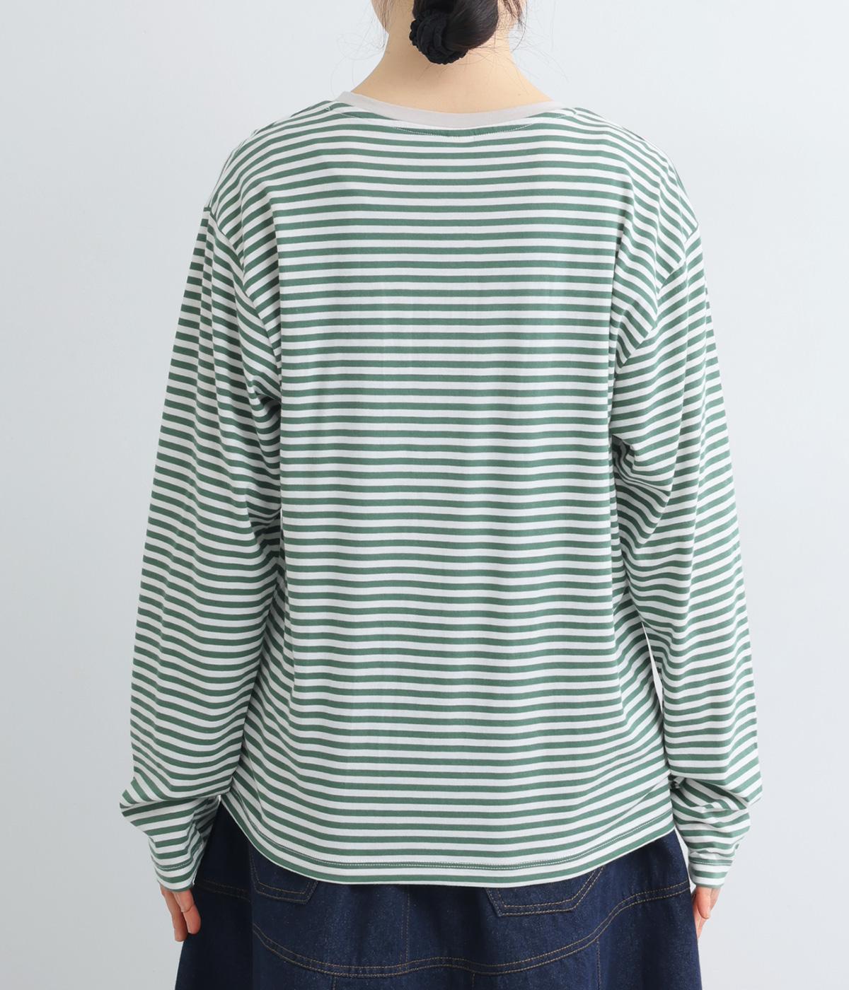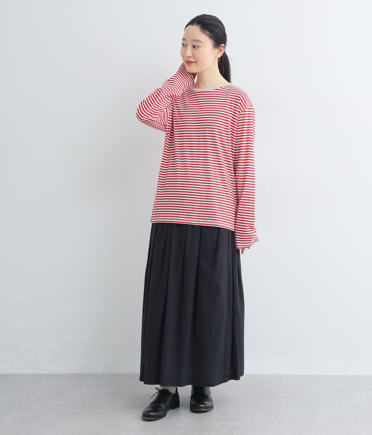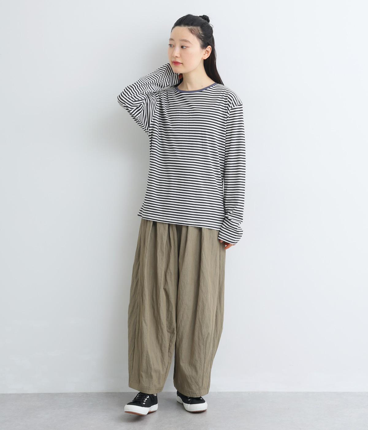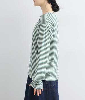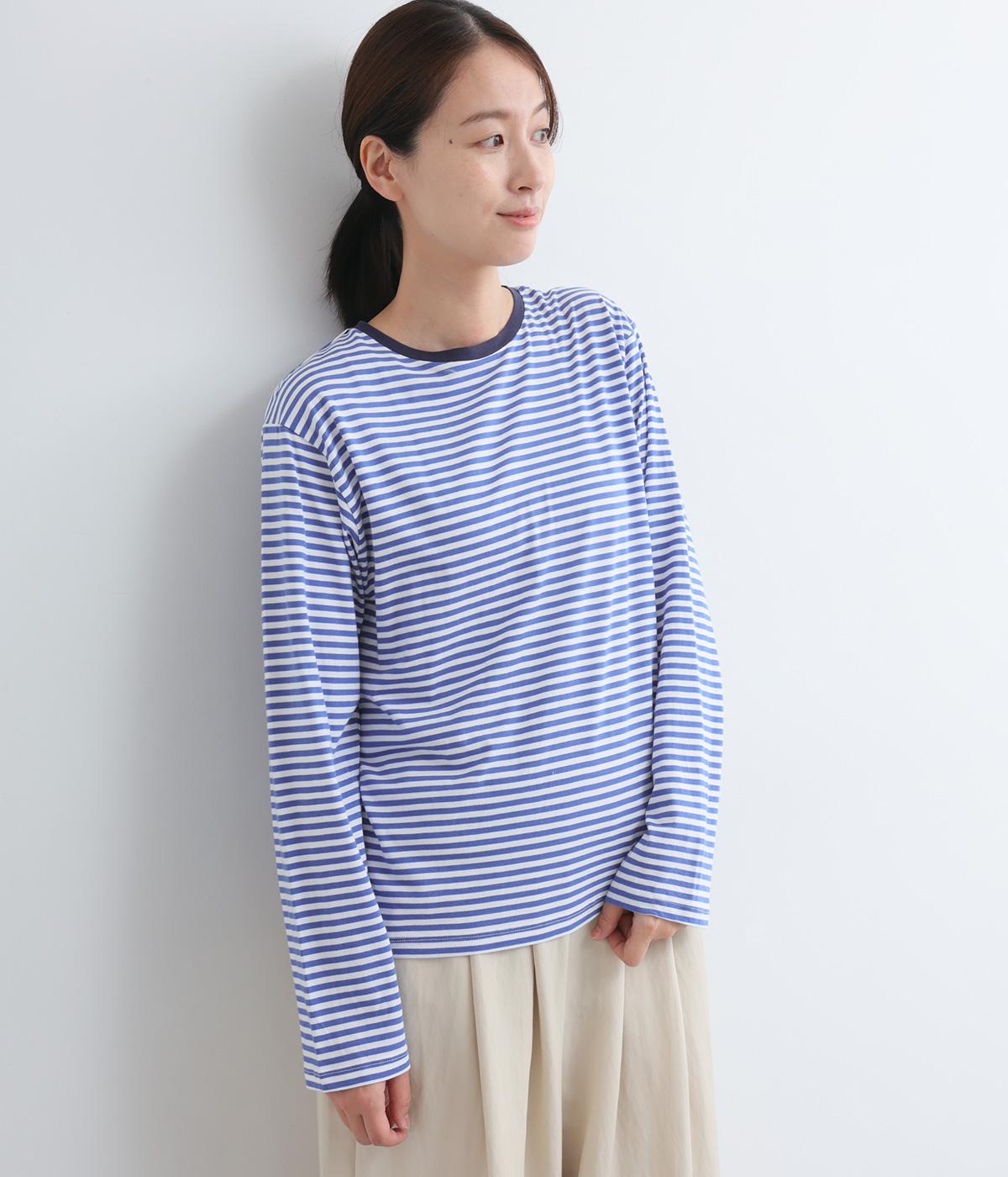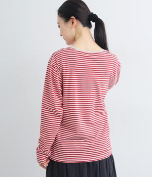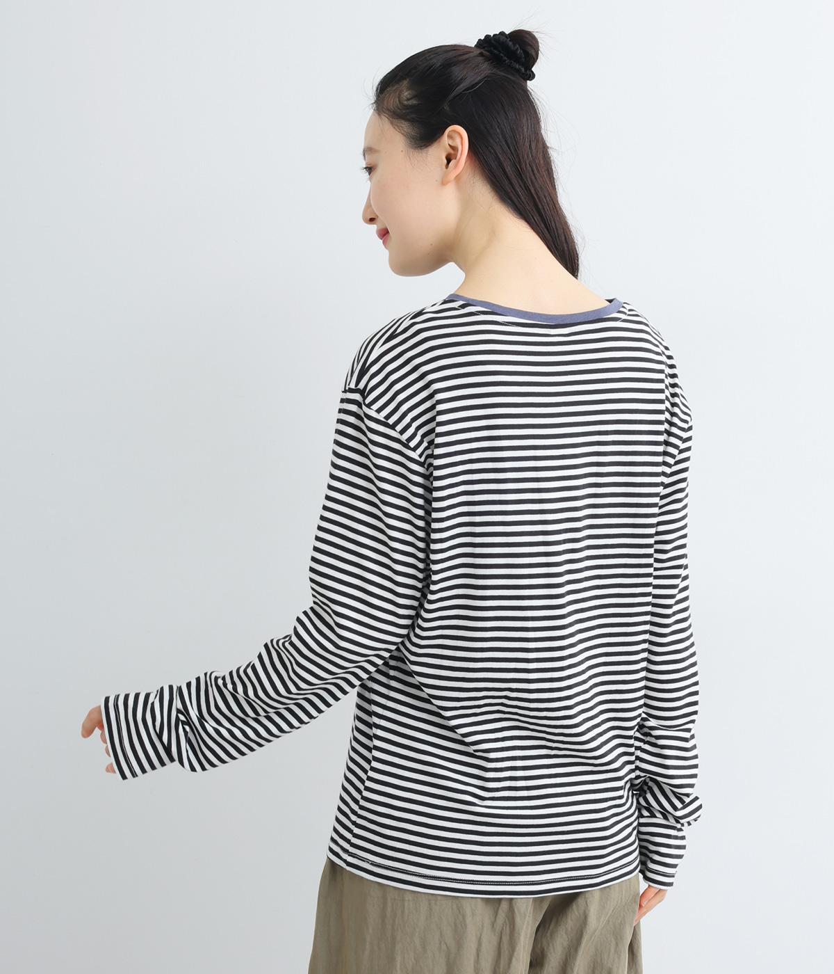 適度にゆとりを持たせたラフ感のある仕上がりにしたカットソープルオーバー。細めのピッチのフレンチボーダーをセレクトし、メインにもチラ見せ用インナーにもなる着まわし力抜群な一枚に。襟ぐりの配色にもこだわりました。