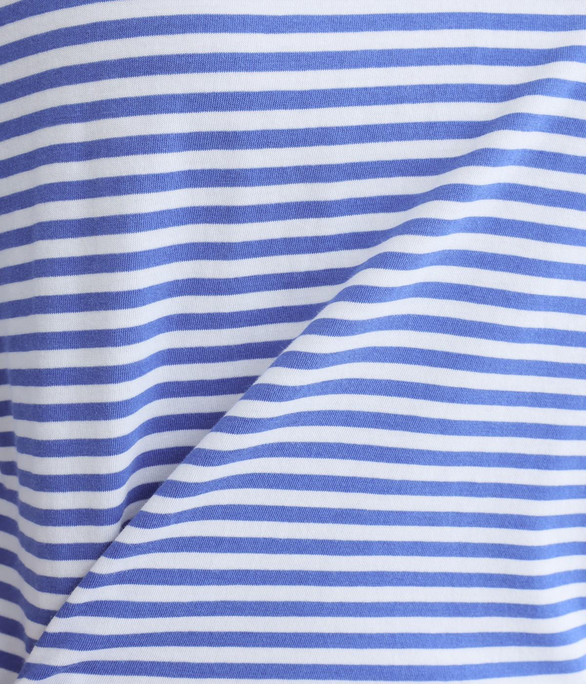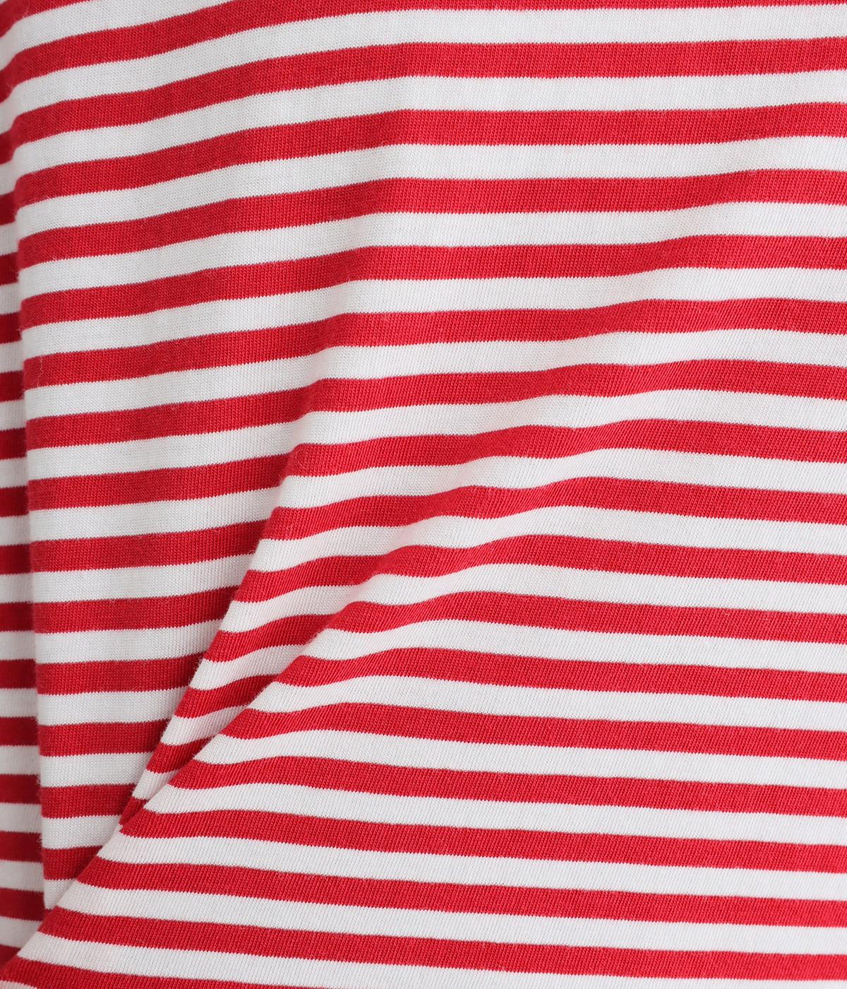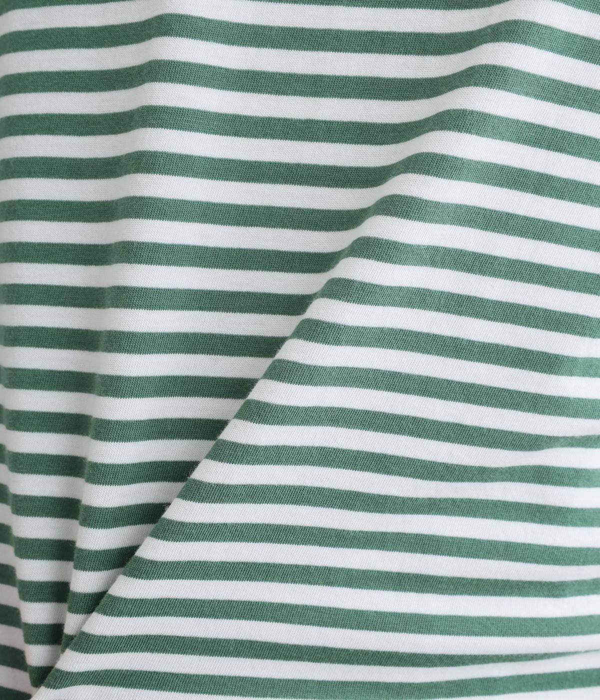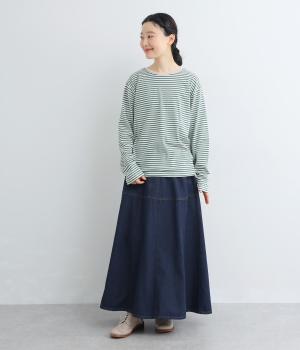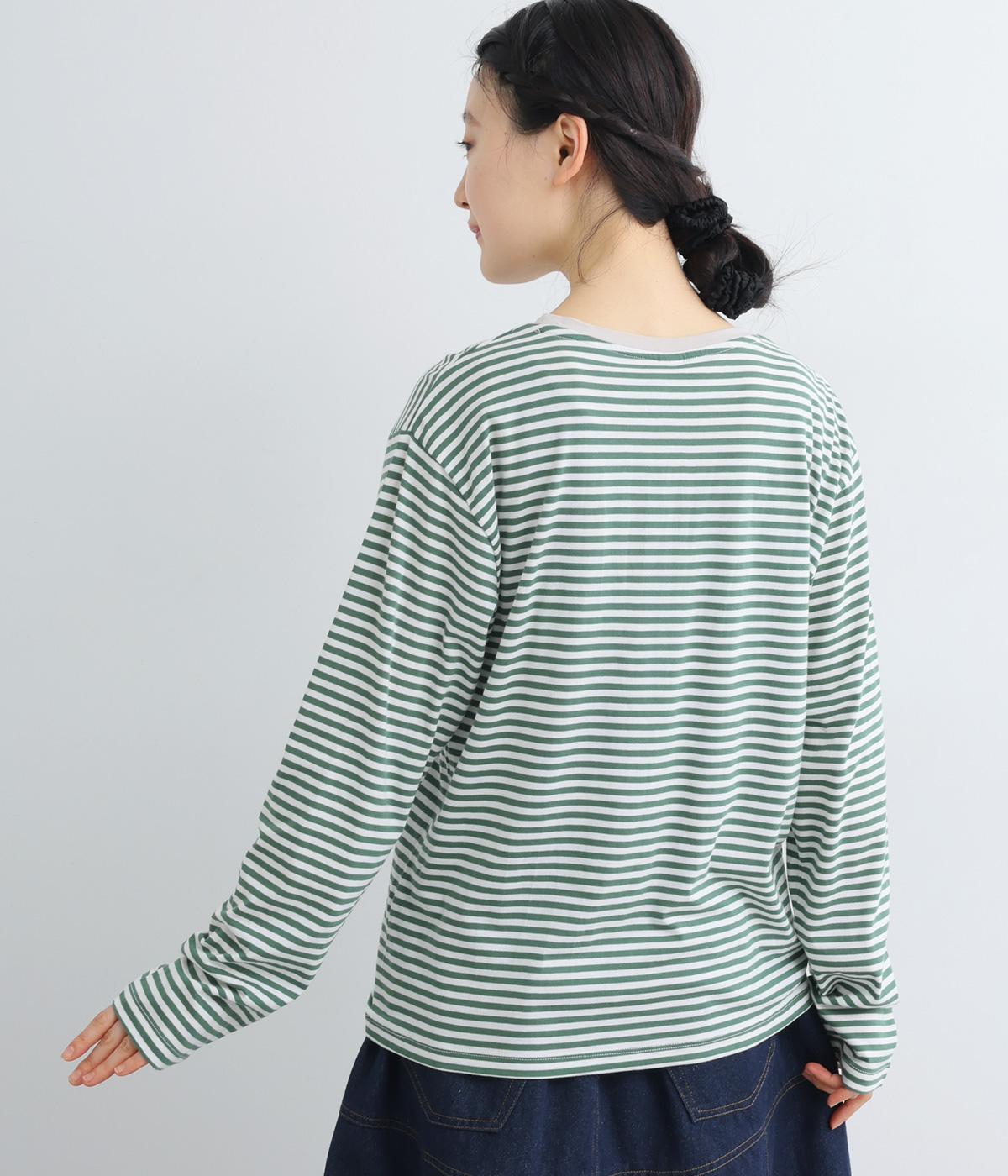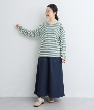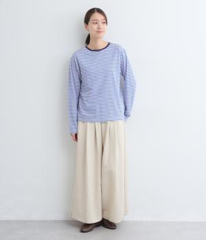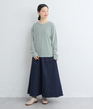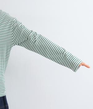 適度にゆとりを持たせたラフ感のある仕上がりにしたカットソープルオーバー。細めのピッチのフレンチボーダーをセレクトし、メインにもチラ見せ用インナーにもなる着まわし力抜群な一枚に。襟ぐりの配色にもこだわりました。