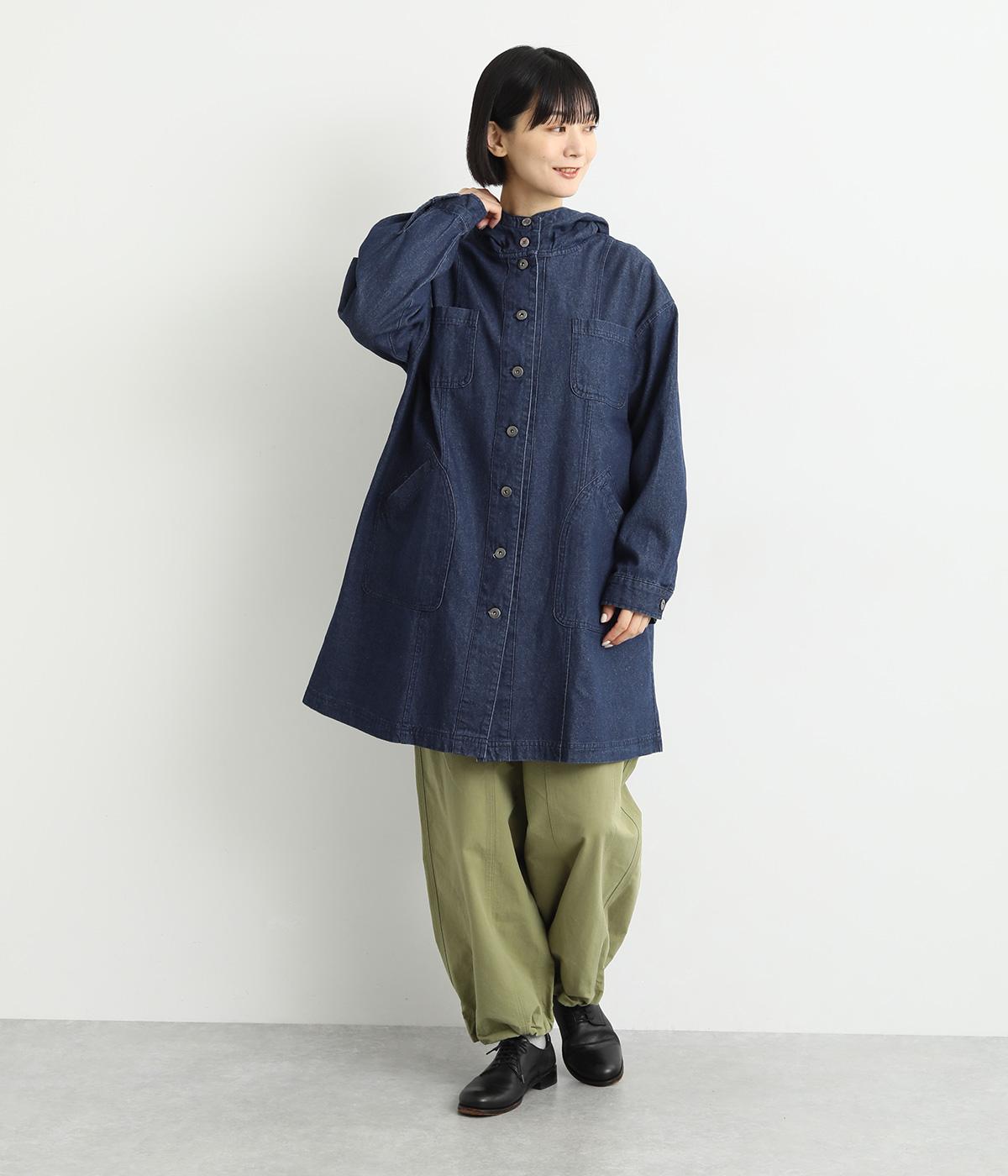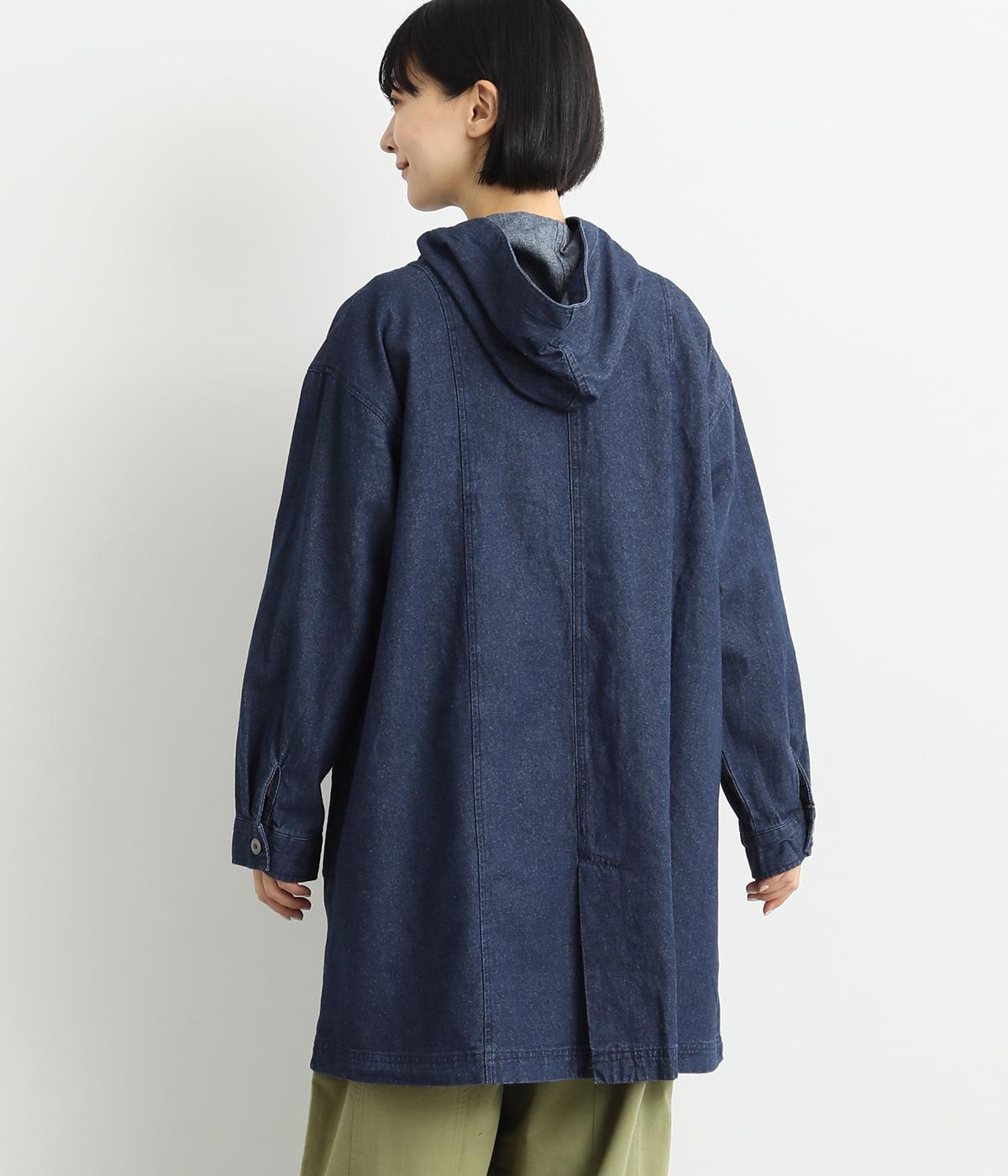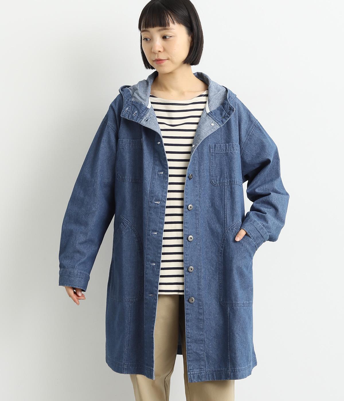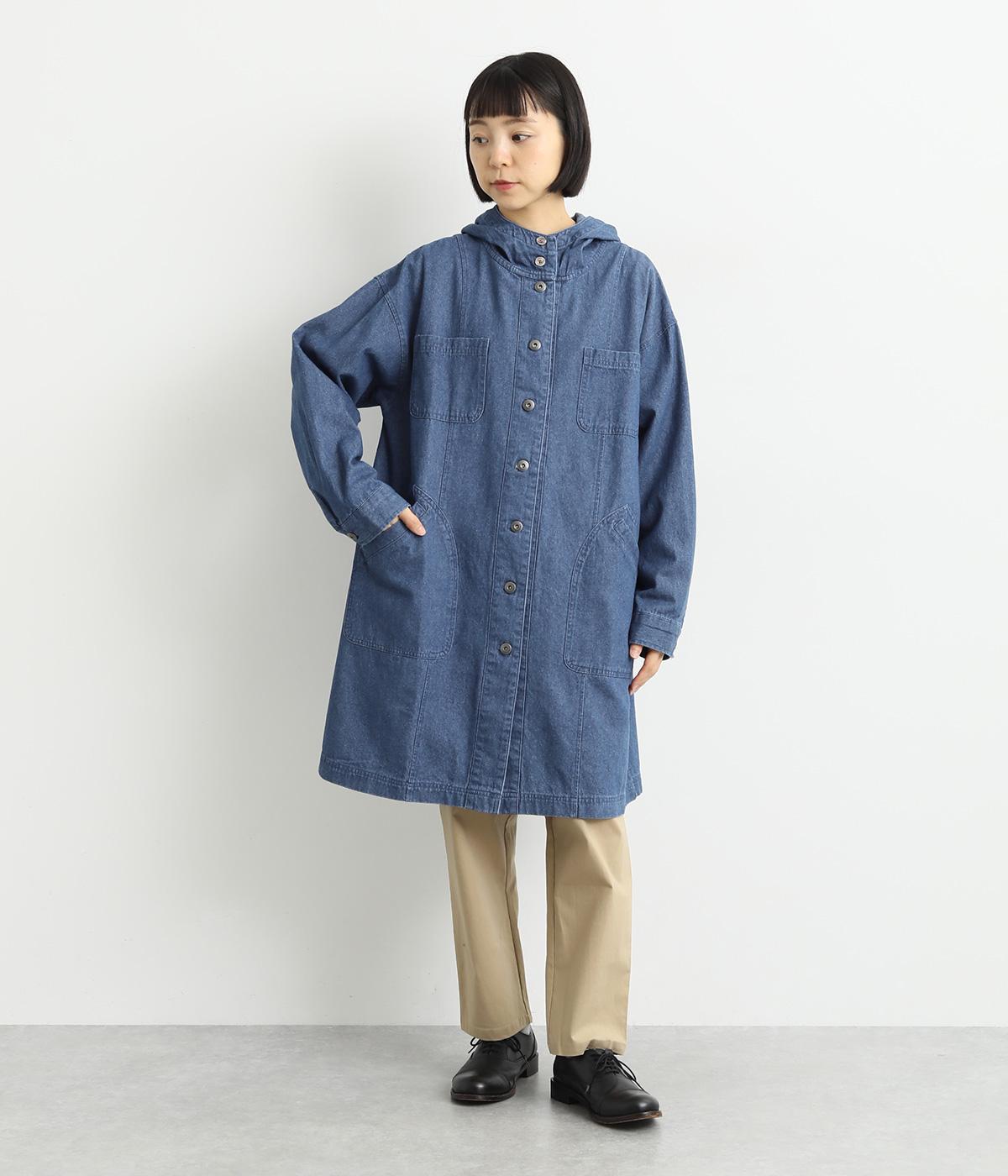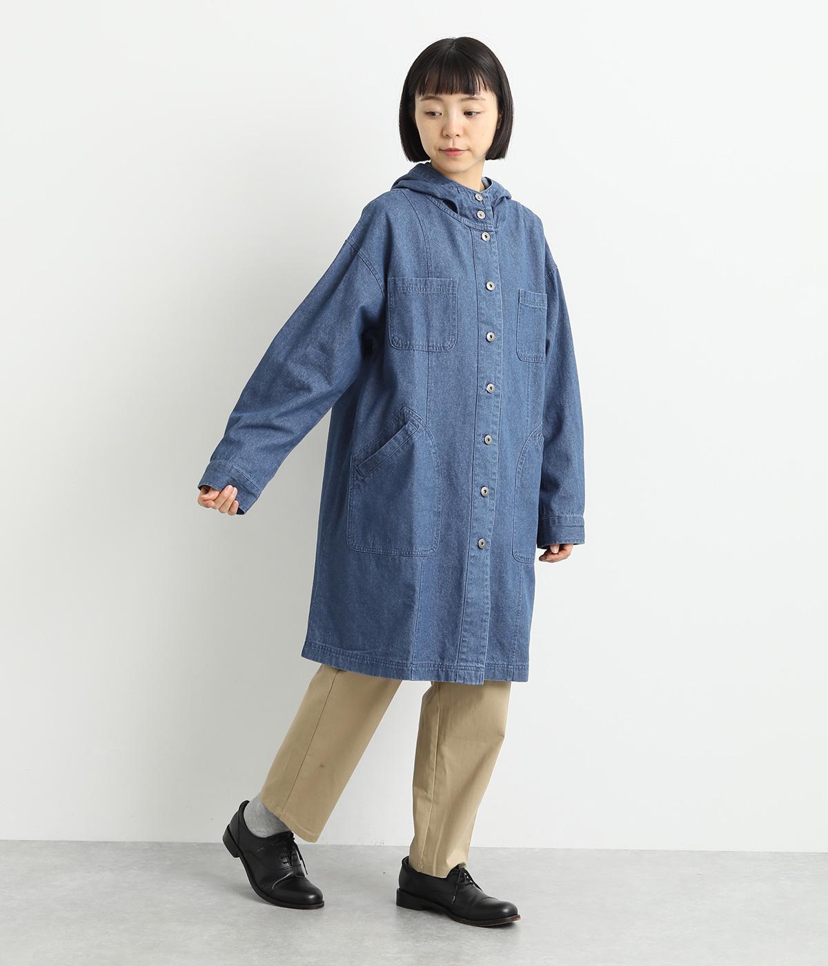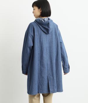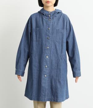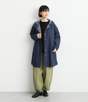 フードつきでカジュアルに仕立てたデニムのジャケットコート。ひざまでのミドル丈でメンズライクな装いにもおすすめ。後ろベントで足さばきも良く、ボタンを留めてすっきりとしたシルエットを楽しんでも◎。
