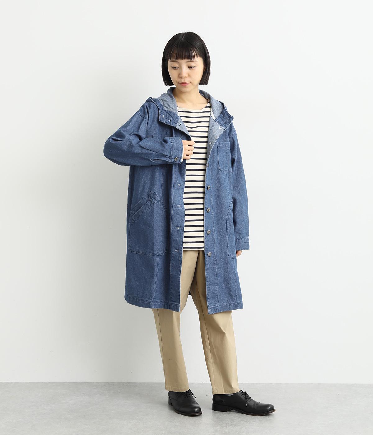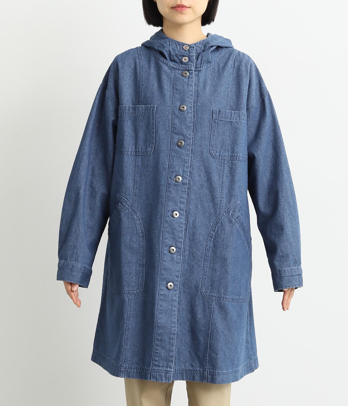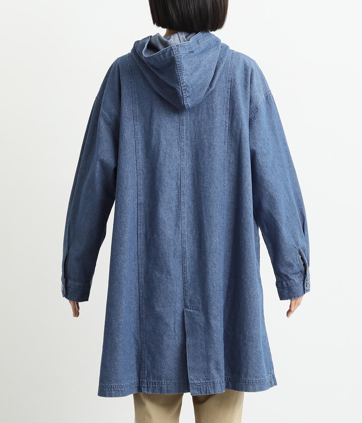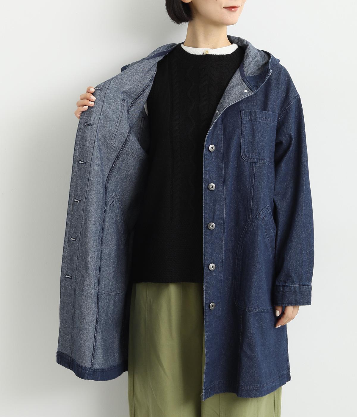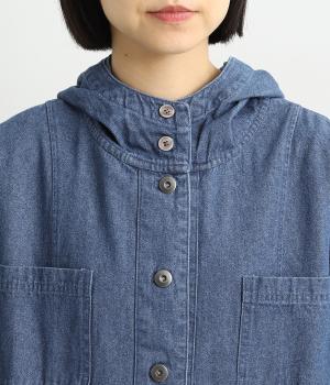 フードつきでカジュアルに仕立てたデニムのジャケットコート。ひざまでのミドル丈でメンズライクな装いにもおすすめ。後ろベントで足さばきも良く、ボタンを留めてすっきりとしたシルエットを楽しんでも◎。