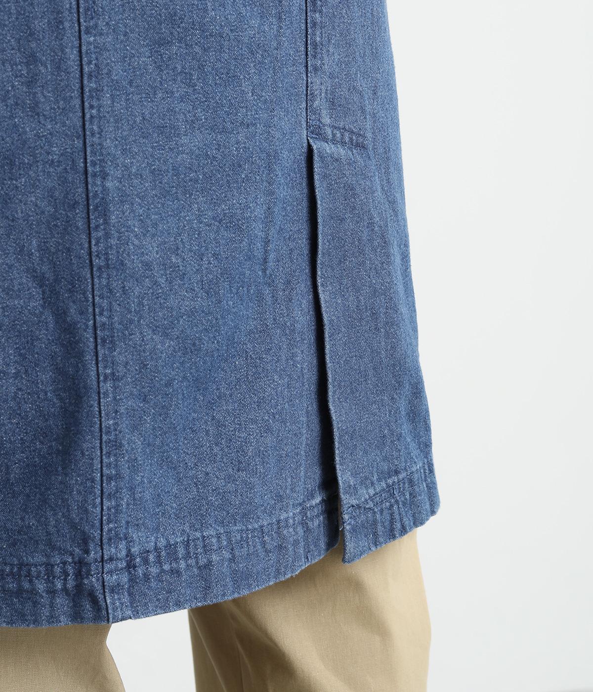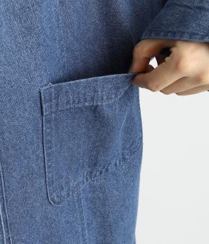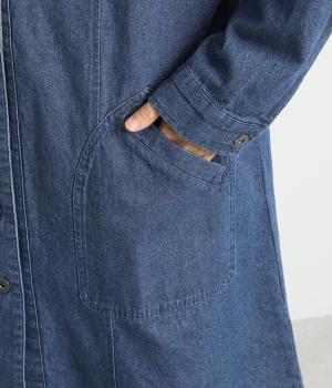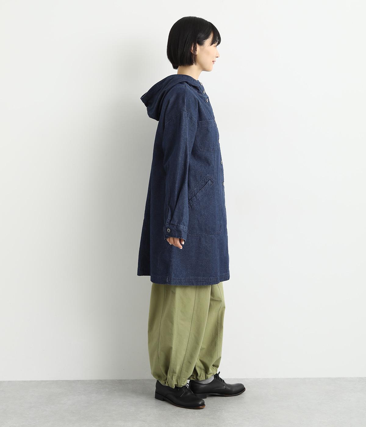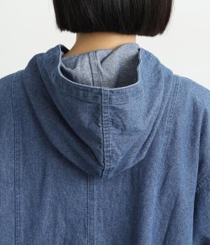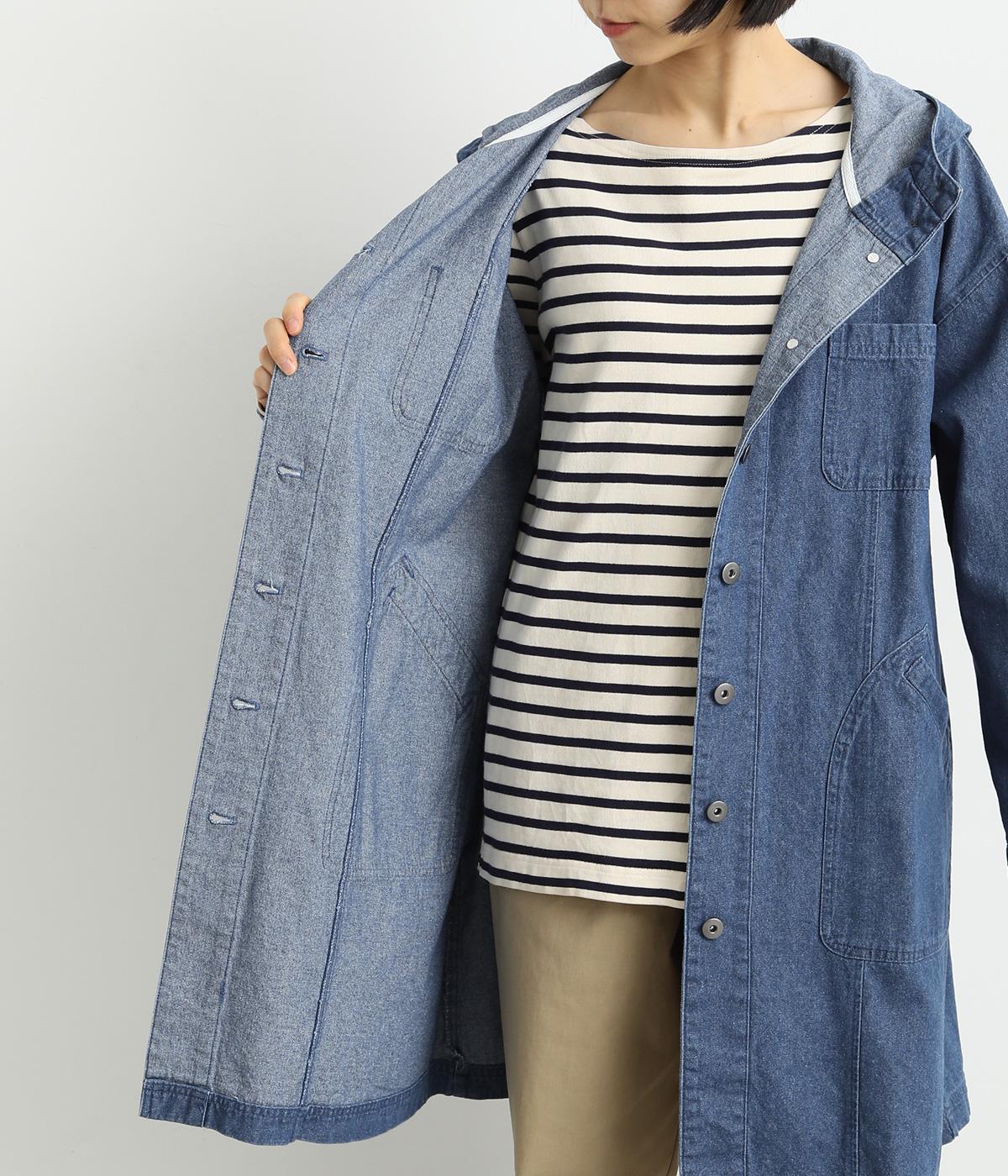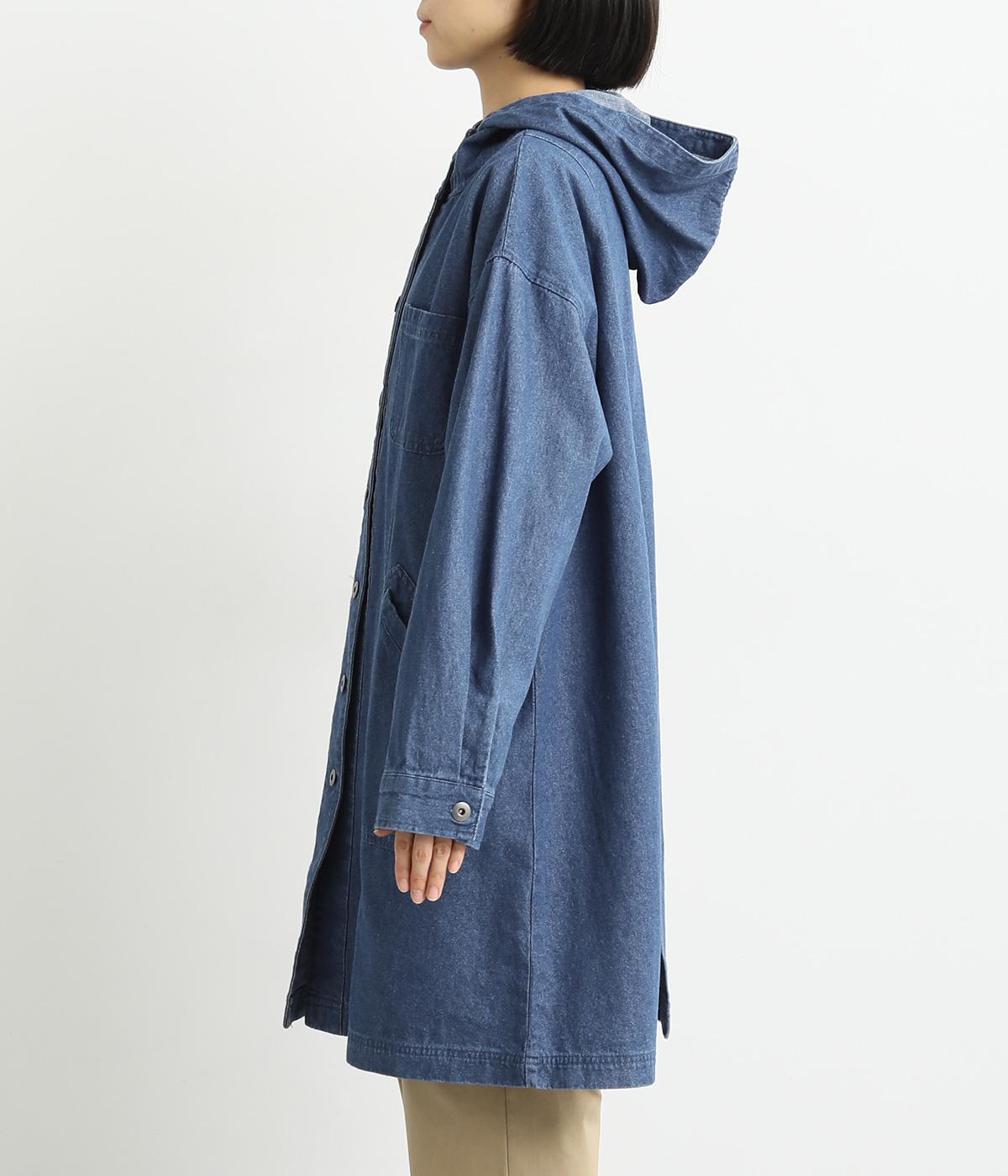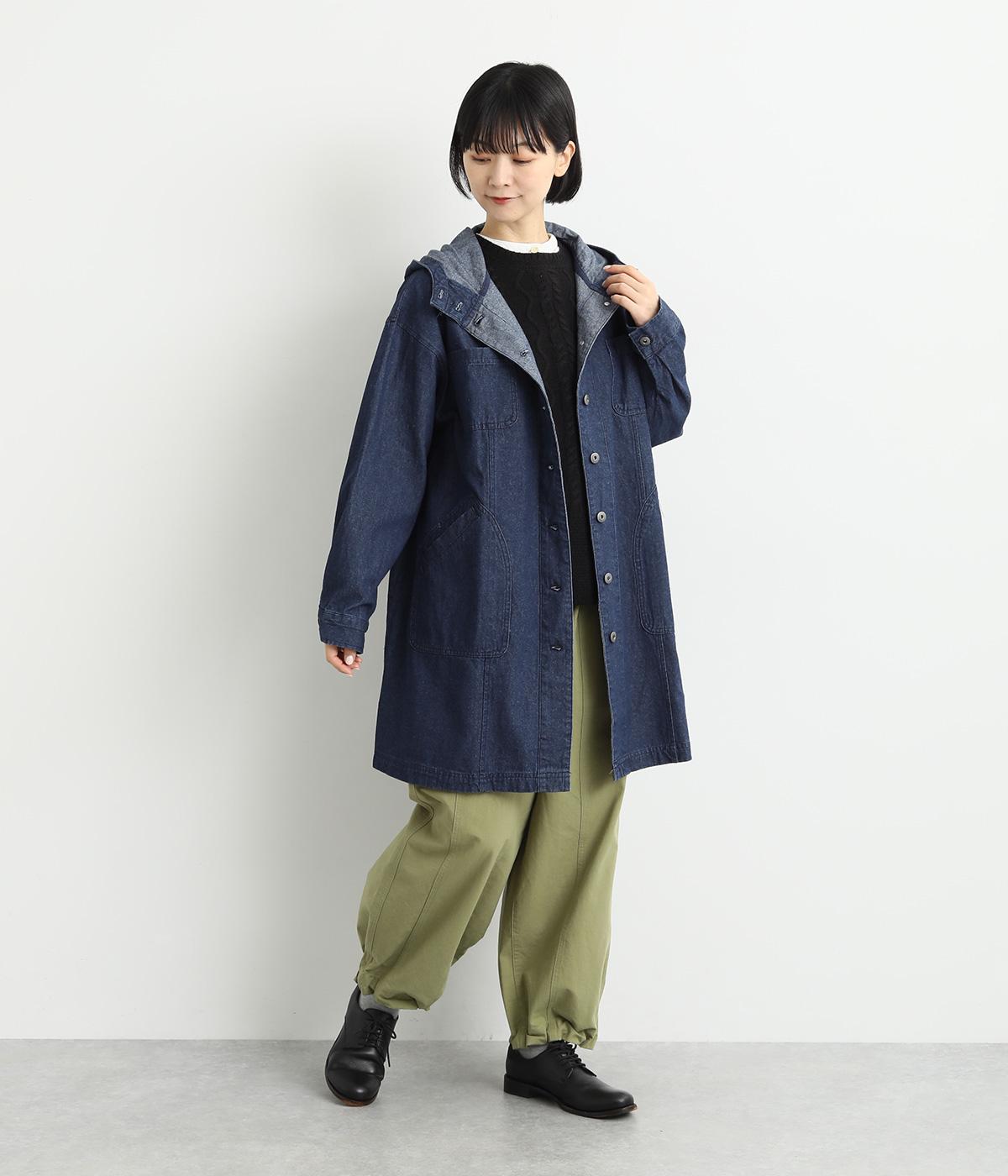 フードつきでカジュアルに仕立てたデニムのジャケットコート。ひざまでのミドル丈でメンズライクな装いにもおすすめ。後ろベントで足さばきも良く、ボタンを留めてすっきりとしたシルエットを楽しんでも◎。