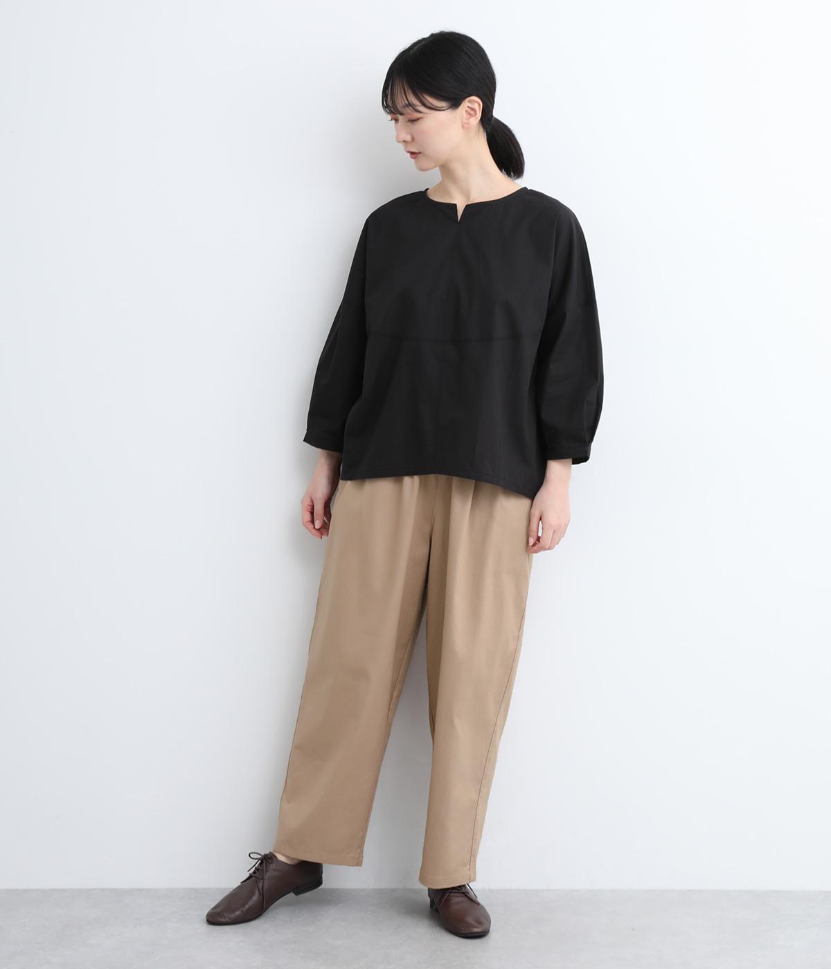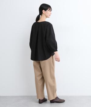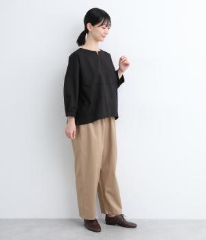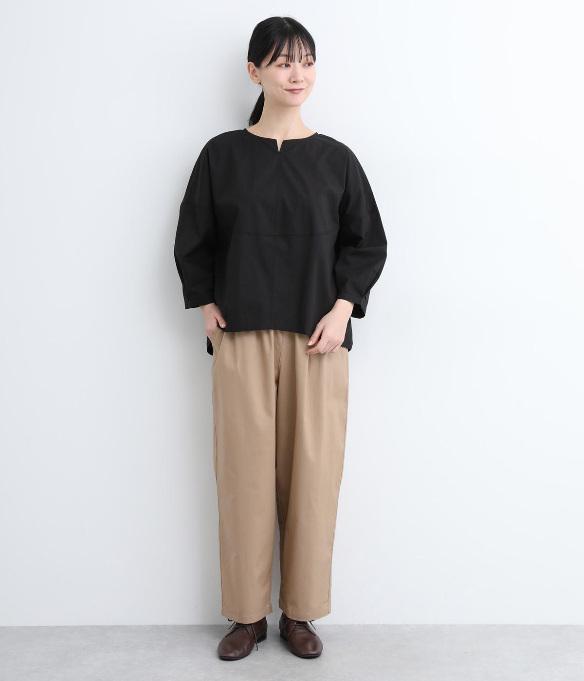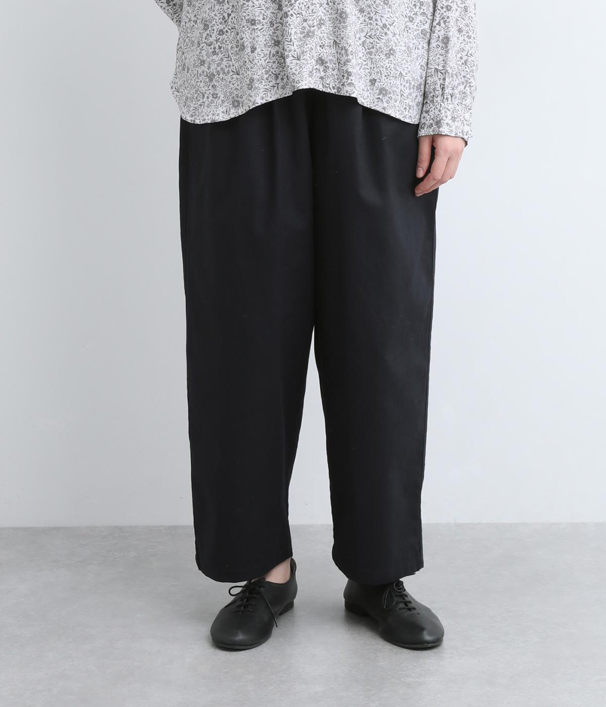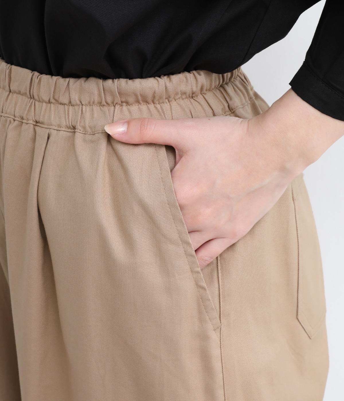 裾にかけてやや細身になるテーパードシルエットのパンツです。総ゴム入りでファスナーなしの、気負わずはけるイージータイプ。内側のヒモを絞ることでサイズ調整も可能です。ワンピースとのレイヤードにも活躍。