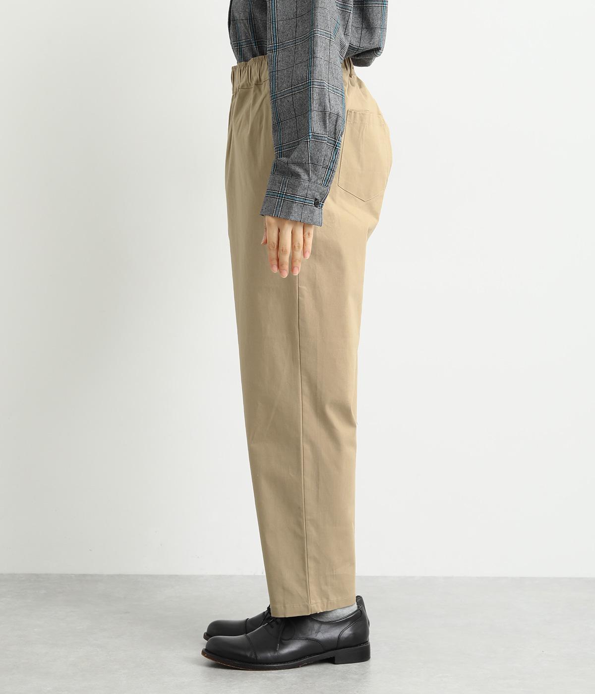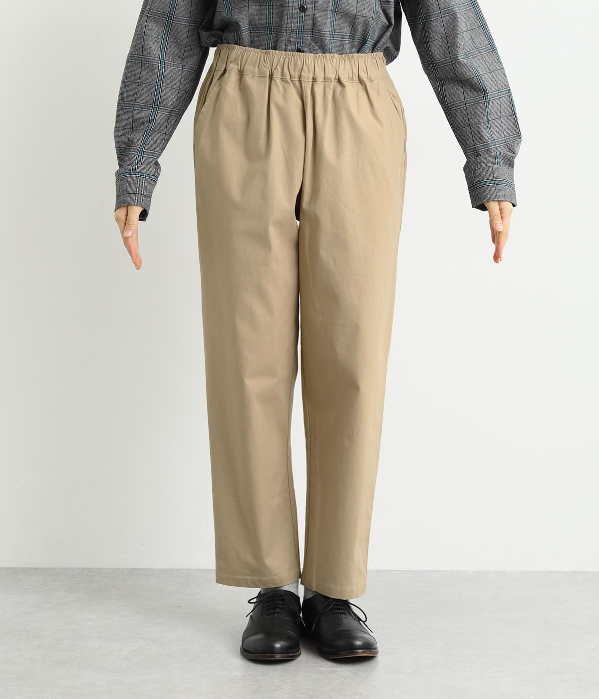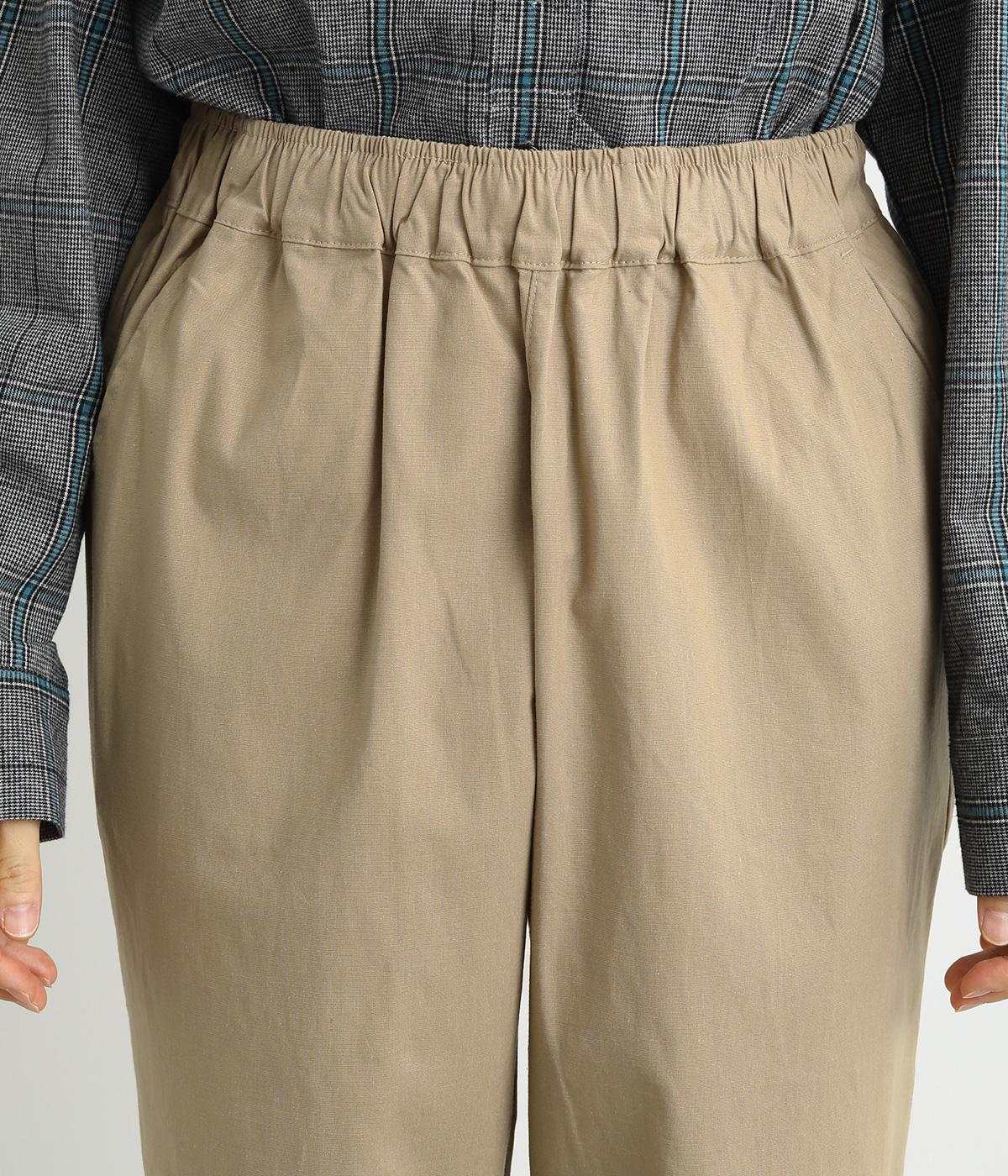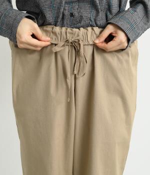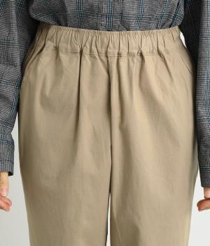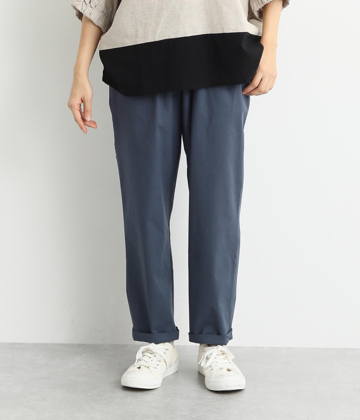 シューズ合わせがたのしめる、すっきりとした9分丈のテーパードパンツです。ボリュームのあるトップスやレイヤードにも最適で、一本持っていると重宝します。ウエストはオールゴムに内紐を入れたイージー仕様。