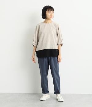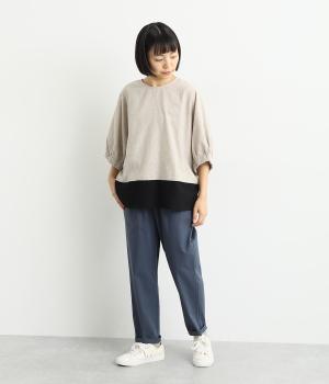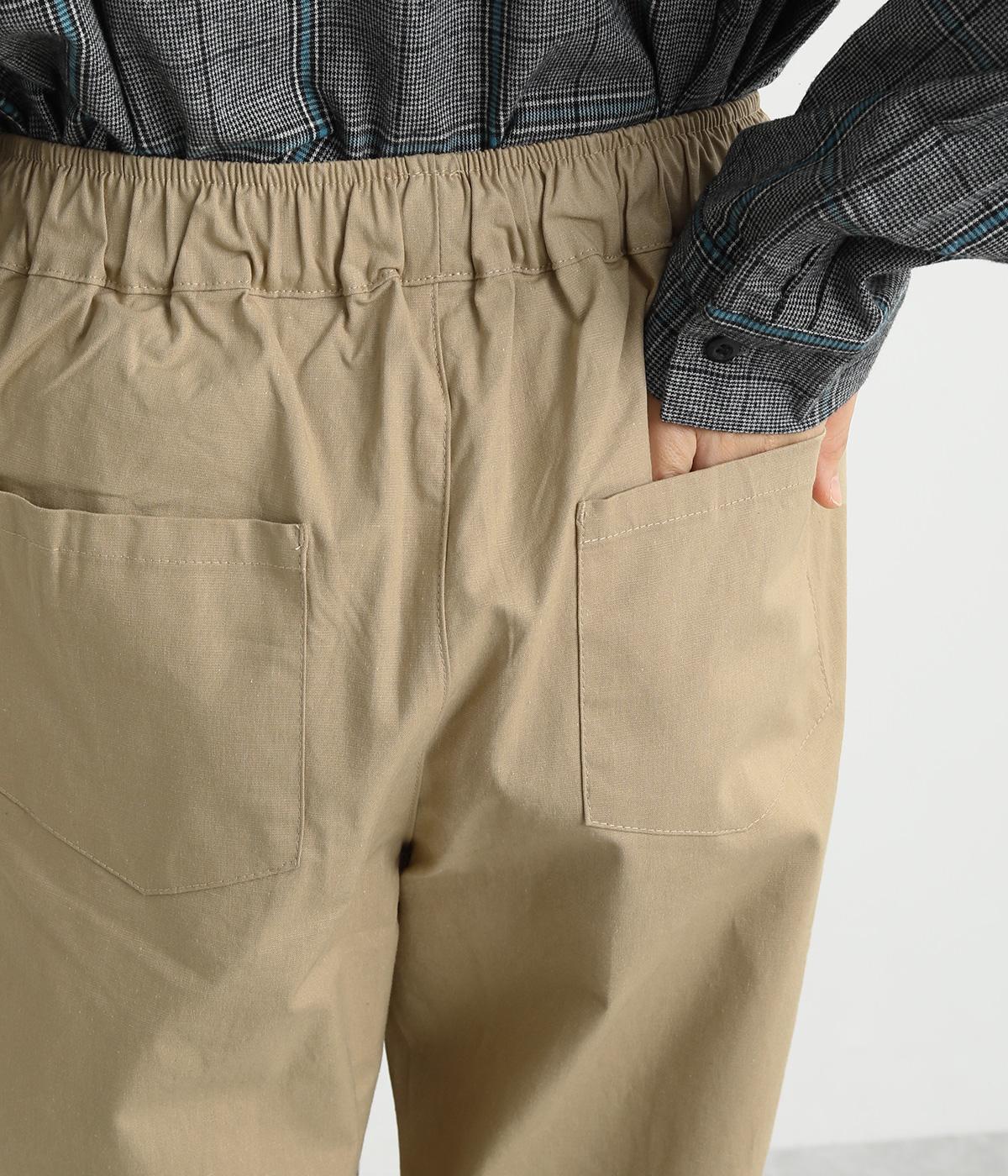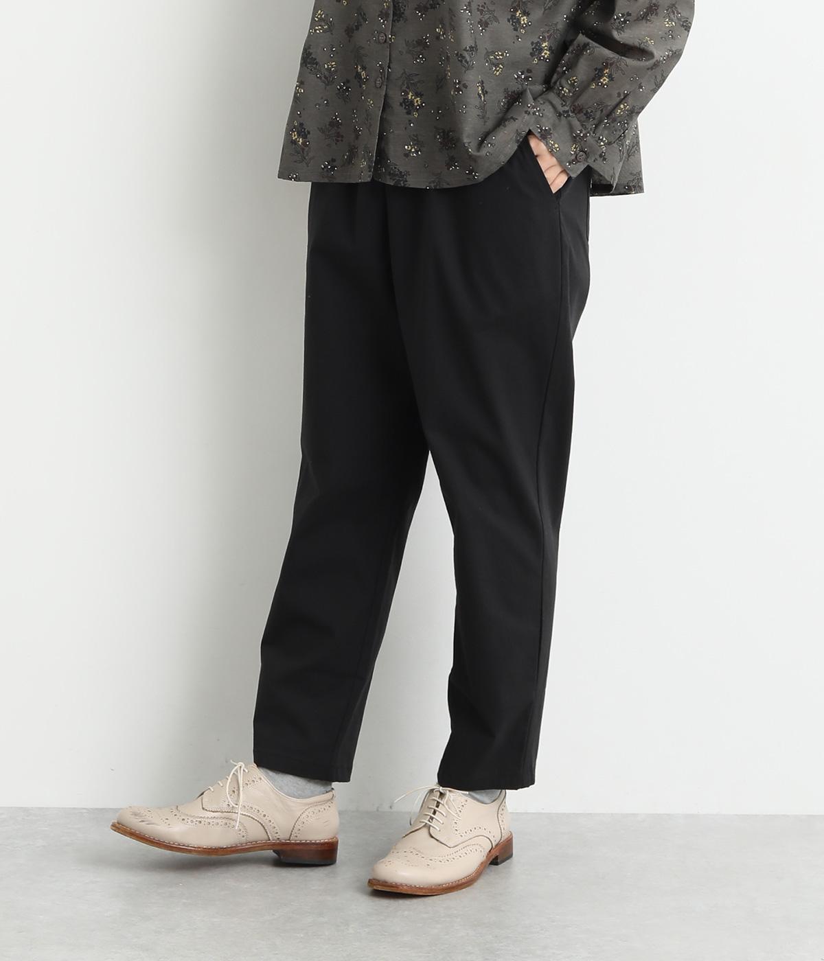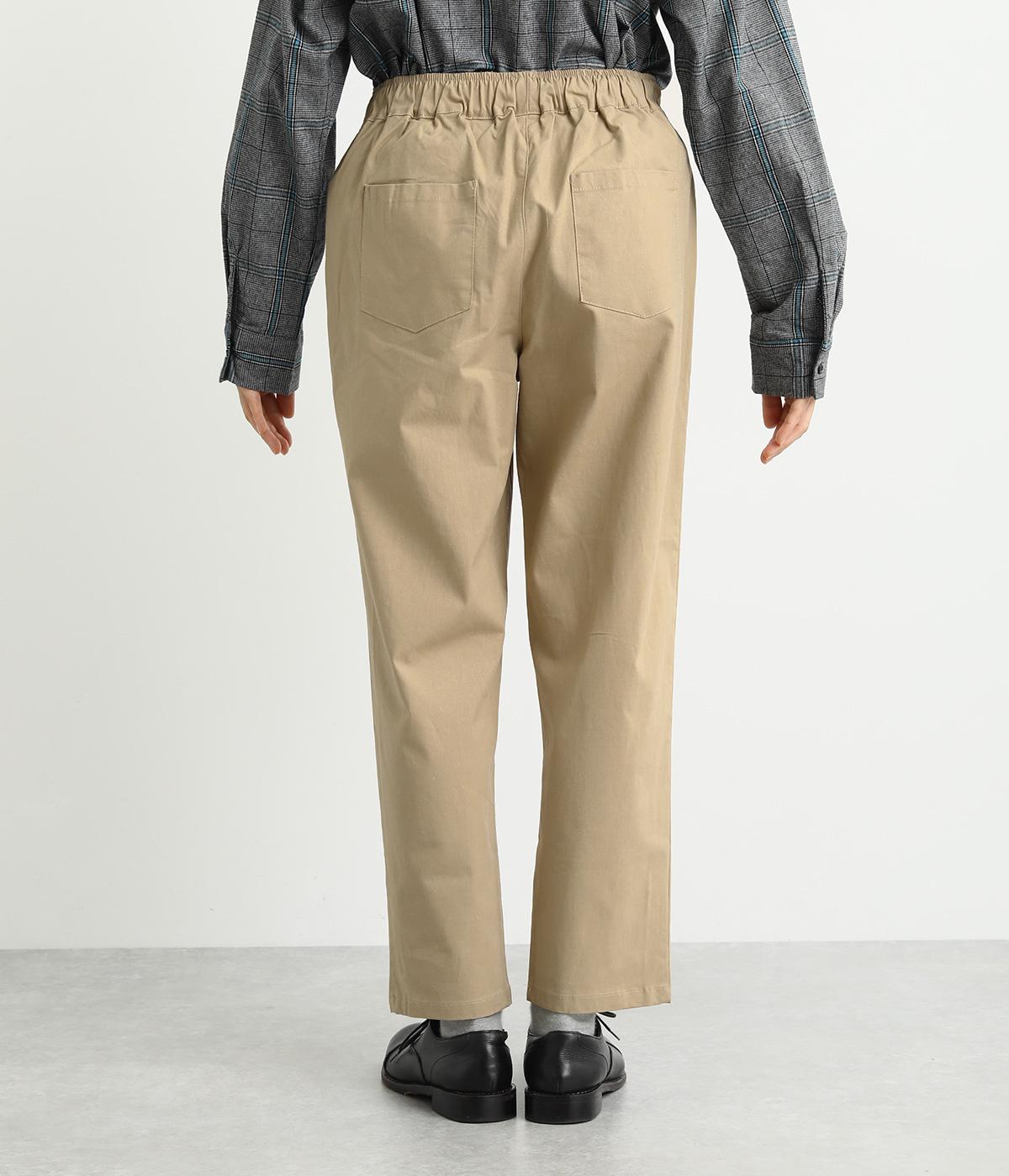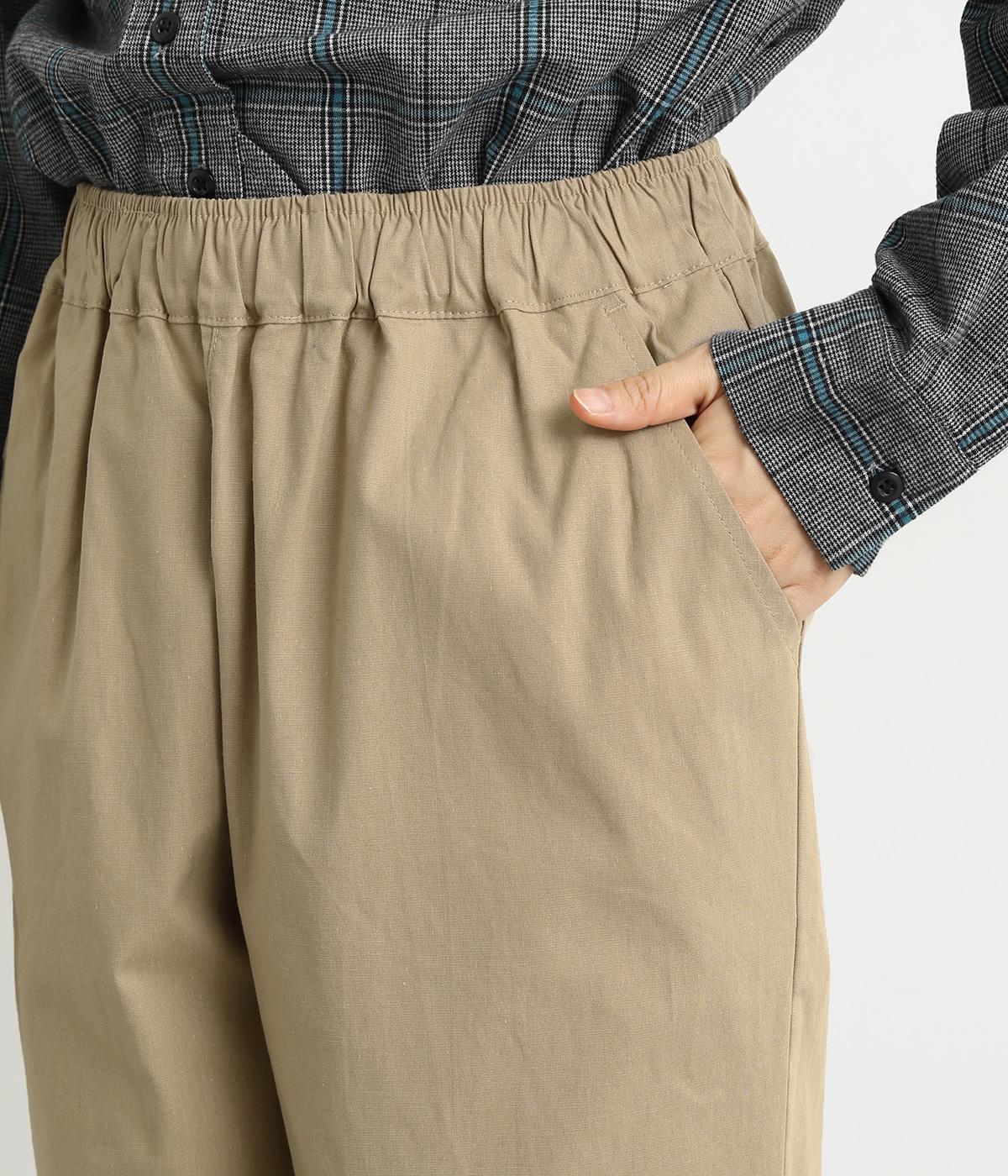 シューズ合わせがたのしめる、すっきりとした9分丈のテーパードパンツです。ボリュームのあるトップスやレイヤードにも最適で、一本持っていると重宝します。ウエストはオールゴムに内紐を入れたイージー仕様。