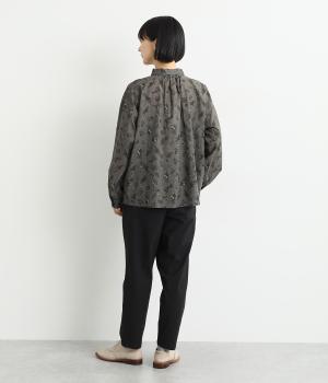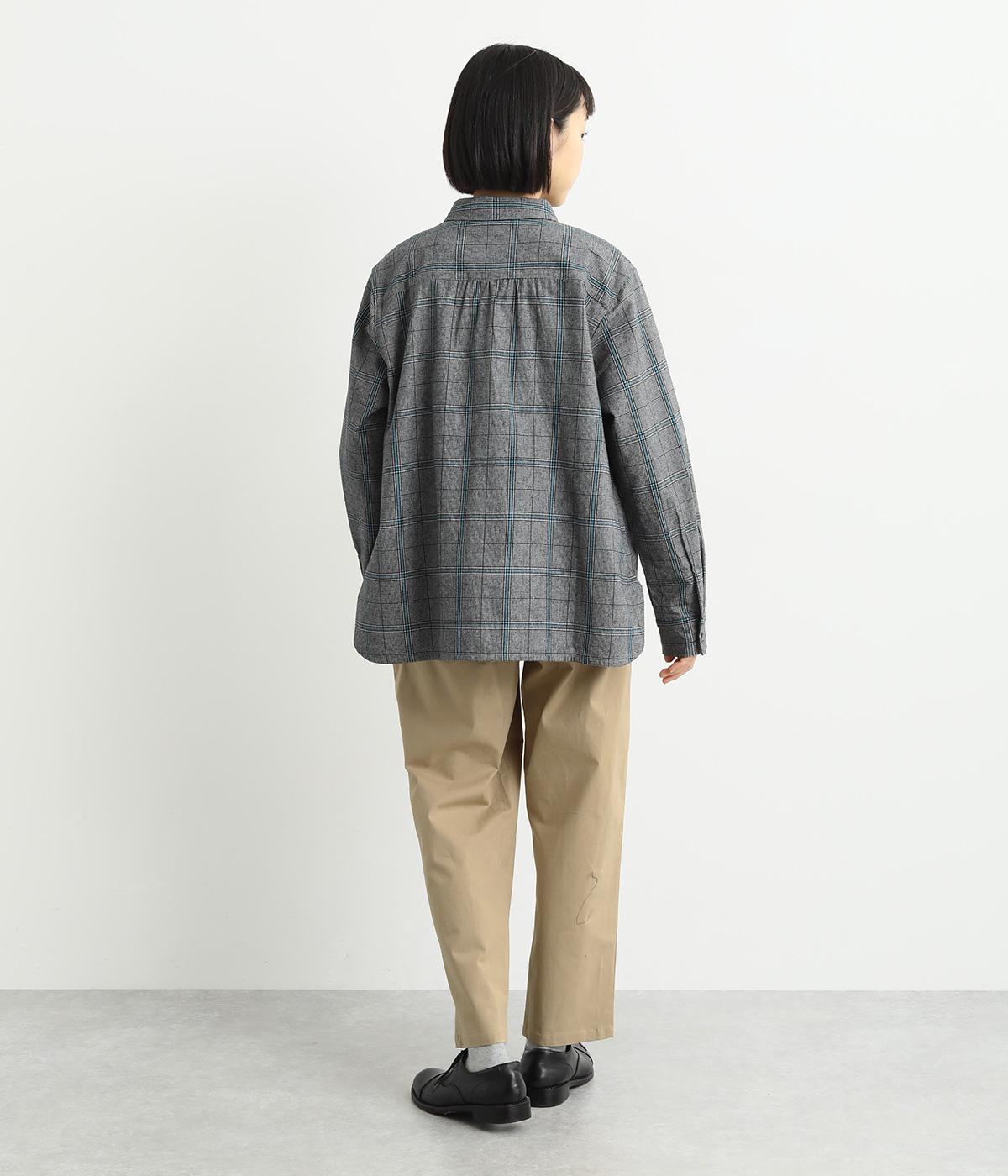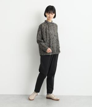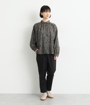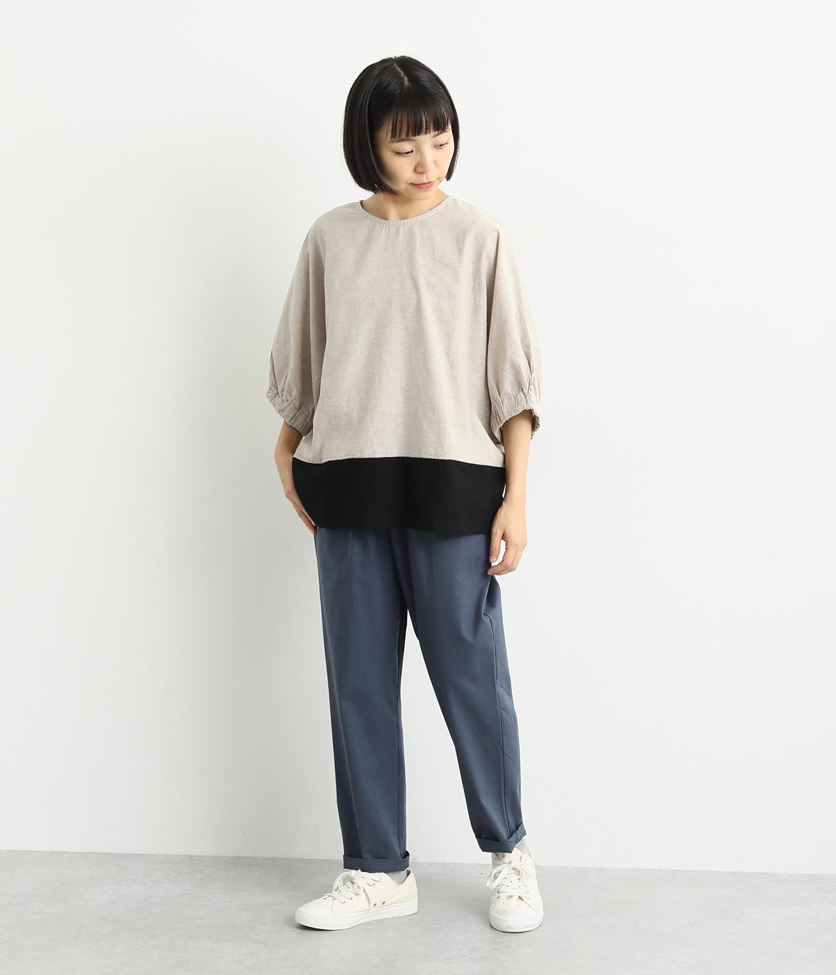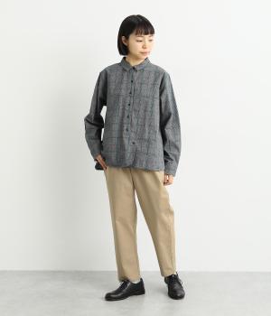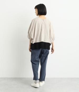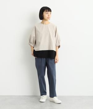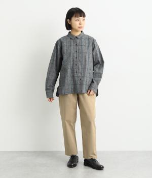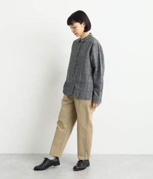 コットンをベースにリネンやレーヨンなどを取り入れた混紡素材を採用。パリッとしたハリ感にストレッチをきかせた、デイリー使いしやすい生地感にしています。使い勝手のいい薄めの中厚手も好ポイント。