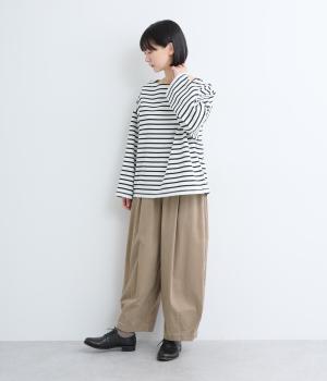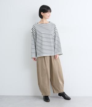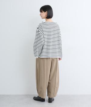 ウエストと裾にタックを入れてたっぷりとした立体感をつけたバルーンパンツ。9分丈にすることで重たく見えず、バランスのいいスタイリングが叶います。ウエストはオールゴムのイージー仕様。内紐入りで微調整も可能です。
