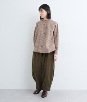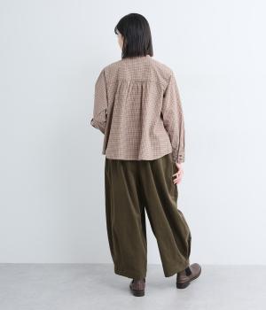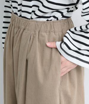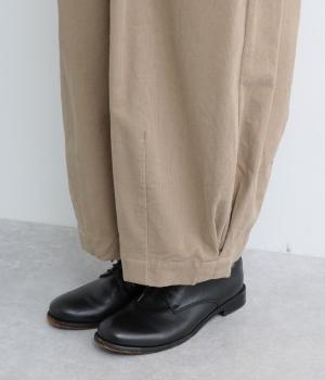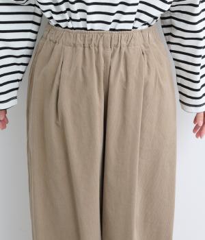 やわらかな肌触りと細畝が特徴的なコーデュロイ生地で仕立てました。ほのかな光沢とあたたかみのある表情で、肉厚すぎずはきやすい仕上がりです。