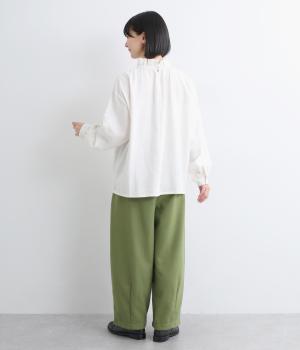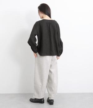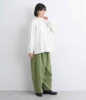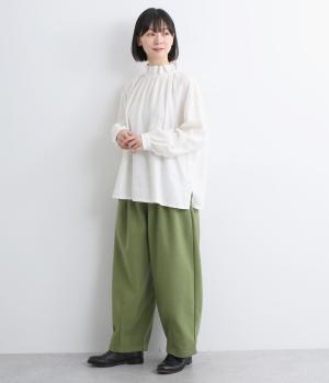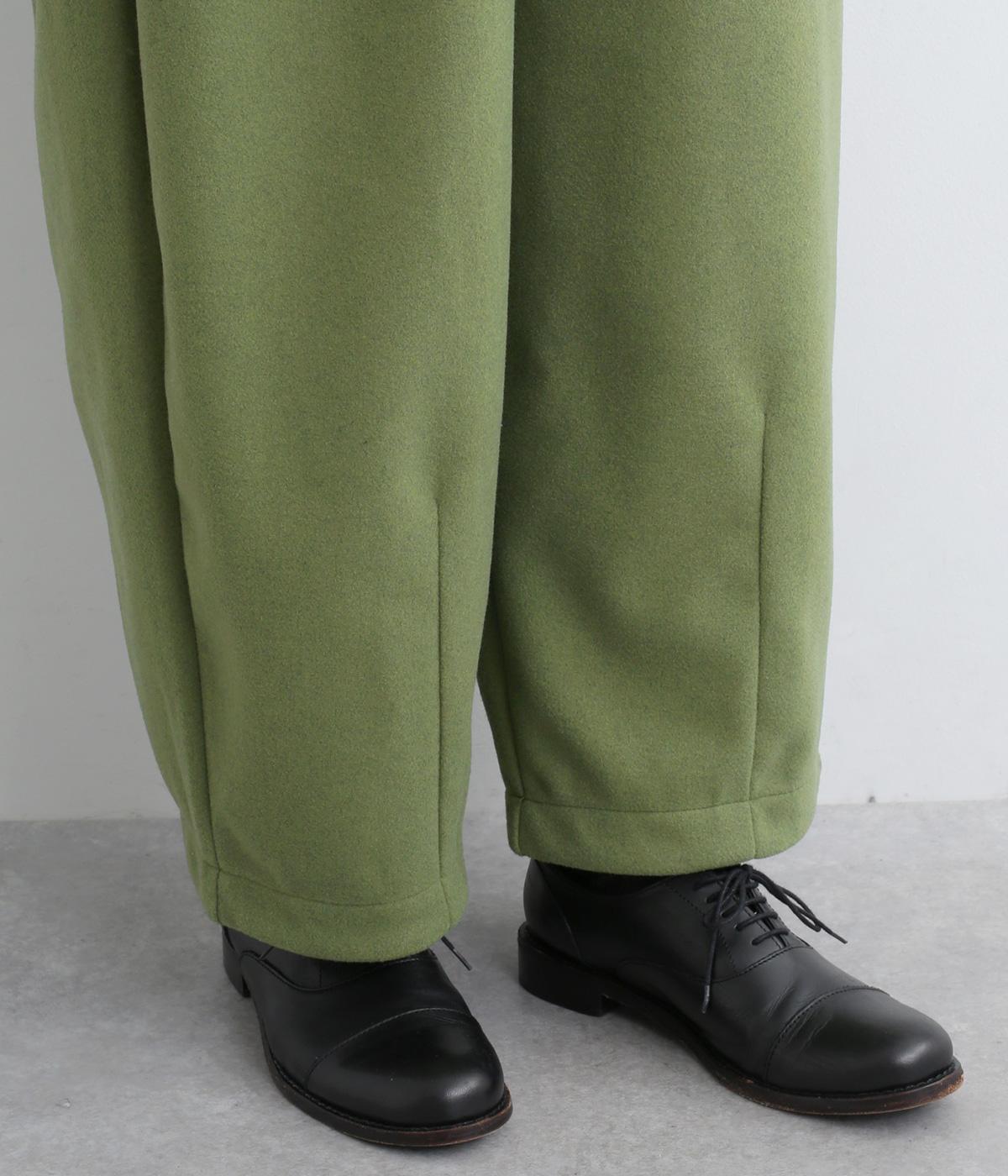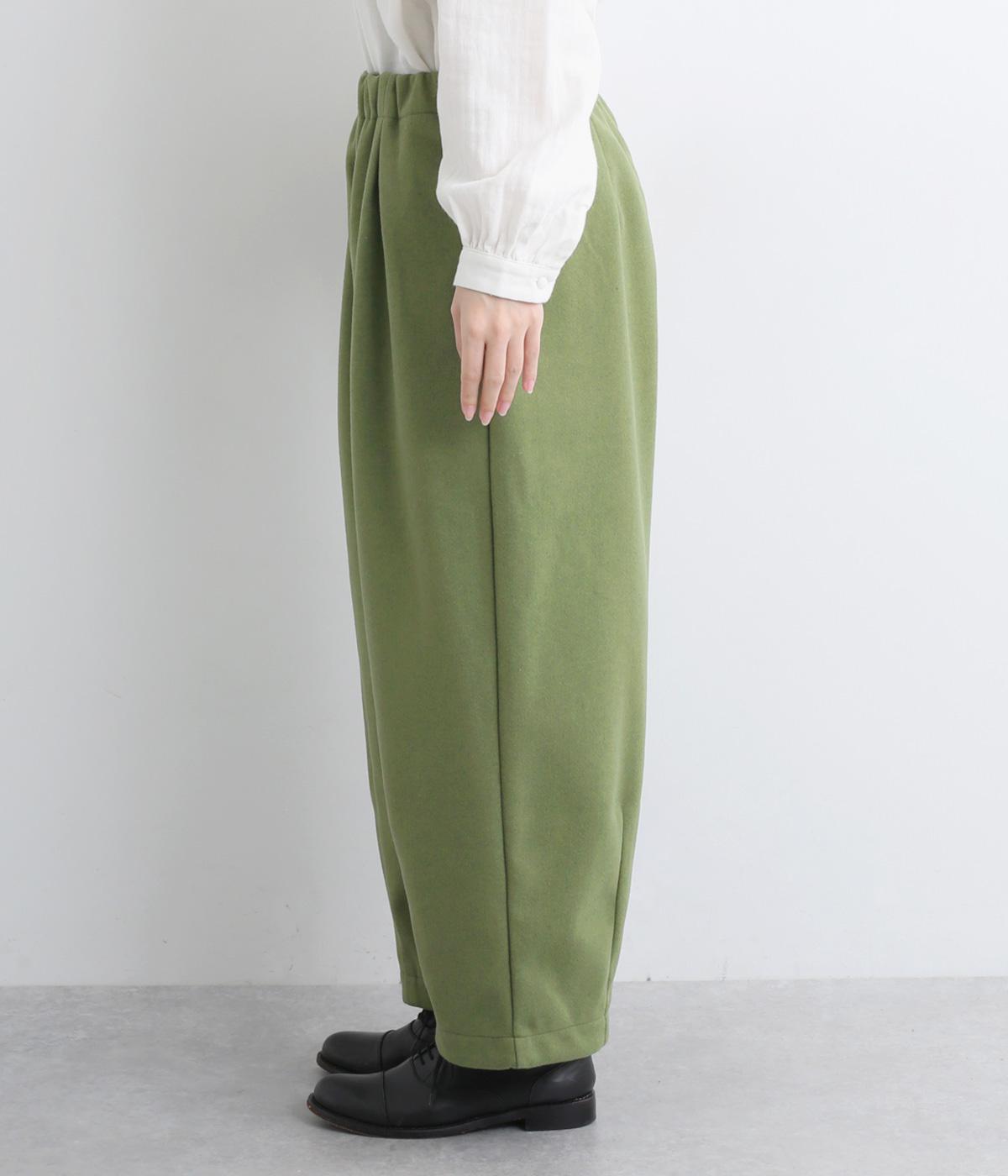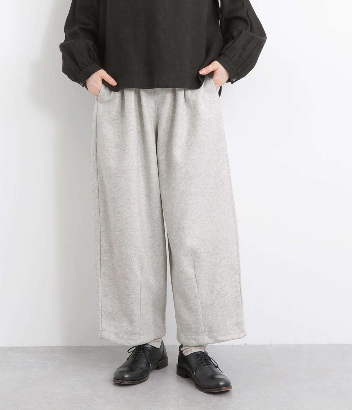 リラクシーなはき心地とお洒落感を兼ね備えた優秀なバルーンパンツ。ダーツで裾まわりはすっきりまとめているのでシューズ合わせがたのしめます。ウエストは安定感のある総太ゴムに内紐入りでデイリーに活躍。