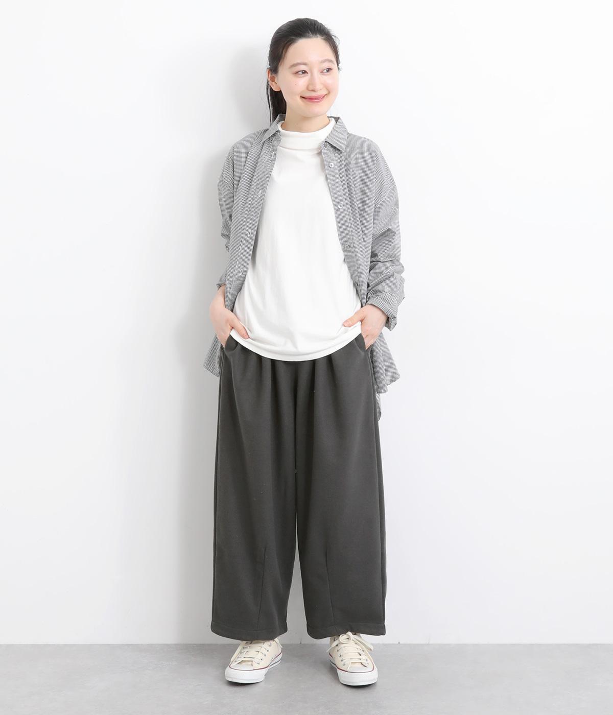 もっちりとやわらかく適度に肉感のあるダブルフェイスカットソーを使用。起毛による温かみやレーヨン混のなめらかな肌触りが心地よく、ポリエステルベースなので軽く速乾性も◎。