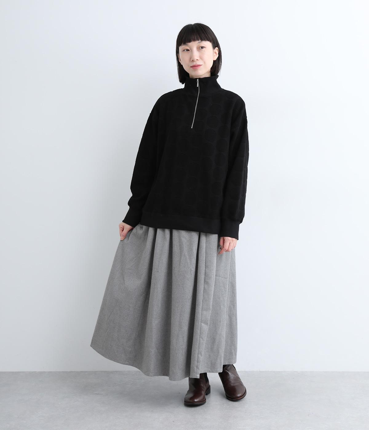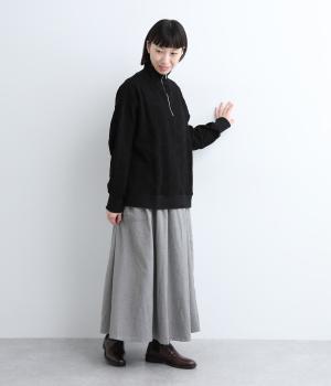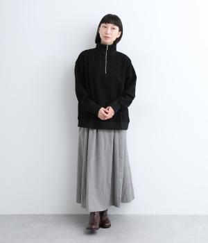 ふっくらとした起毛感とやわらかな質感が特徴のポリエステルレーヨン生地。裏はさらりとしており、肌にまとわりつきにくい快適な着用感です。