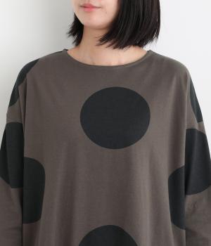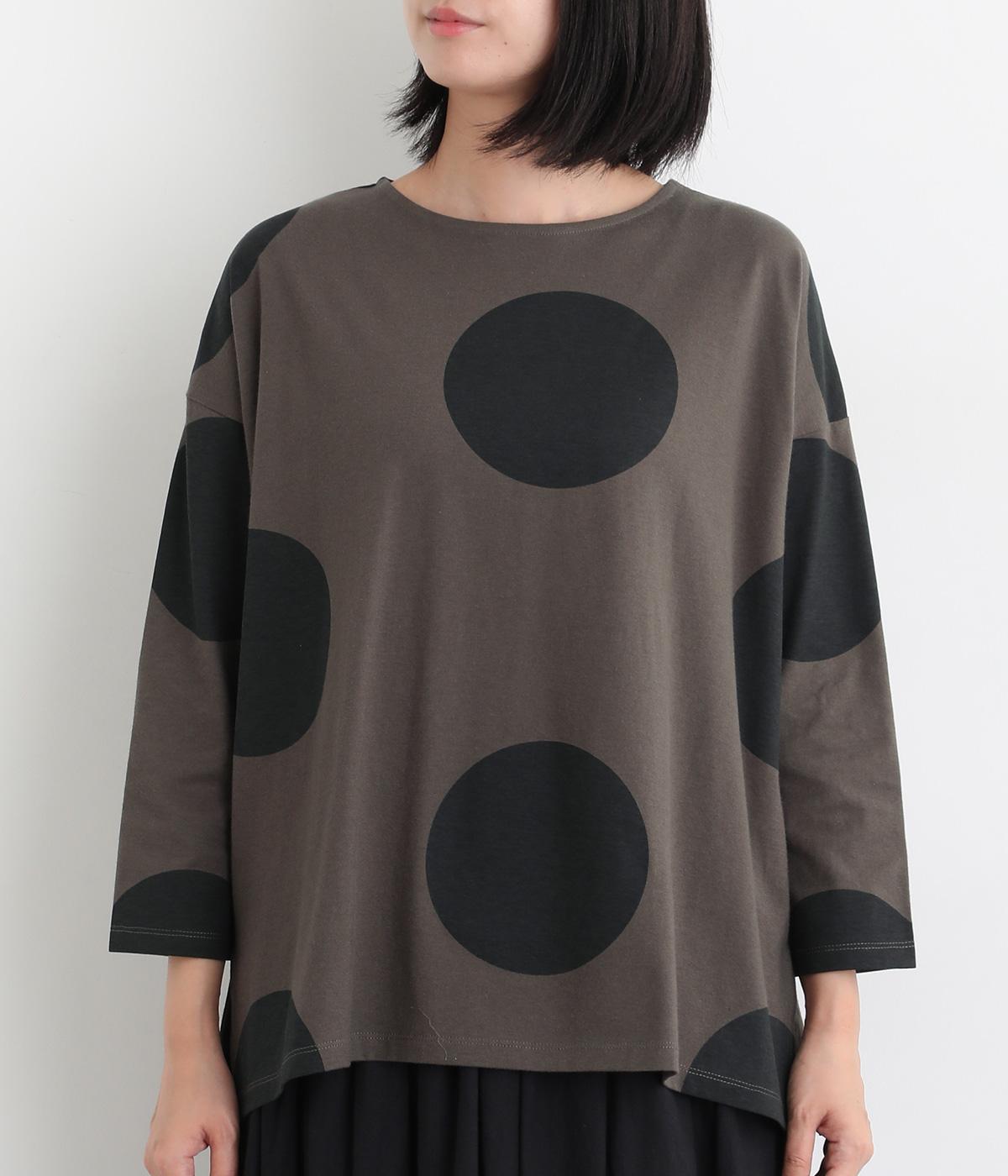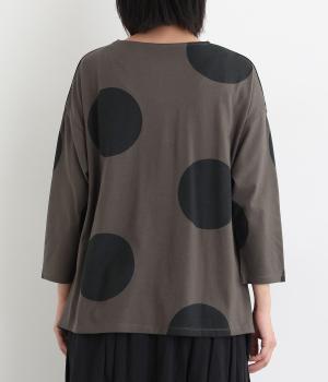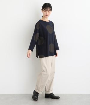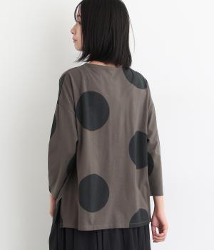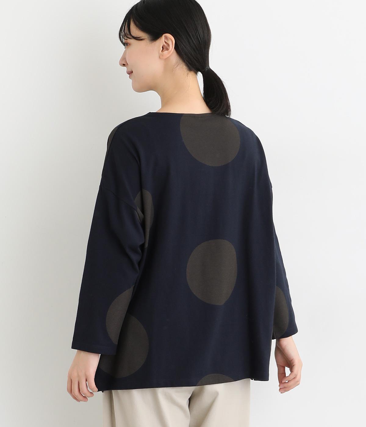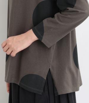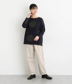 存在感のある大きめのドット柄がコーディネートのアクセントになるプルオーバーです。遊び心と大人の抜け感を両立したアイテムで、落ち着いた配色も好ポイント。7分袖なので手元に適度な抜け感があり、バランスよく着こなせます。