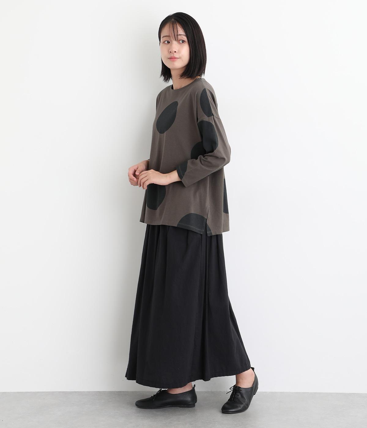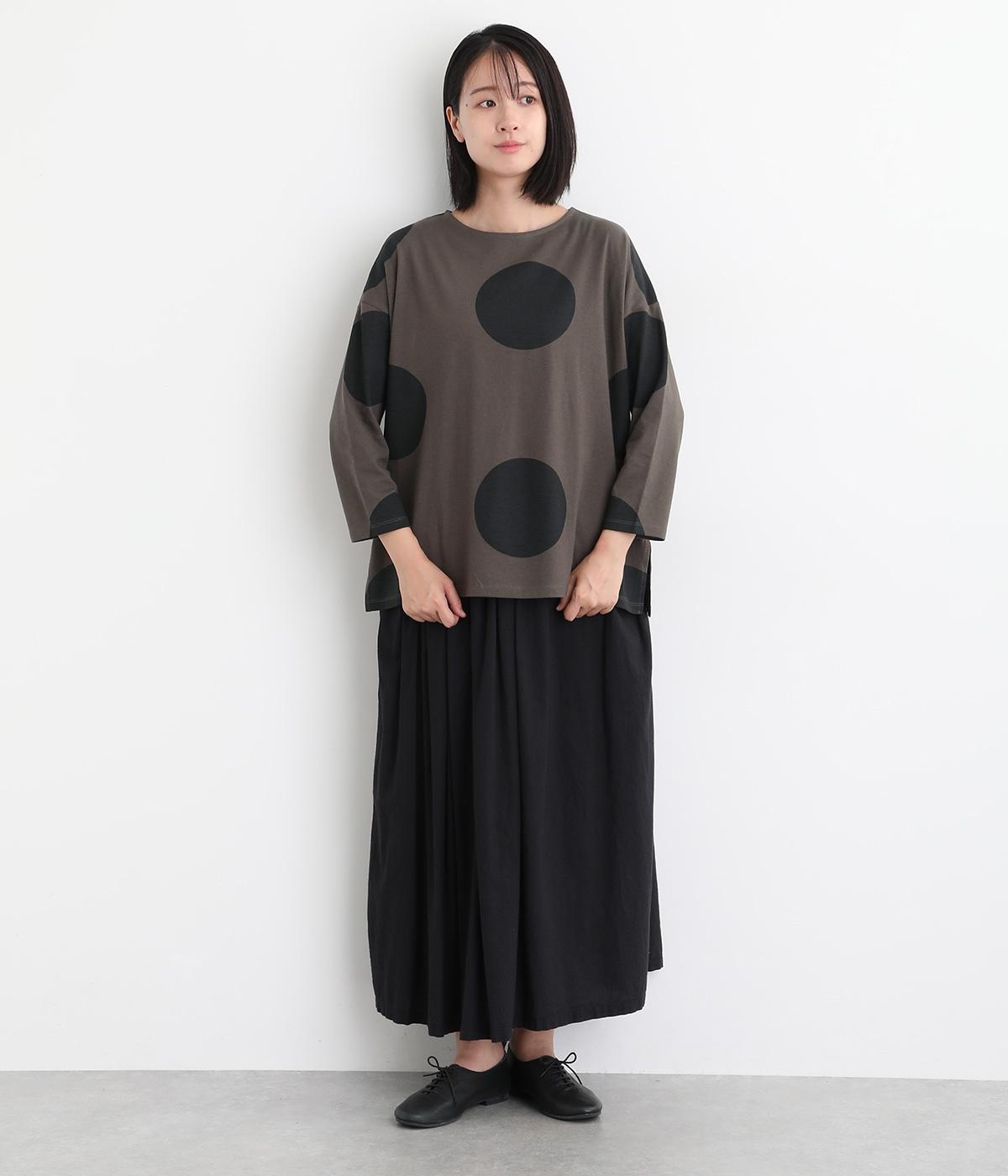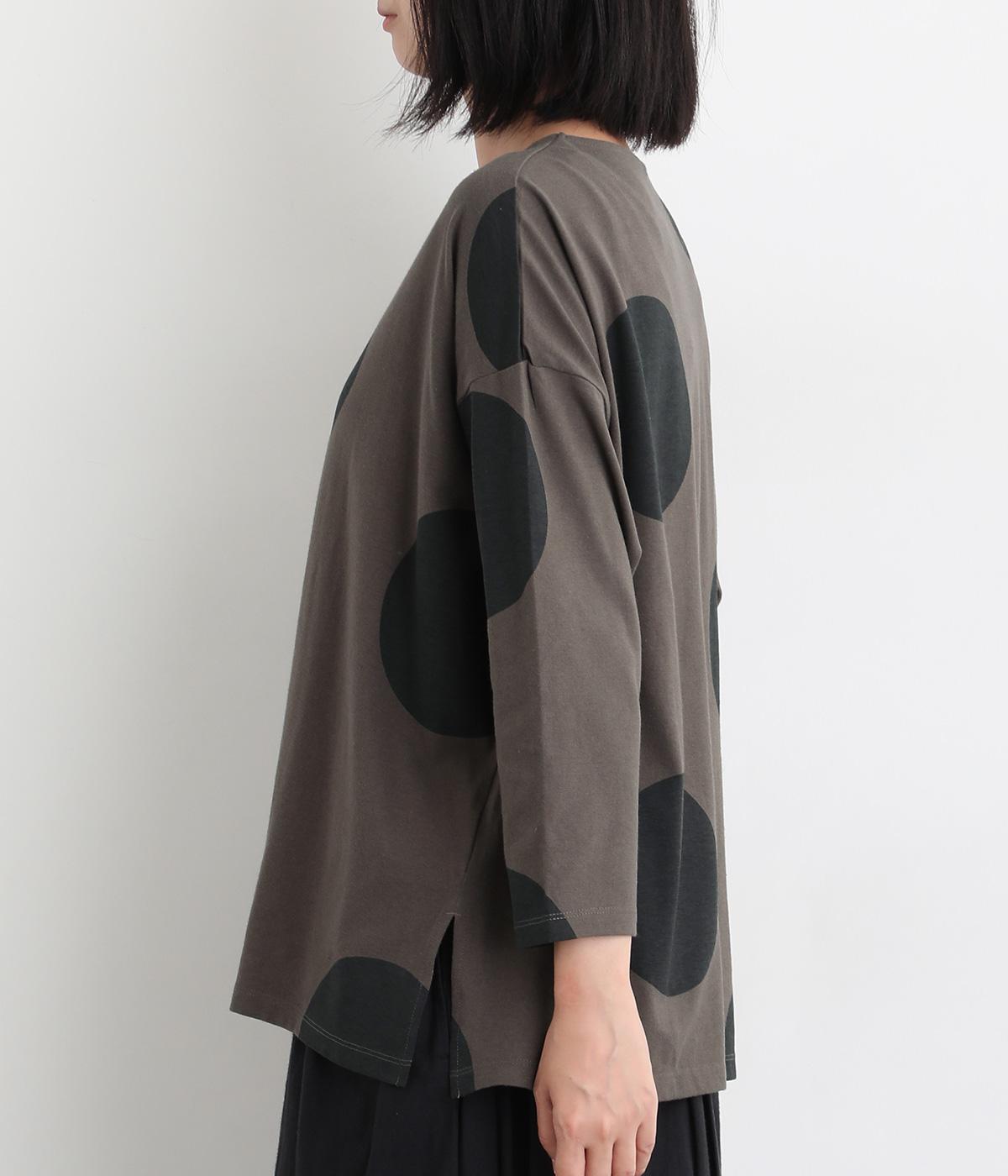 存在感のある大きめのドット柄がコーディネートのアクセントになるプルオーバーです。遊び心と大人の抜け感を両立したアイテムで、落ち着いた配色も好ポイント。7分袖なので手元に適度な抜け感があり、バランスよく着こなせます。