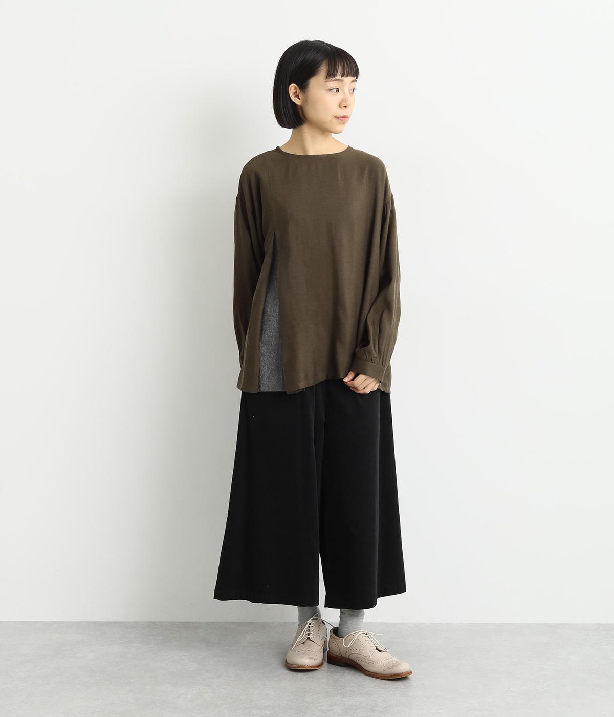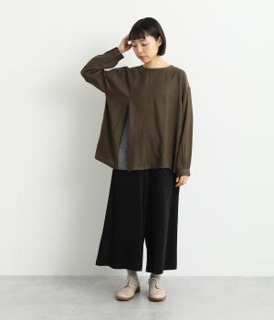 起毛感のある生地があたたかな印象を醸す、雰囲気のいい一枚。さらりとしたコットンの布帛を組み合わせた、異素材使いもポイントです。薄めの中厚手生地で全体的に軽やかで着用しやすい仕上がり。
